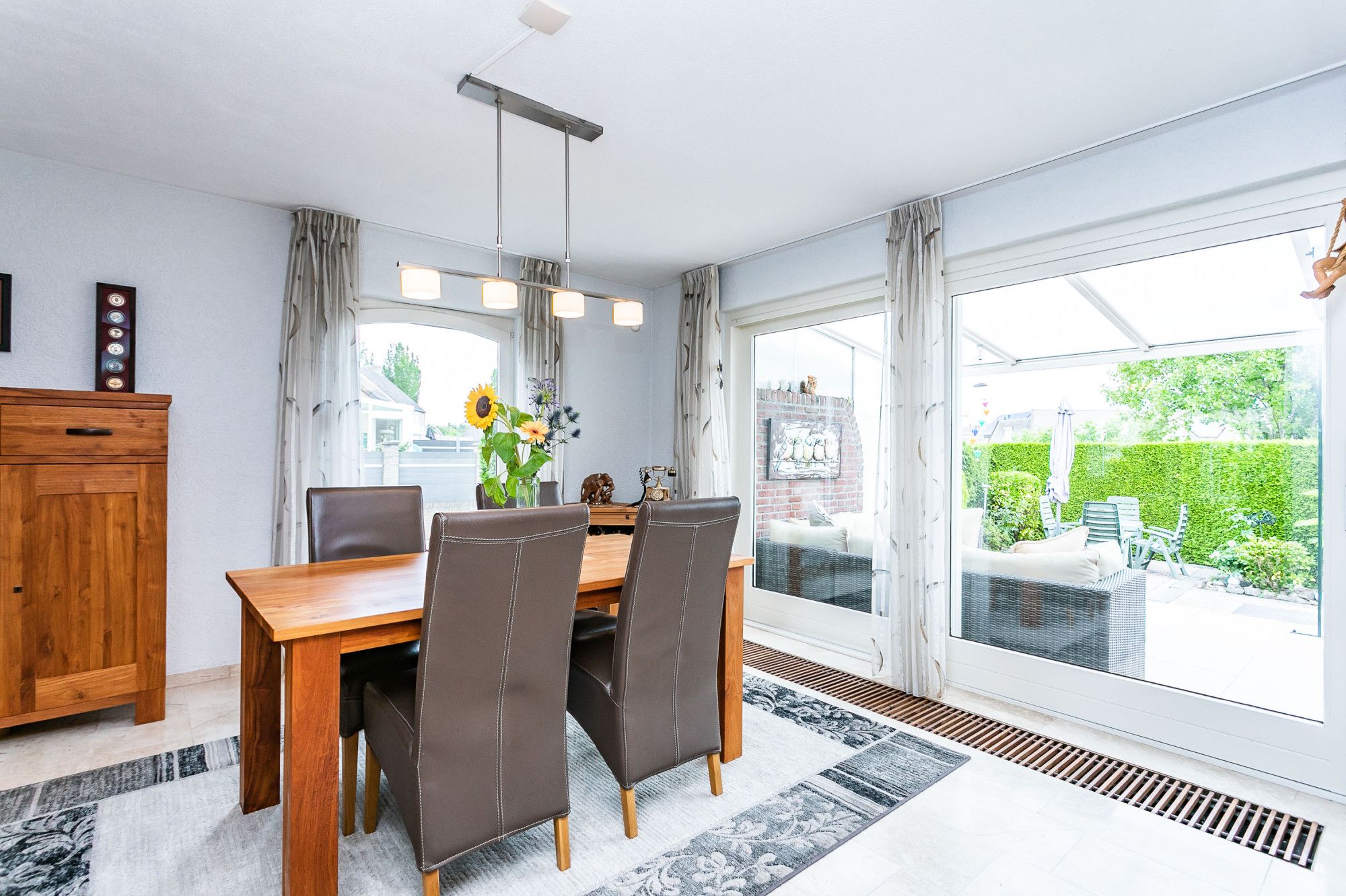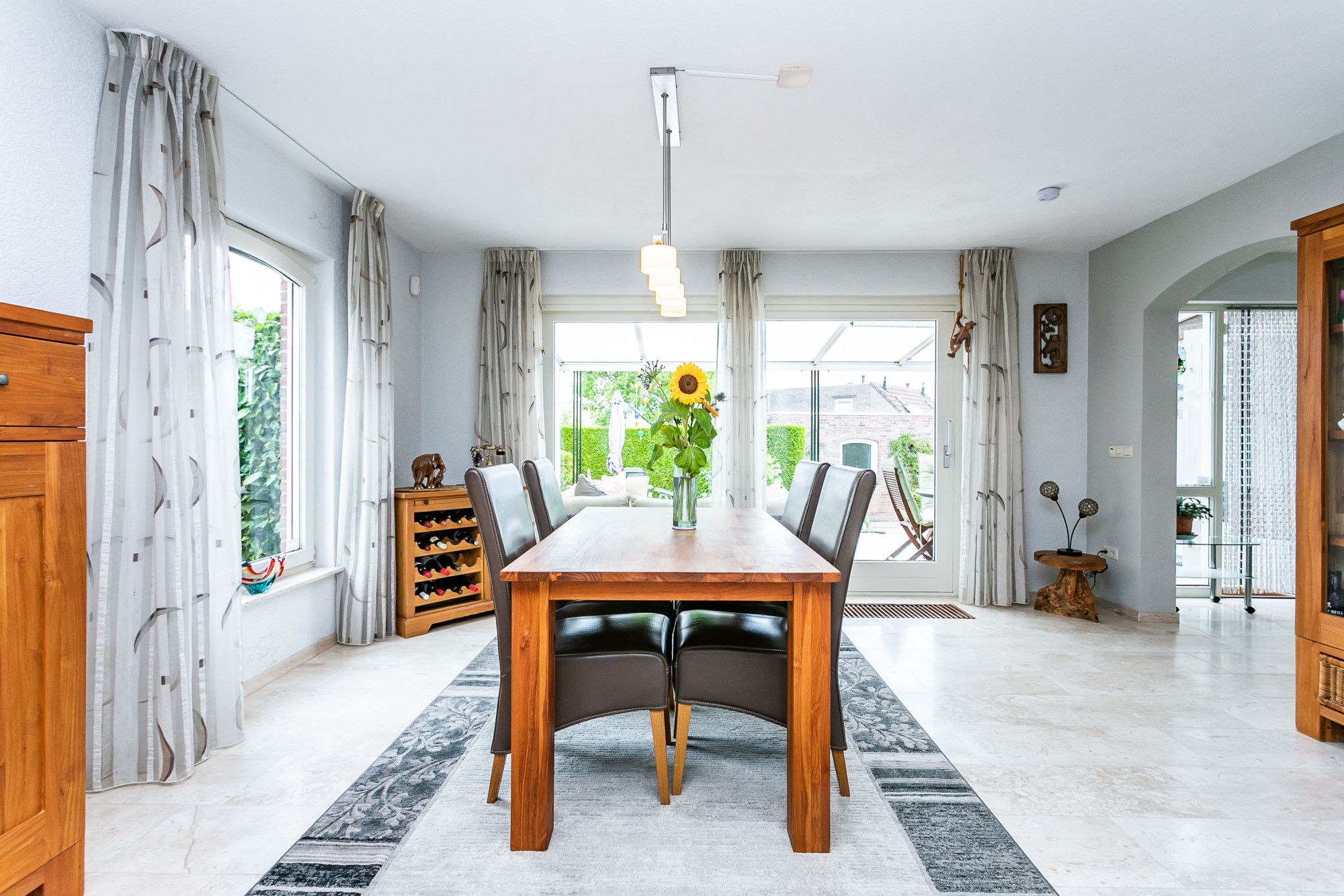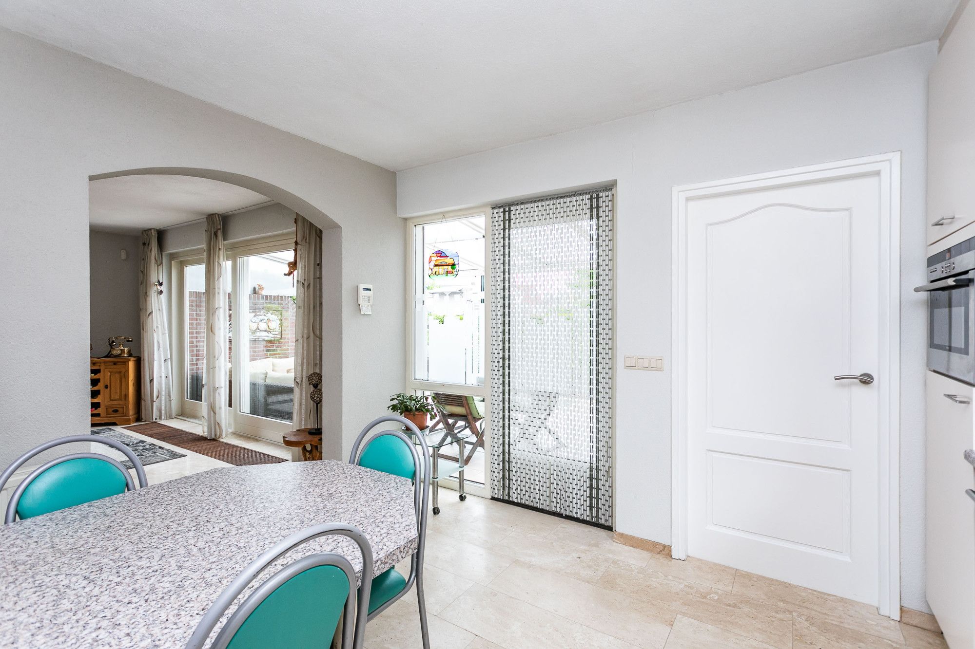 * EETKAMER AAN DE ACHTERZIJDE MET SCHUIFPUI NAAR HET OVERDEKTE TERRAS