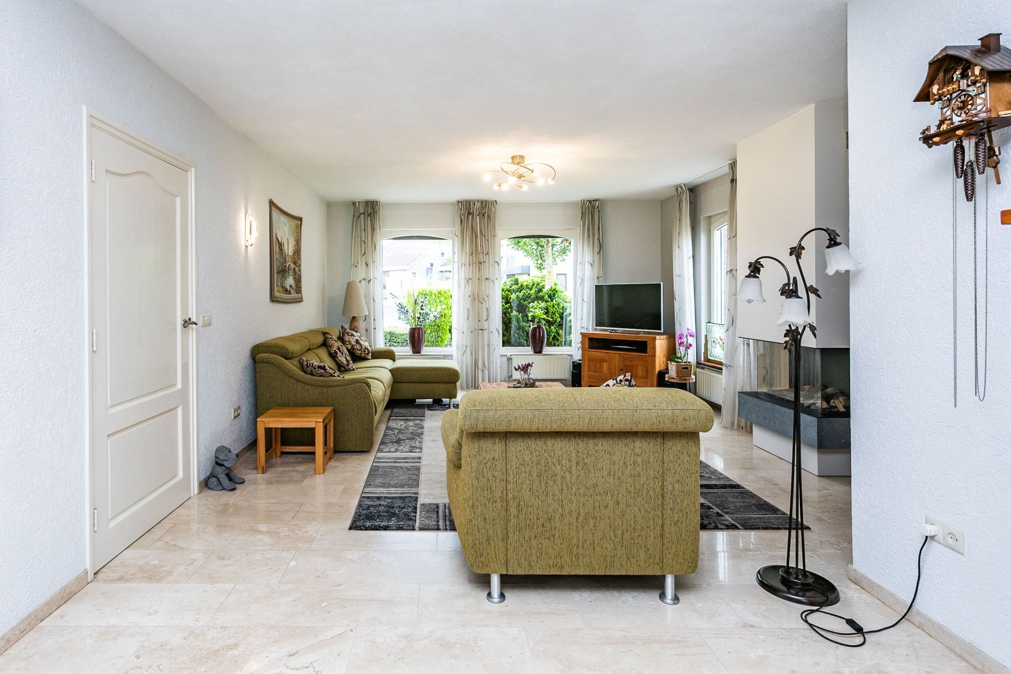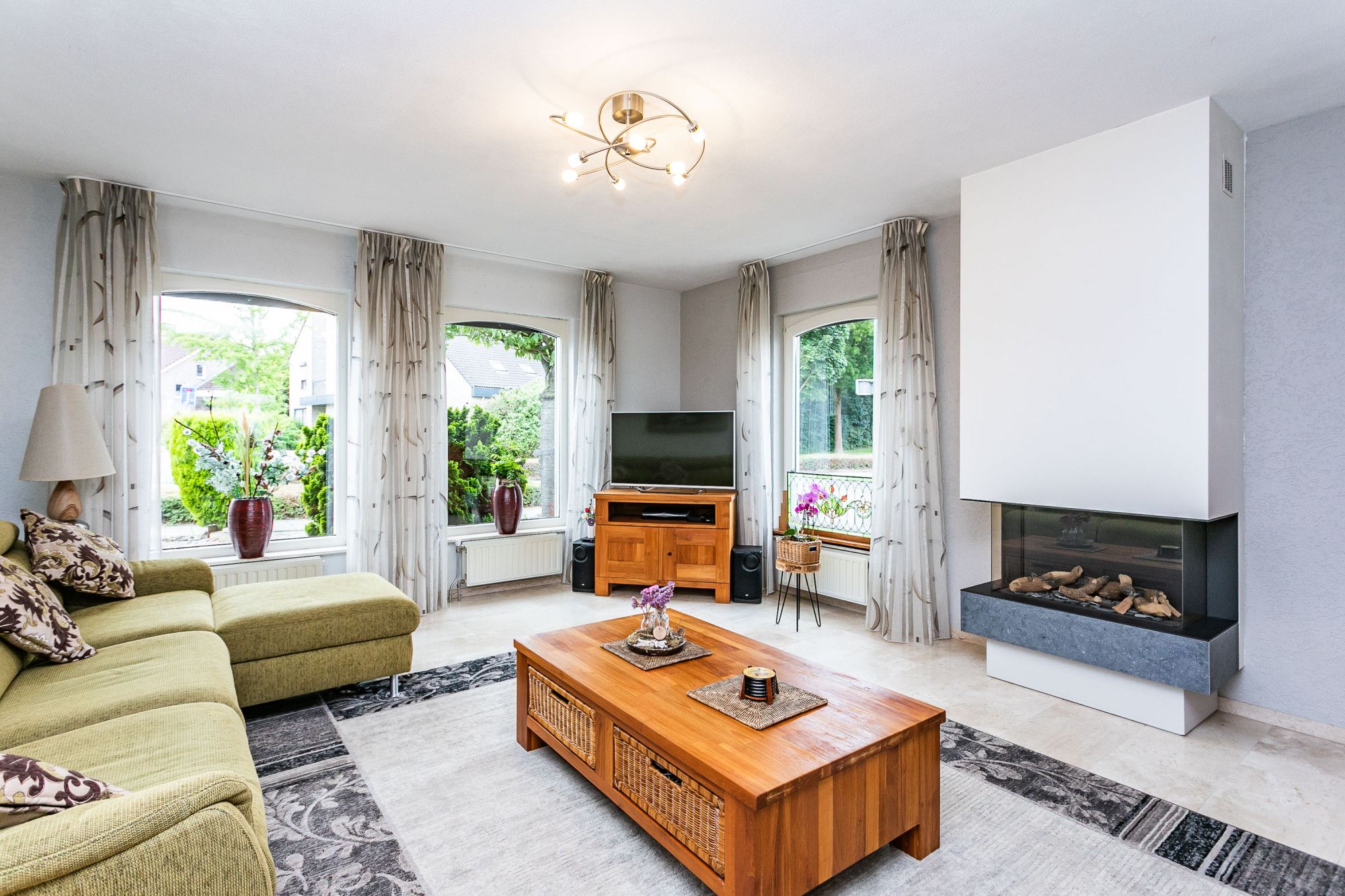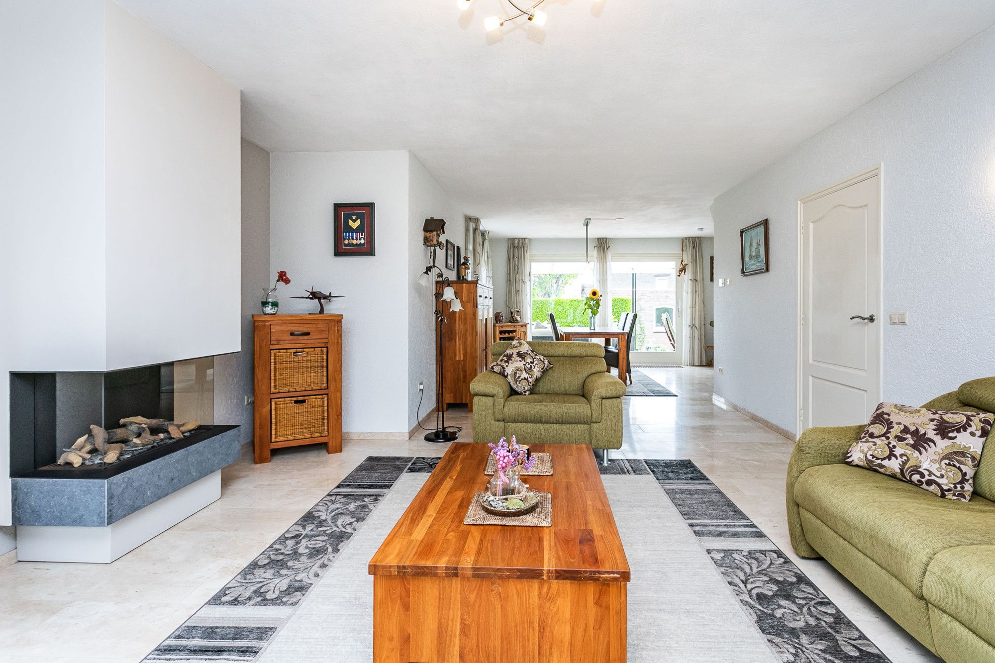 * WOONKAMER VOORZIEN VAN SCHOUWPARTIJ MET SFEERVOLLE GASHAARD