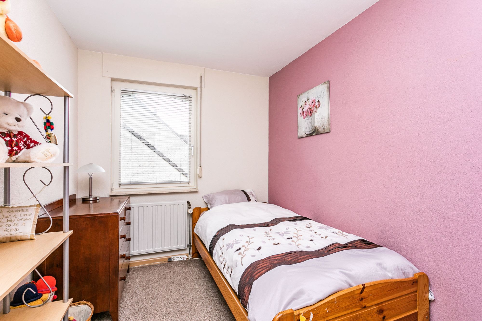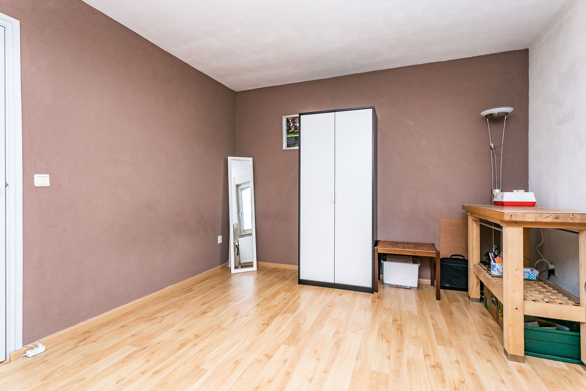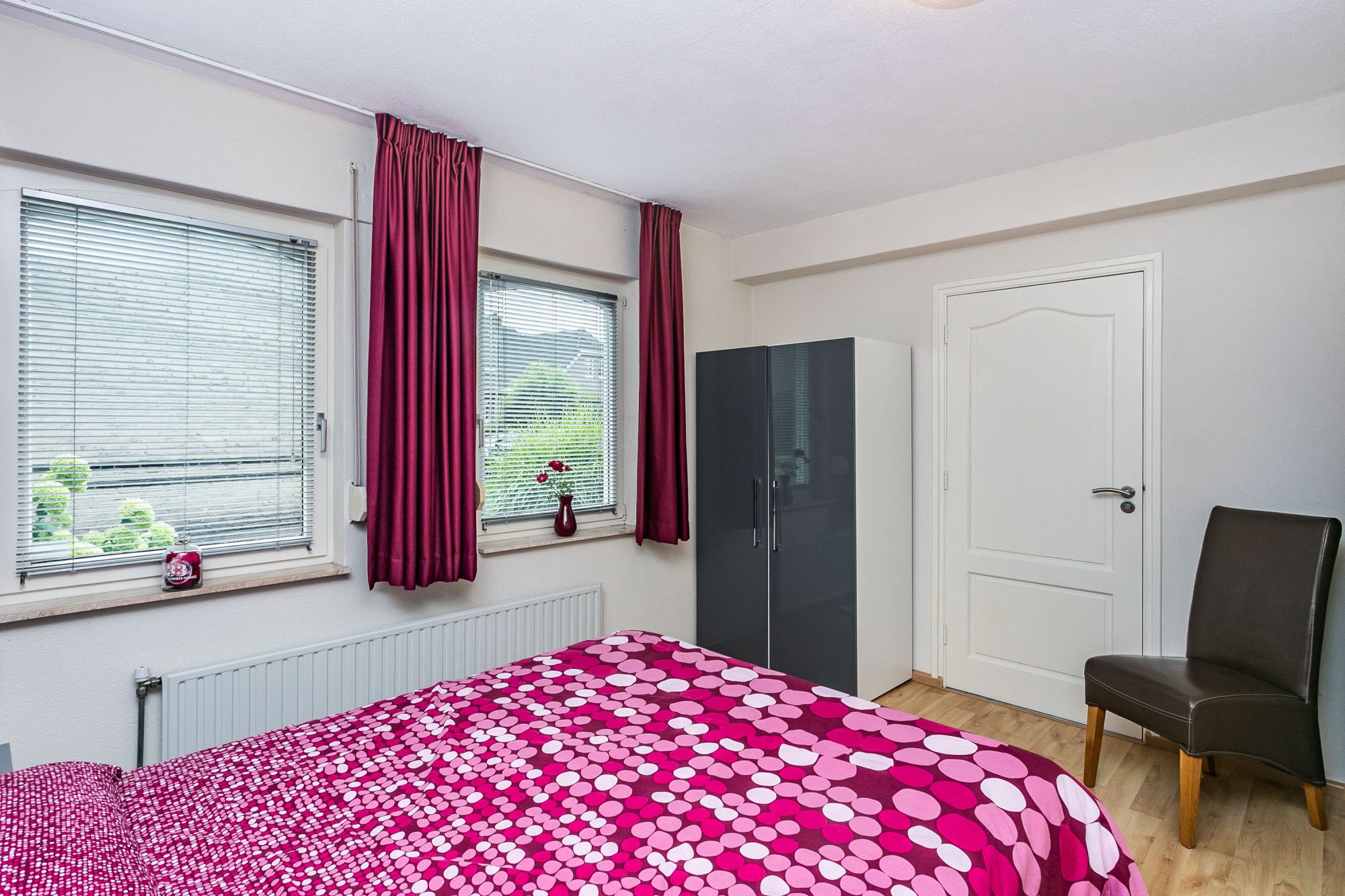 De vierde slaapkamer ligt aan de voorzijde doet dienst als kleedkamer.