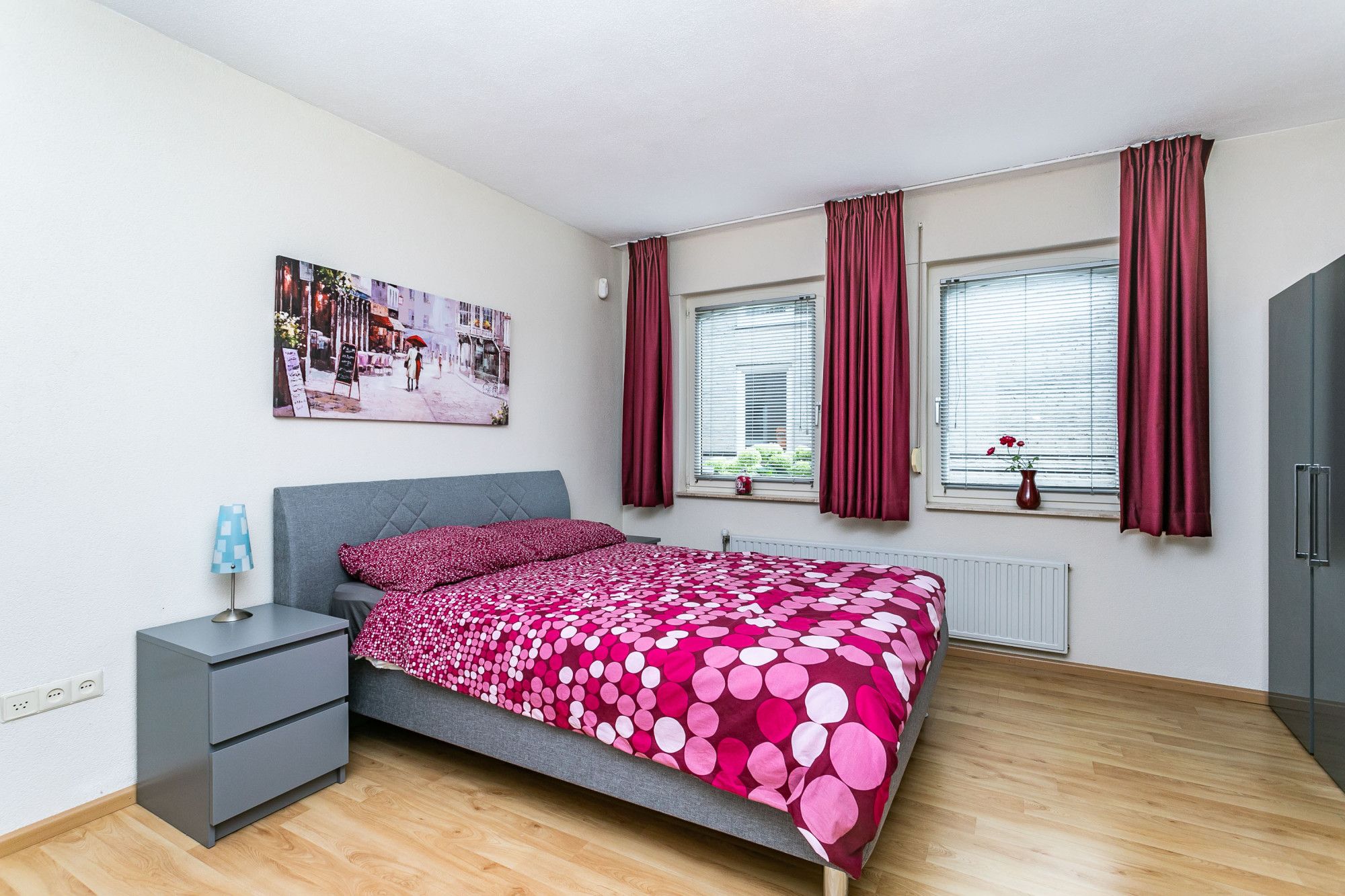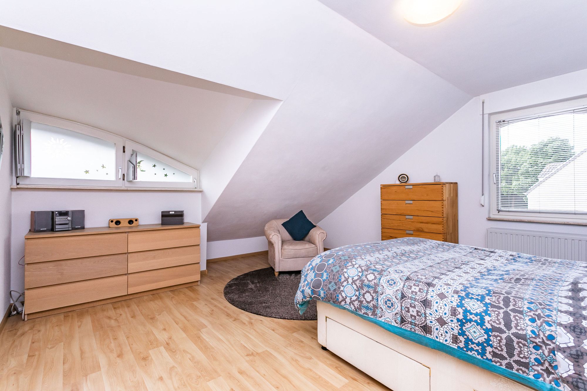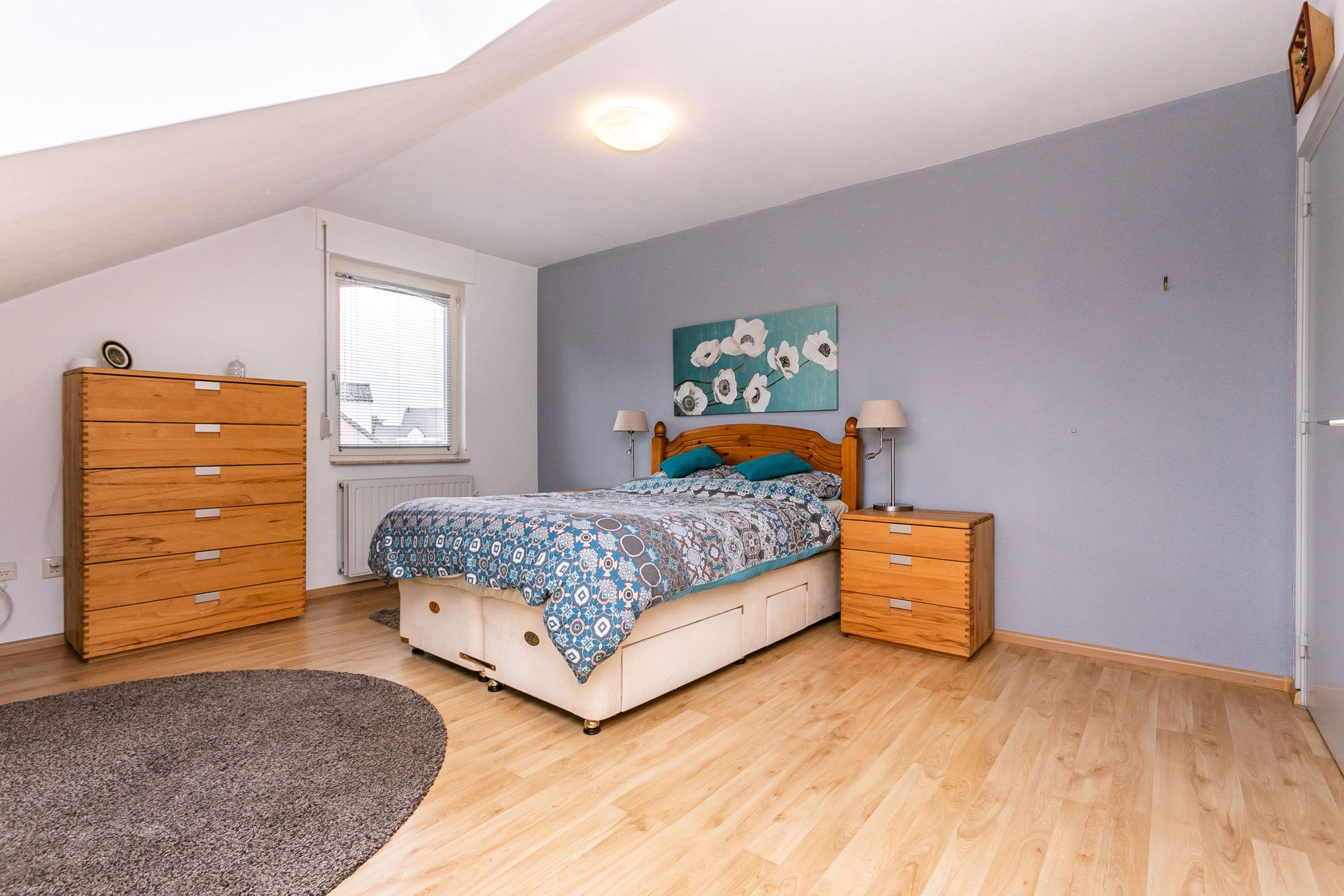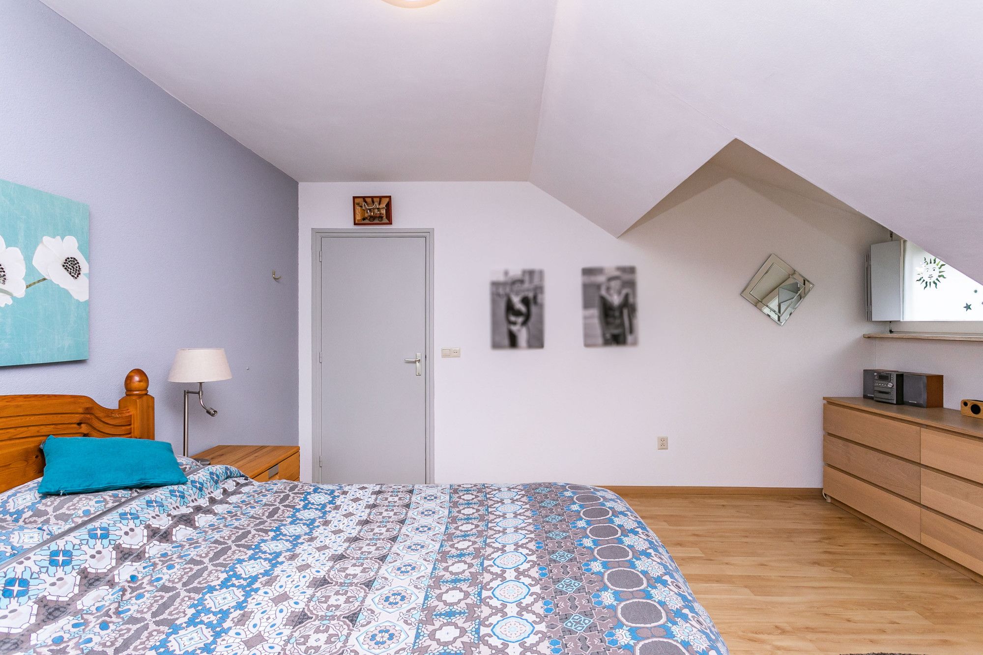De vierde slaapkamer ligt aan de voorzijde doet dienst als kleedkamer.