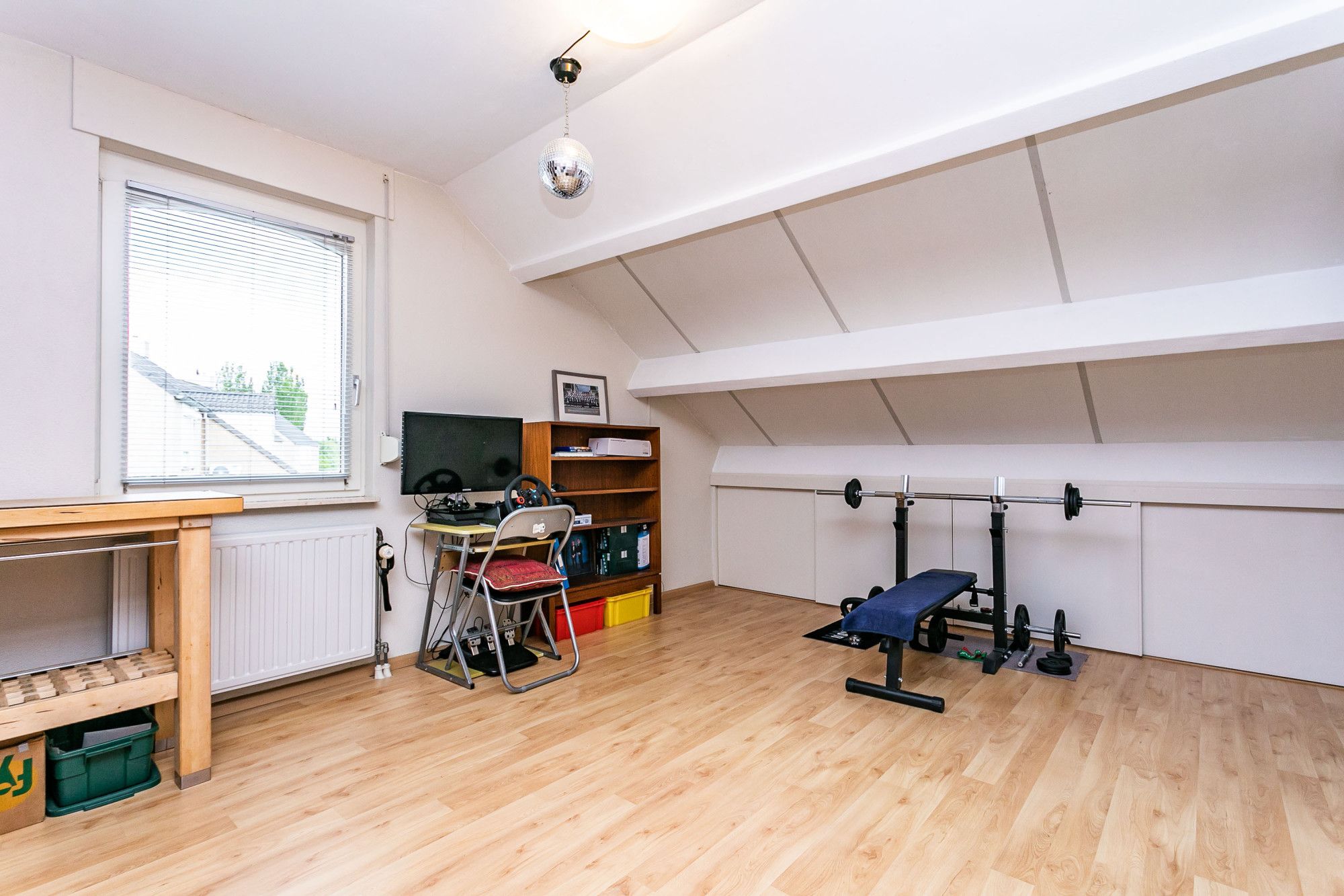 Linksachter gesitueerde slaapkamer welk in gebruik is als hobbyruimte met toegang berging in de schuinte van de dakconstructie. Voorgelegen zeer ruime tweede slaapkamer.