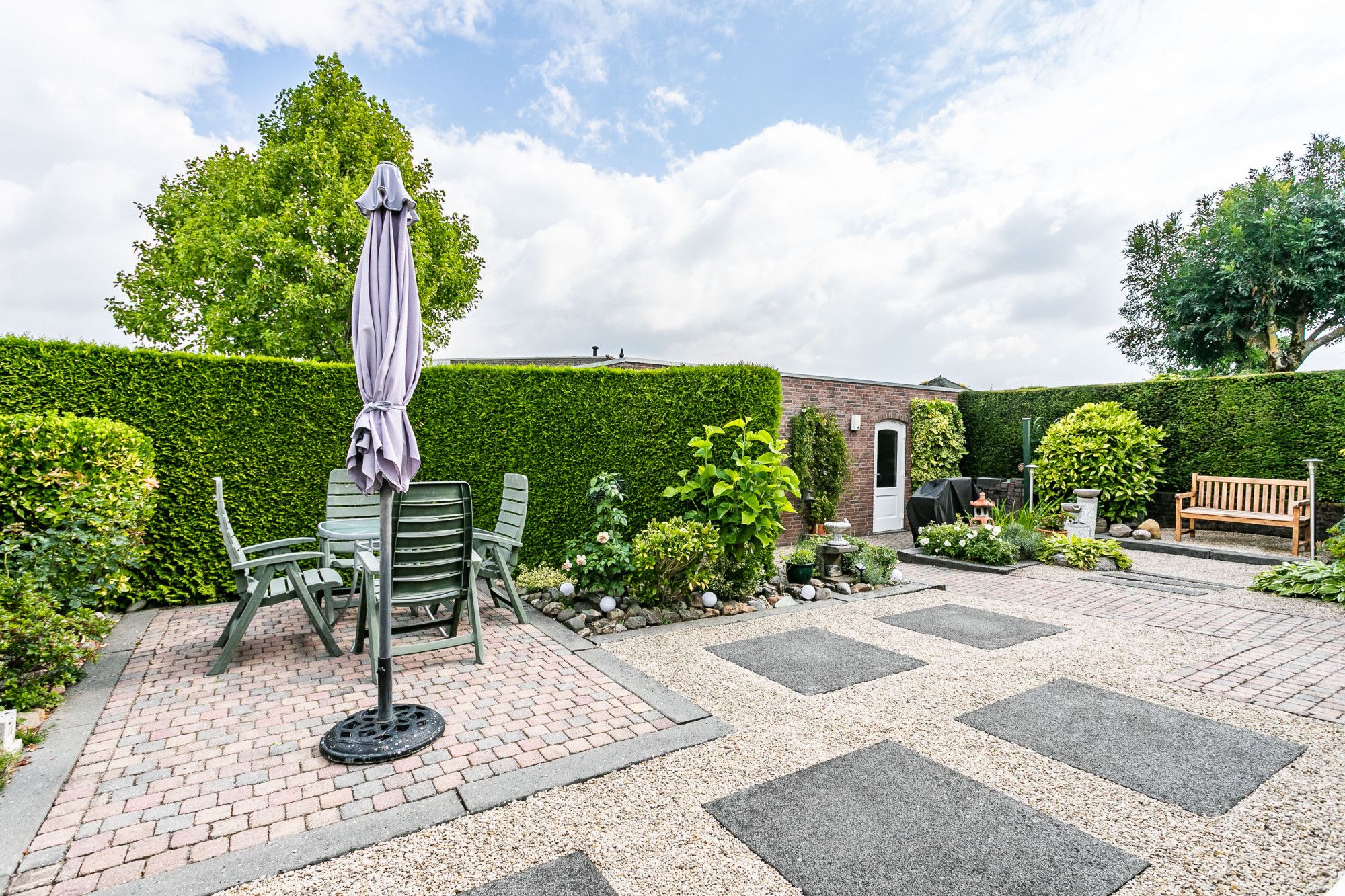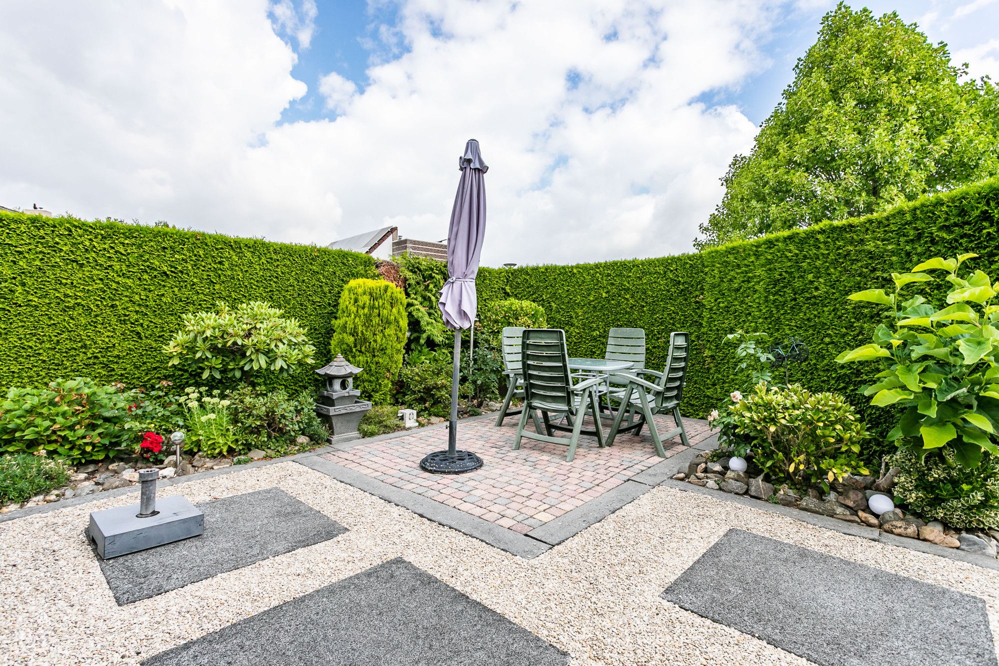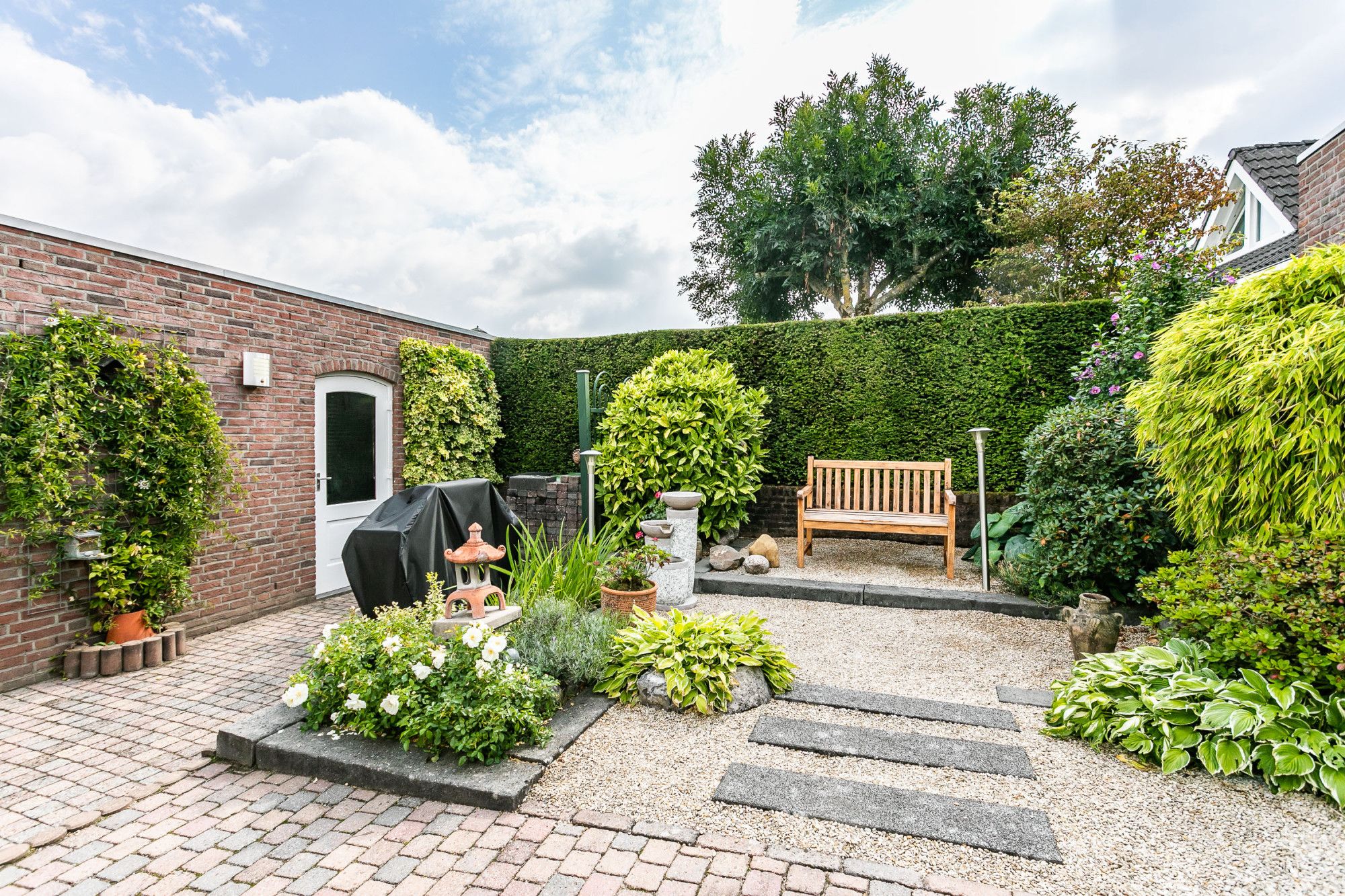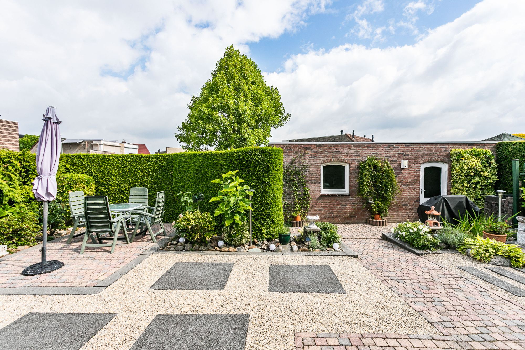 * VERZORGDE TUIN, BORDERS MET AANPLANTING EN ZITHOEKJES
