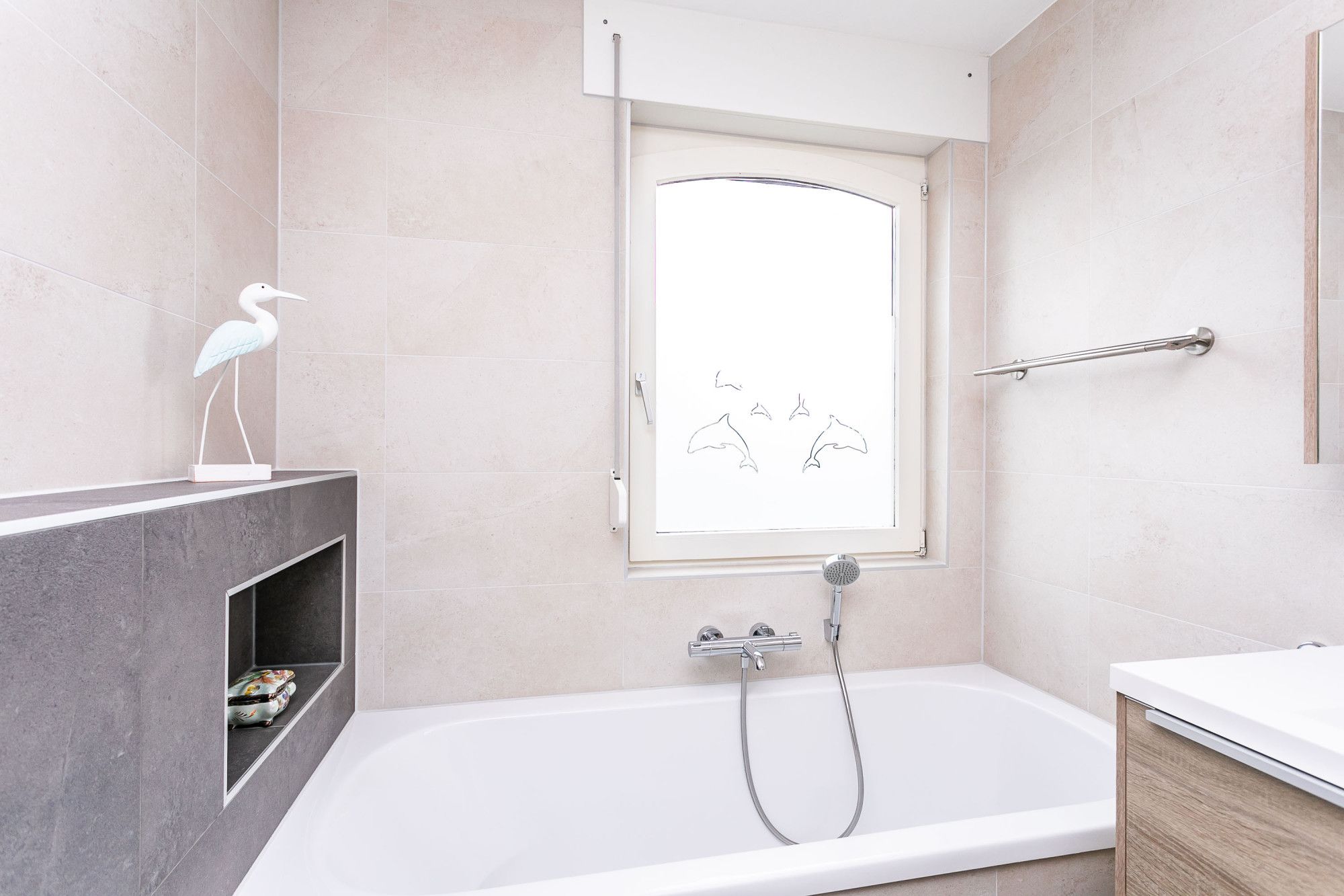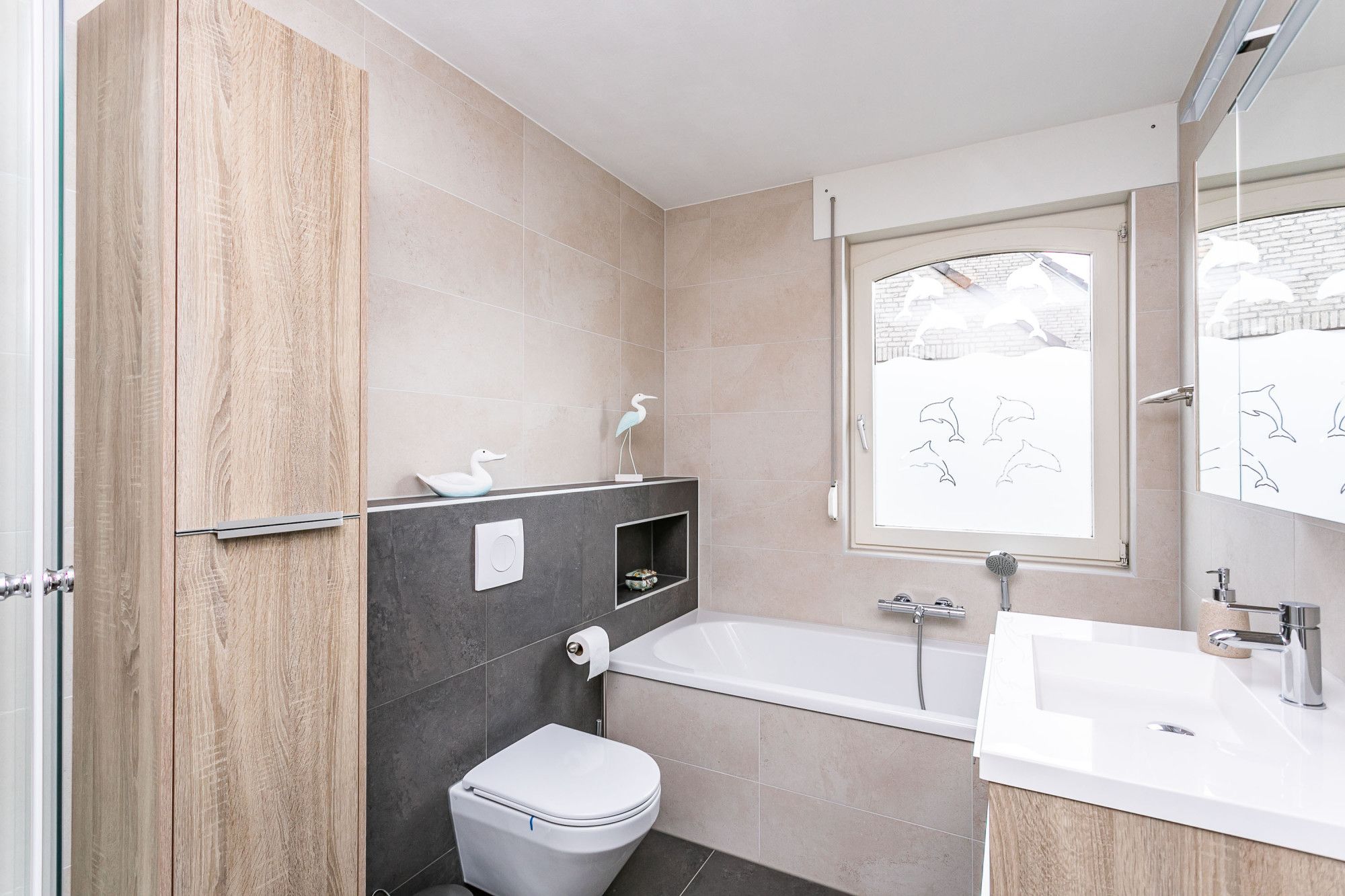* MODERNE BADKAMER MET LIGBAD, DOUCHE, WASTAFEL IN EEN MEUBEL EN TWEEDE TOILET