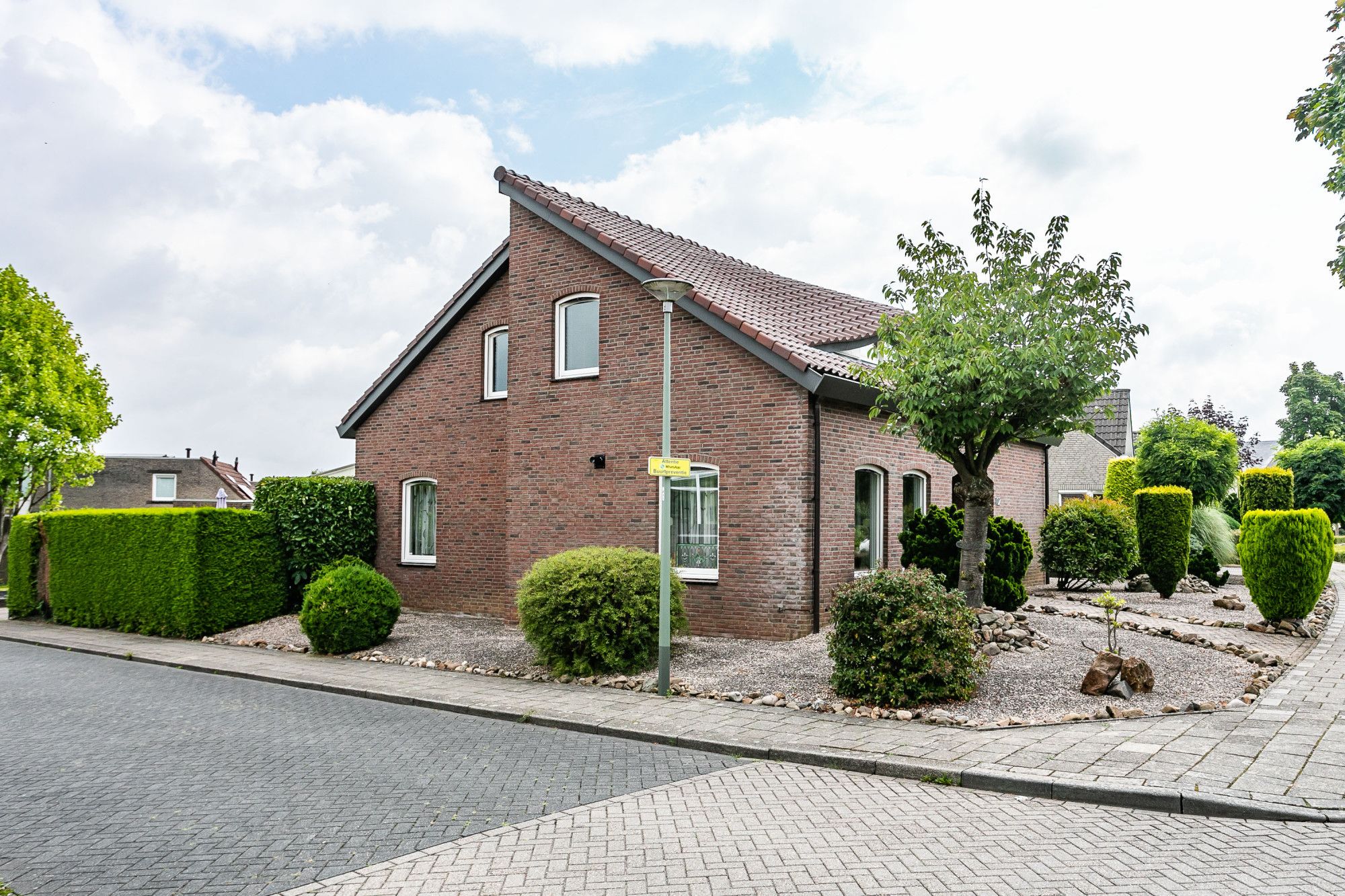 Fraai aangelegde en goed onderhouden tuin op het Nood-oosten met diverse terrassen, overkapping, zijingang en borders met aanplanting. Vrijstaande stenen garage met elektrisch bedienbare sectionaal poort en voorgelegen oprit met parkeergelegenheid op eigen terrein.