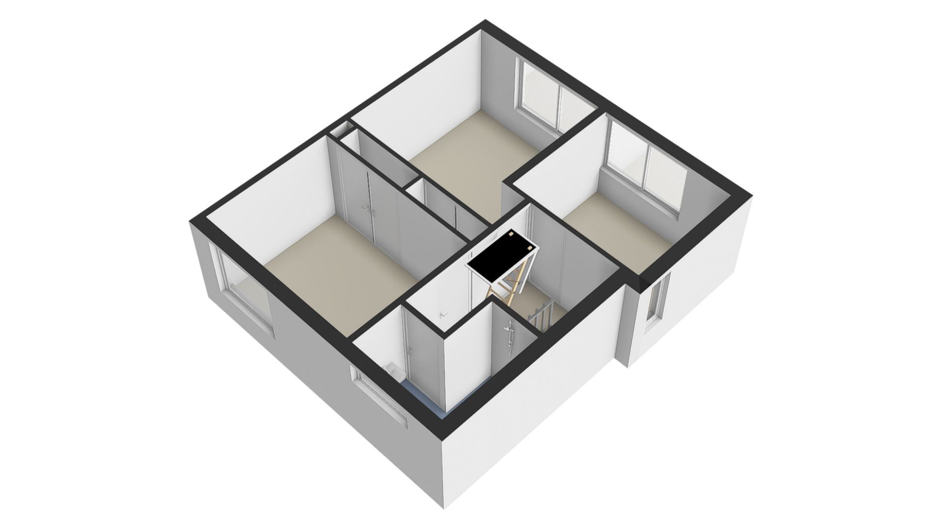 Overloop met toegang tot de slaapkamers, de badkamer en de zolder.