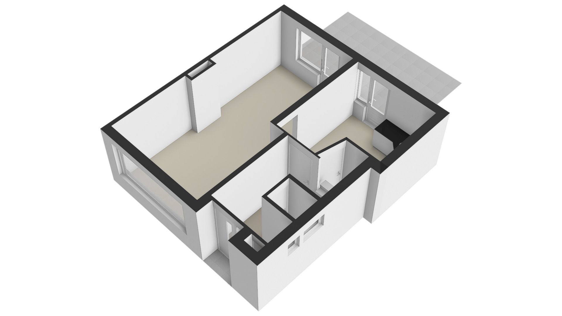 Er is een eenvoudig aanrechtblok met wasbak geplaatst en toegang tot de achtertuin.