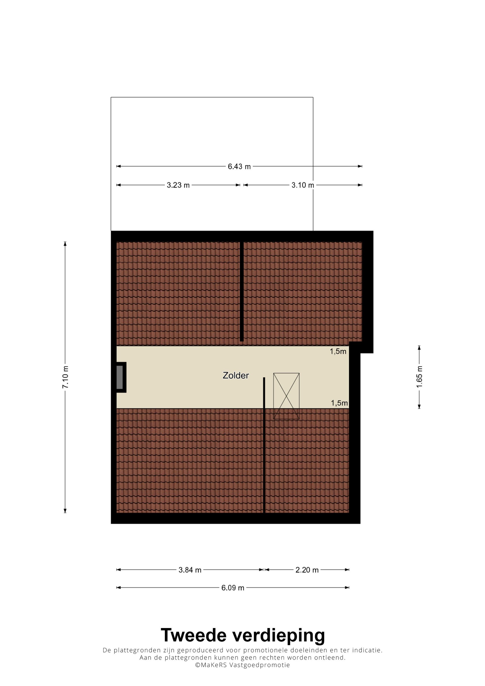 Een bergzolder, bereikbaar middels een vlizotrap, beslagen/beschoten en afgewerkt met een laminaatvloer. De verdiepingsvloer is geïsoleerd. Veel extra bergruimte en opslagmogelijkheden.