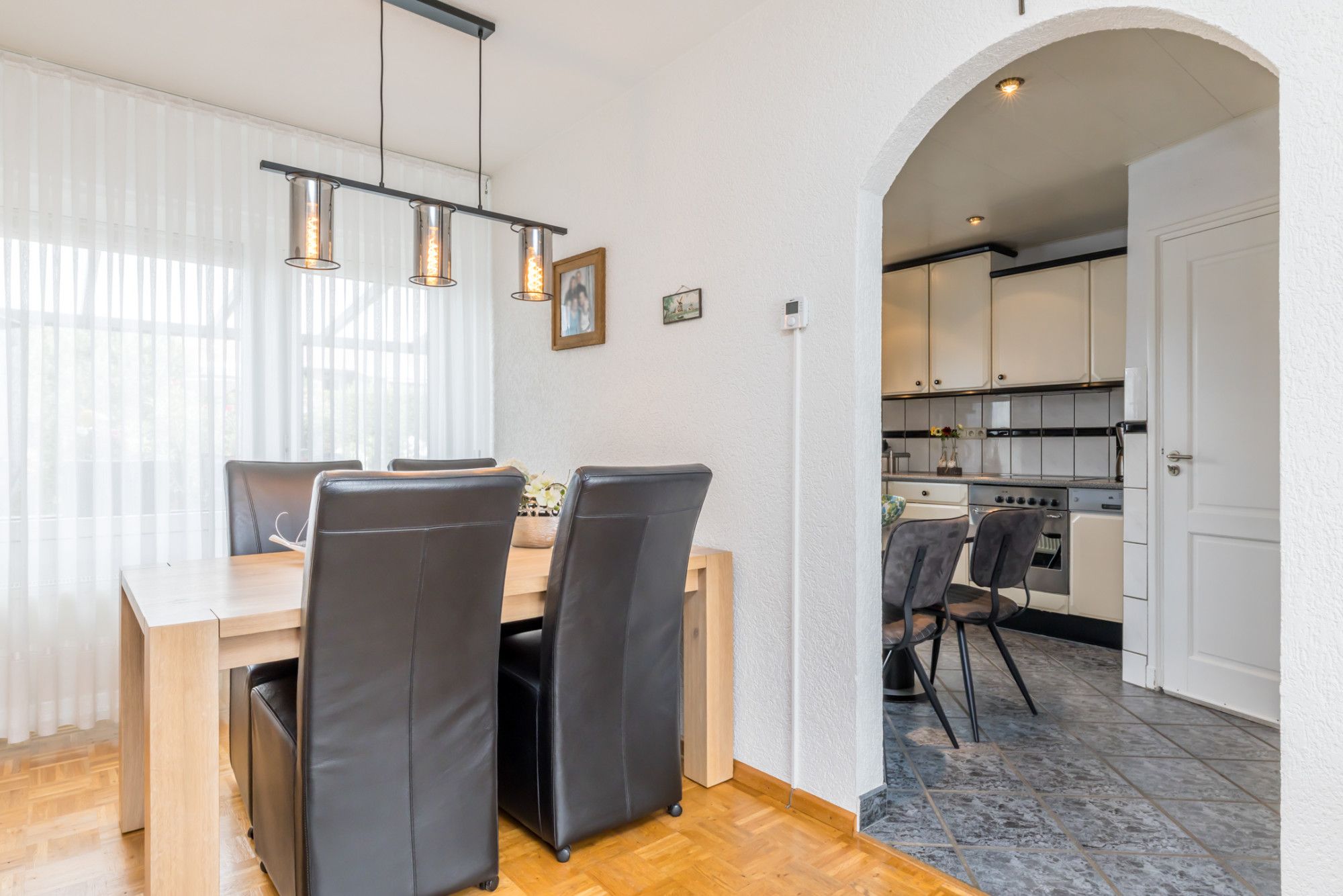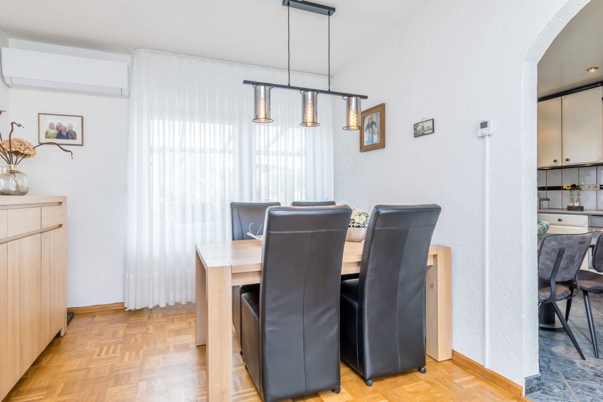 * ACHTERGELEGEN EETKAMER MET AIRCO, DOORGANG NAAR HET OVERDEKTE TERRAS EN DE KEUKEN