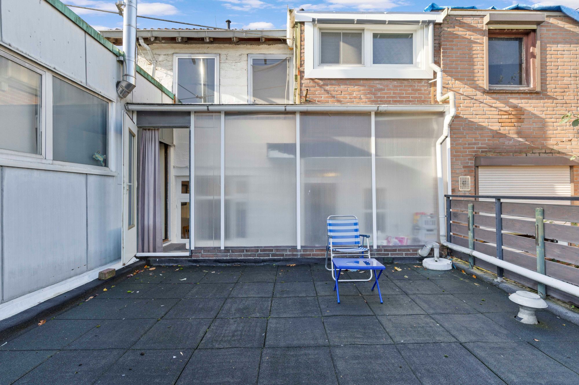 • Het huis heeft een dakterras. Er is geen tuin!. Het perceel is geheel bebouwd.