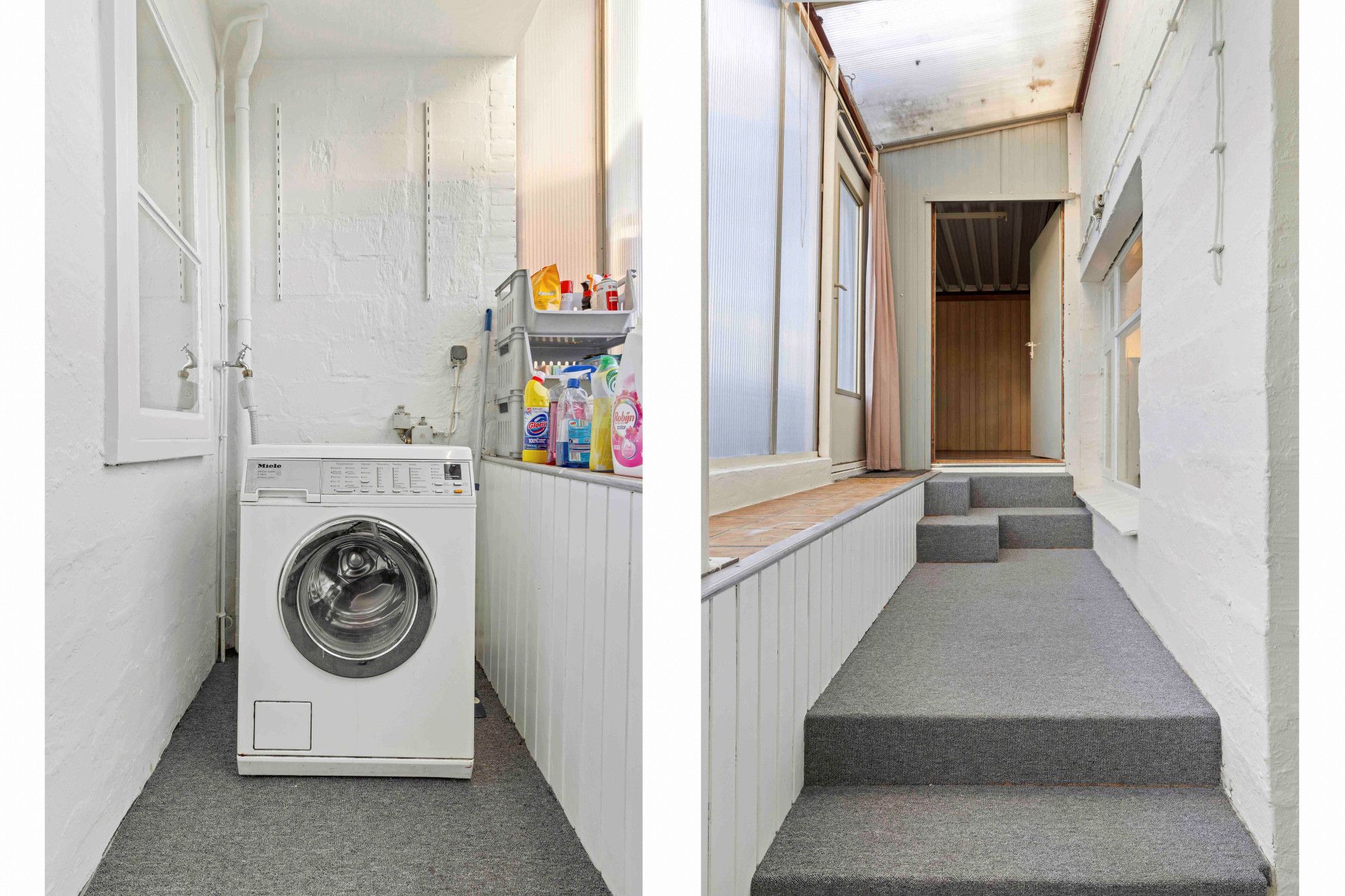 Het huis heeft 2 royale kelderruimtes met aansluiting voor de was-apparatuur en cv-installatie (huur).