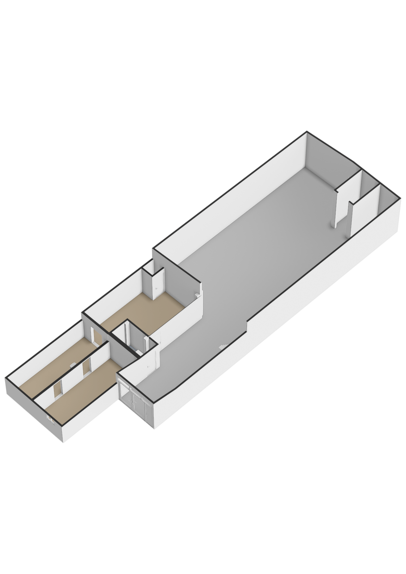 Entree. Hal met meterkast. Toiletruimte. Keuken met functionele keukeninstallatie met apparatuur. Woonkamer met open keuken met lichte plavuizenvloer en witte keukeninstallatie. Toegang tot een serre. Aansluitend een grote kantoorruimte/ werkkamer met toegang naar loods. Eventueel mogelijkheid tot verdere uitbreiding van de woonoppervlakte door verdere afwerking van de kantoorruimte. Dakterras met goede privacy.