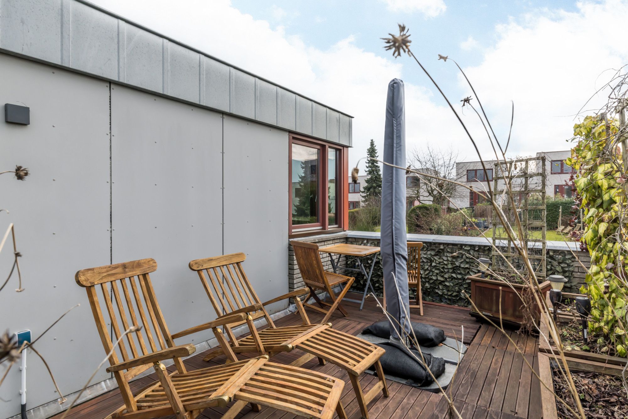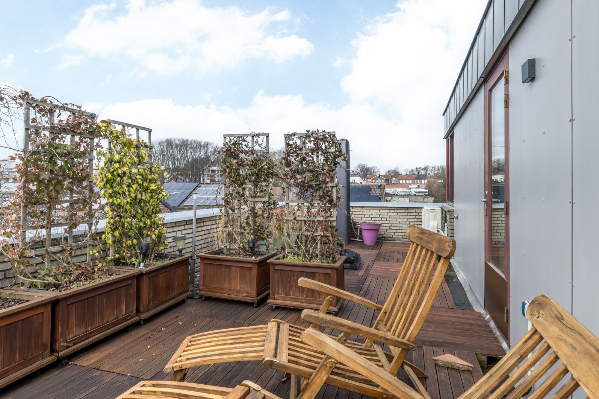 Royaal dakterras met sfeervolle zithoek en prachtig zicht op de achtertuin.