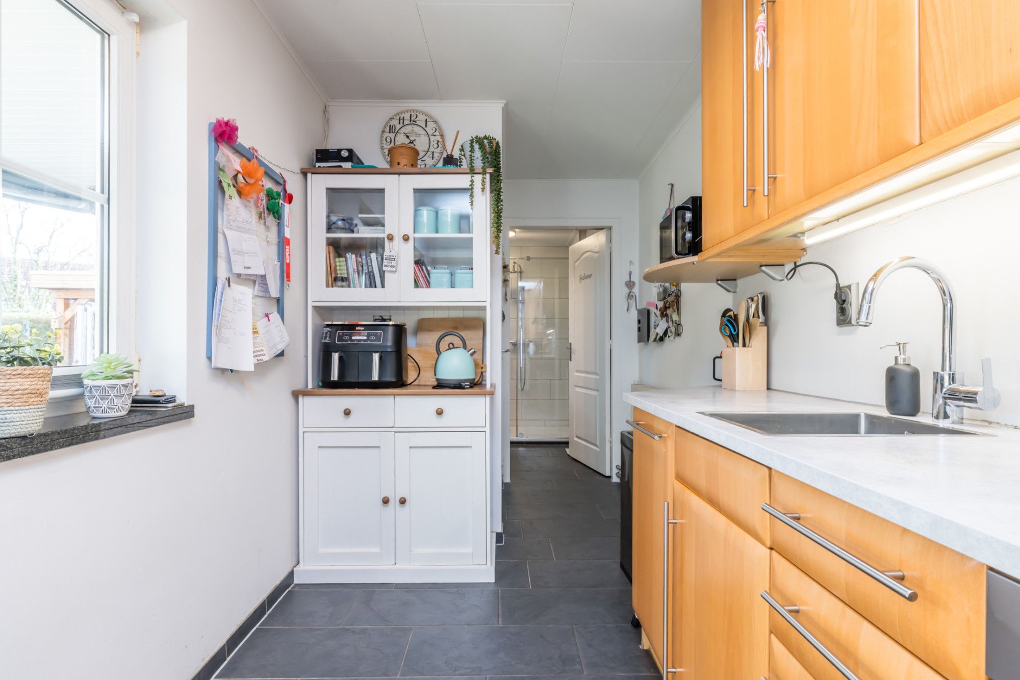 * KEUKENRUIMTE VOORZIEN VAN EEN EIGENTIJDSE INBOUWKEUKEN MET APARATUUR
