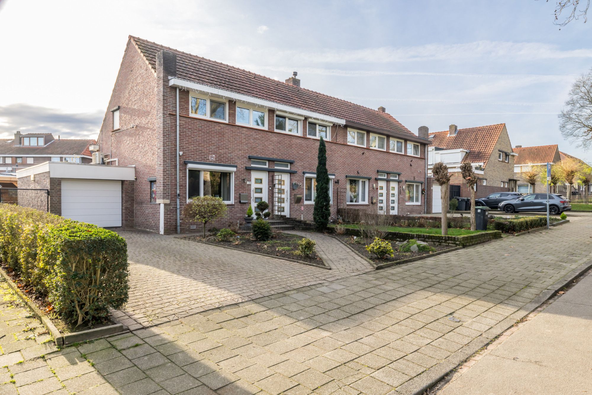 Op de oprit is parkeergelegenheid voor meerdere voertuigen op eigen terrein. De achtertuin is bovendien bereikbaar via een gemeenschappelijk zijpad.