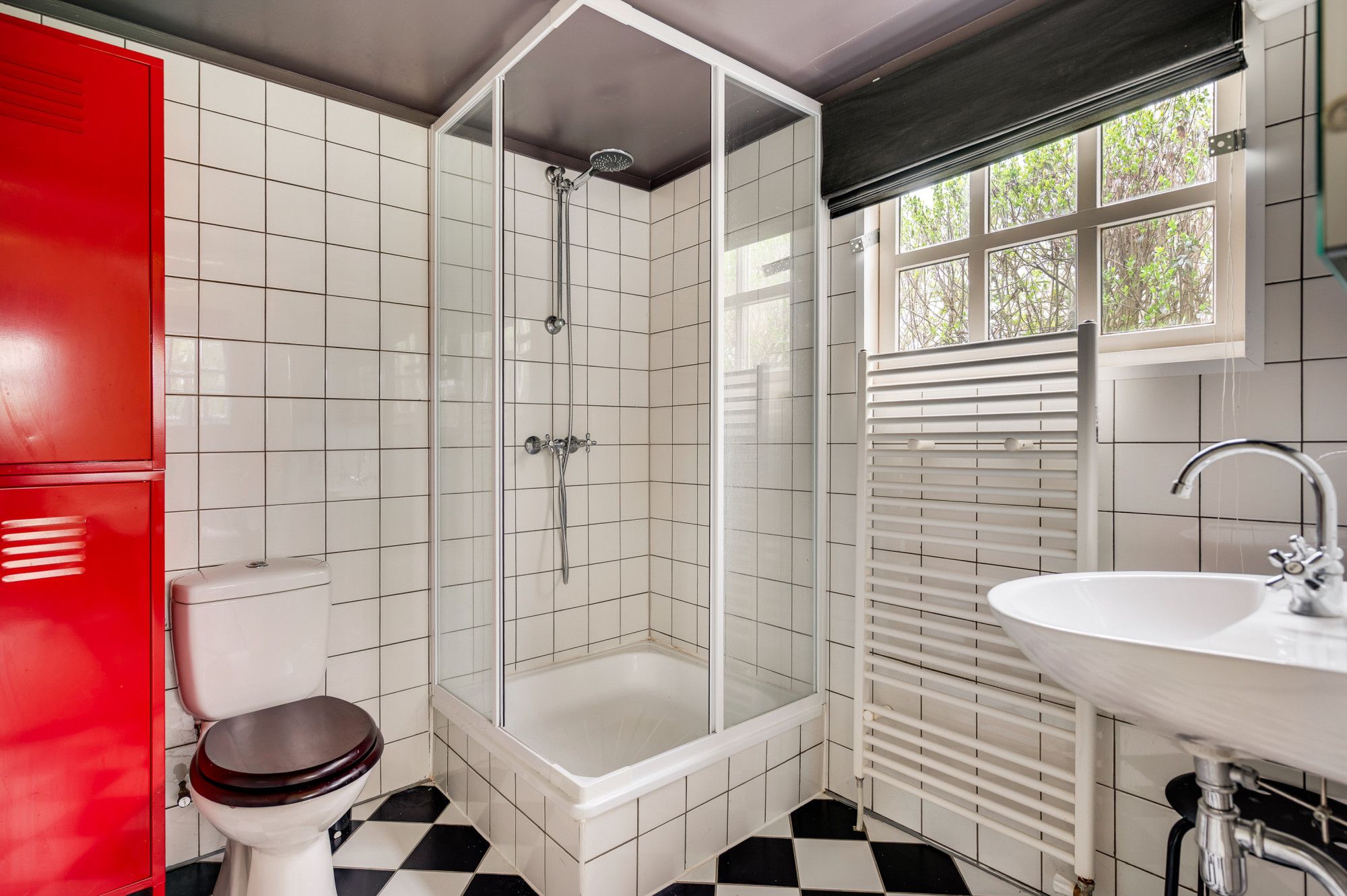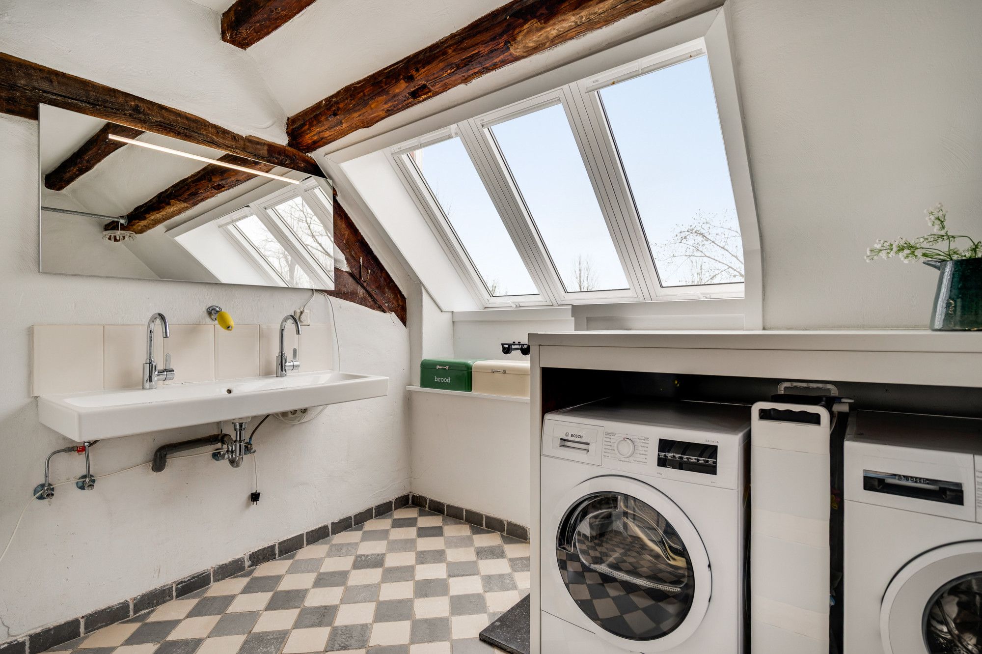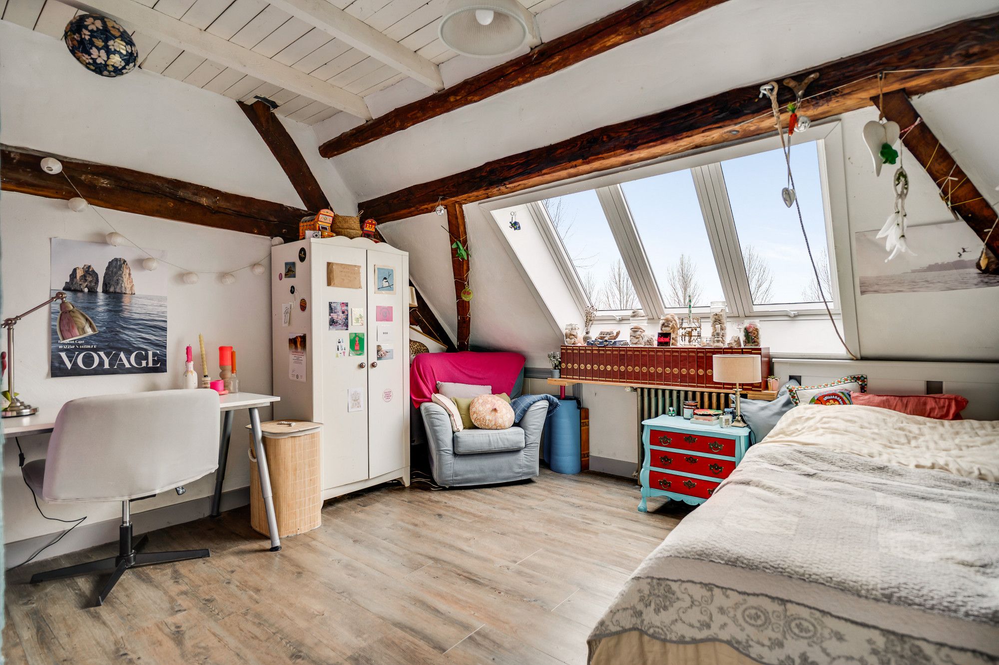 De overloop, met veel lichtinval vanwege extra dakraam, biedt toegang tot nog vier ruime slaapkamers en twee badkamers. De eerste badkamer, uitstekend geschikt als kinder-of gastbadkamer, is voorzien van een douche en een wastafel. De tweede, ruim bemeten, badkamer is voorzien van een inloopdouche, dubbele wastafel en de aansluitingen voor het witgoed (wasmachine en droger). Op deze verdieping bevindt zich ook een tweede aparte toiletruimte met fontein en bidetdouche. De twee slaapkamers aan de voorzijde, alsmede de badkamer aan de voorzijde, zijn voorzien van grote driedelige Velux dakramen met ## sluiting. Aan de achterzijde bevindt zich over de gehele breedte van het huis een dakkapel, die de twee slaapkamers en de badkamer aan de achterzijde voorzien van veel licht