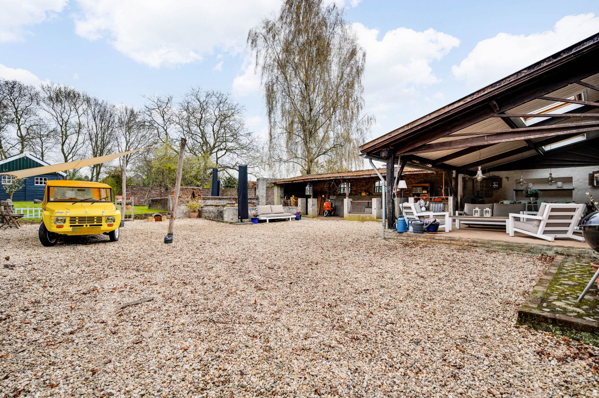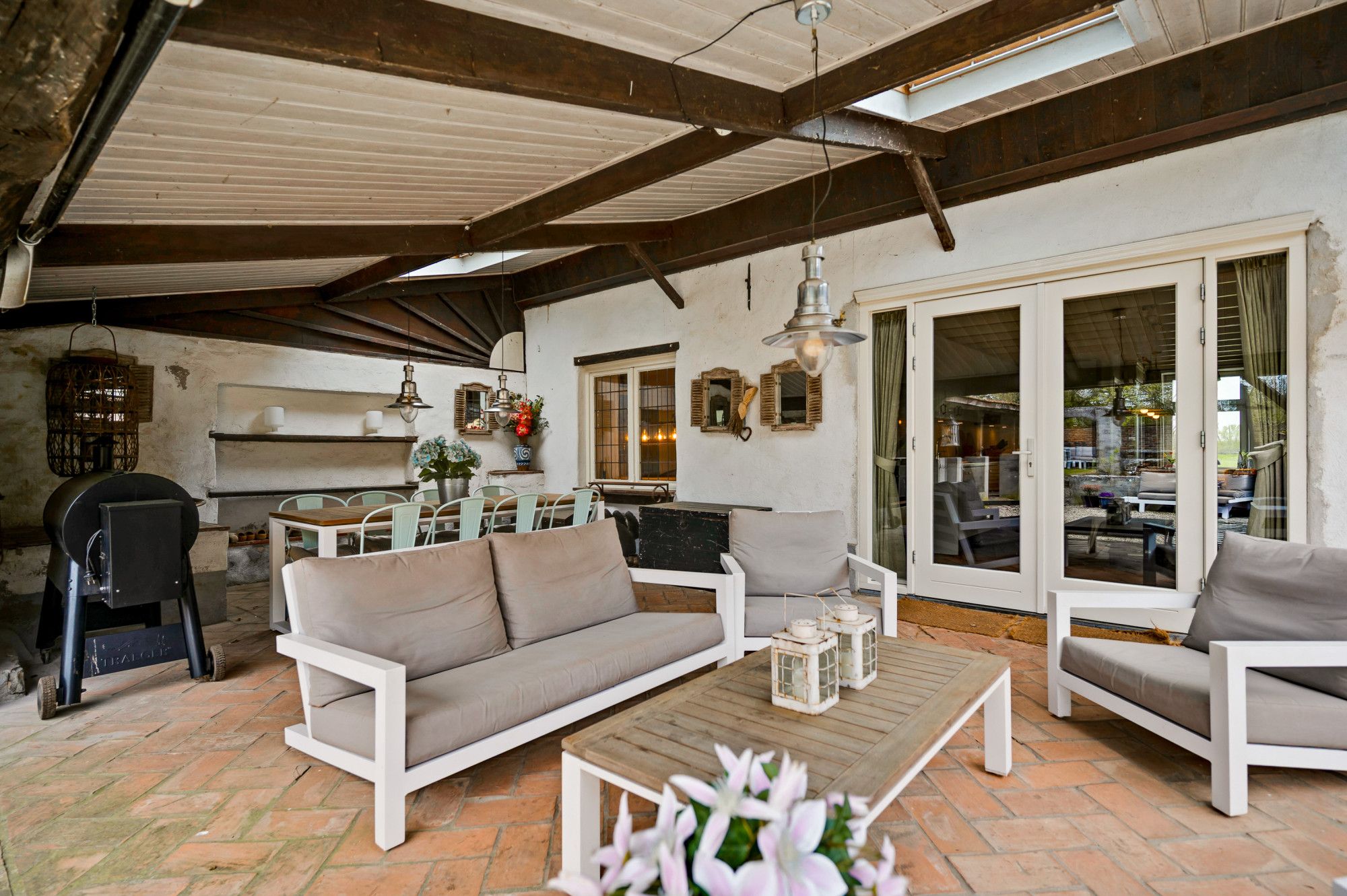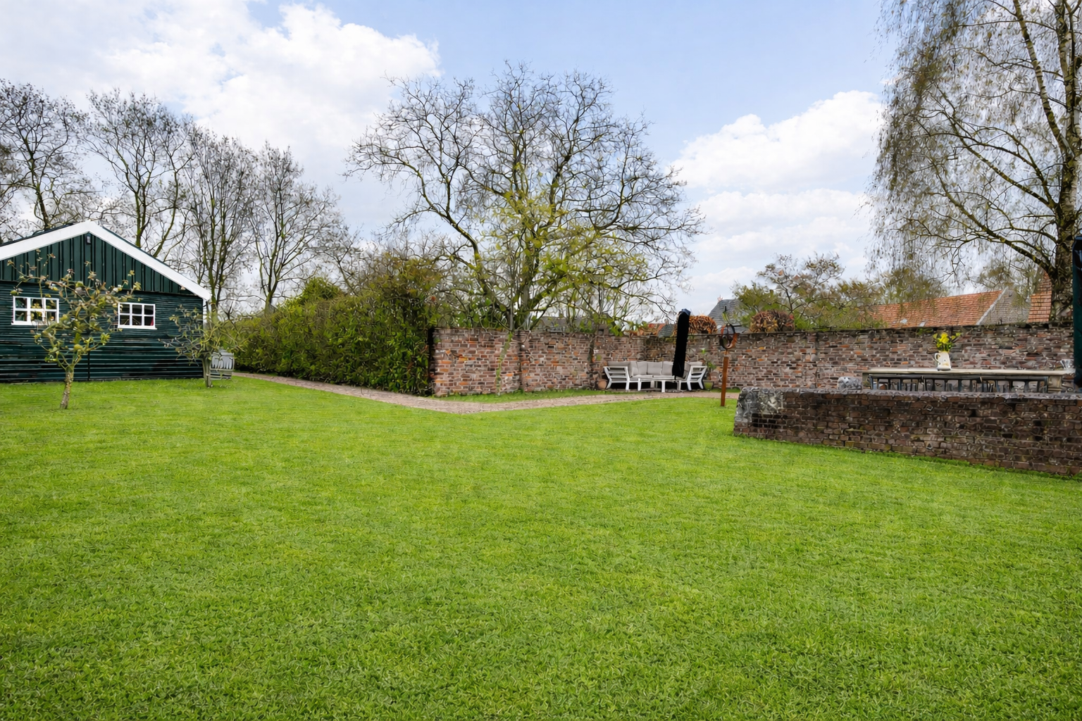 Er is een diepe en een grote tuin met o.a meerdere terrassen, een grote zandbak, veranda, gazon, bomen (diverse fruitbomen) en biedt heerlijk vrij zicht, volop zon en schaduw én volledige privacy. Een heerlijke veranda, direct gelegen achter de woning, vormt een ideale verlenging van het woongenot naar buiten. Het guesthouse met vliering in de tuin biedt extra praktische ruimte. Daarnaast bevinden zich aansluitend aan de veranda voormalige stallen voor extra buitenopslag. In deze stallen bevindt zich ook een deel van de voormalige keuken uit de carré boerderij. De brede oprit aan de linkerzijde van de woning biedt plaats aan meerdere voertuigen. Een dubbele houten poort biedt toegang tot de tuin achterom voor auto’s en fietsen. De combinatie van groen, ruimte en comfort maakt dit een tuin waar het hele gezin kan genieten.