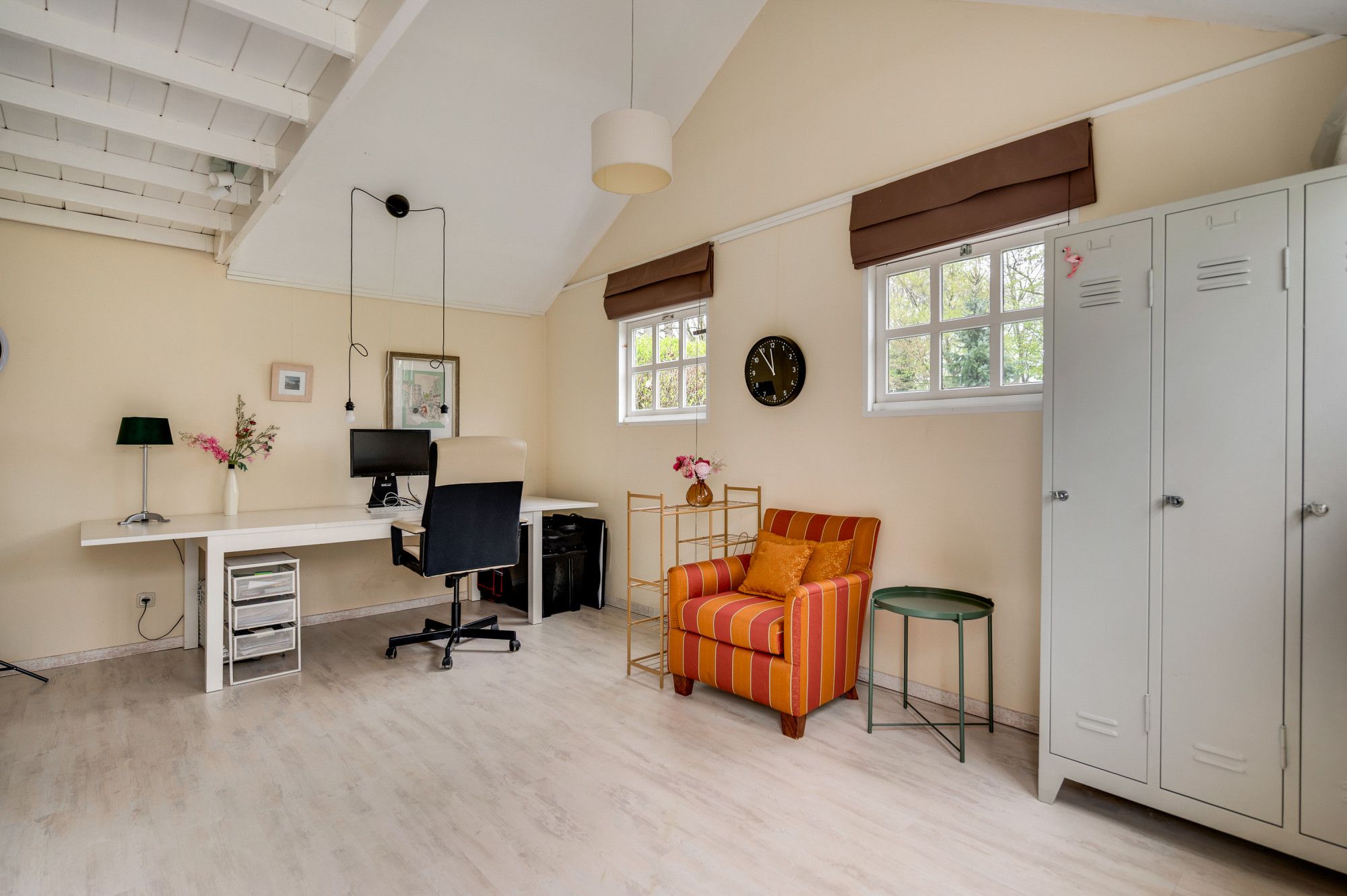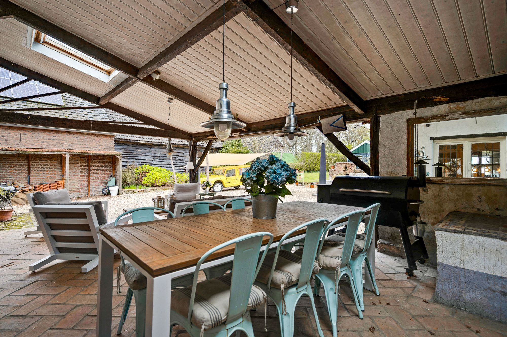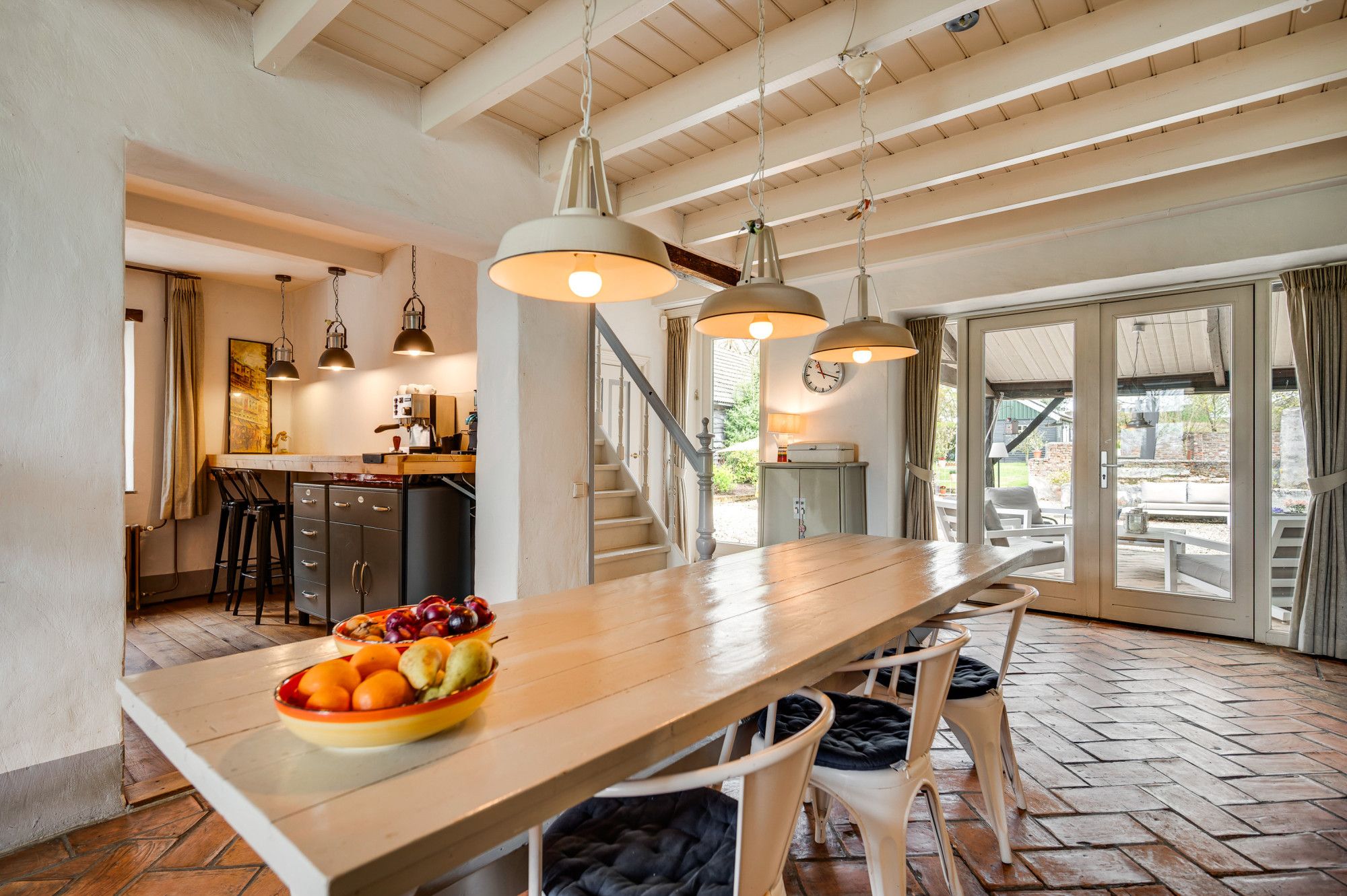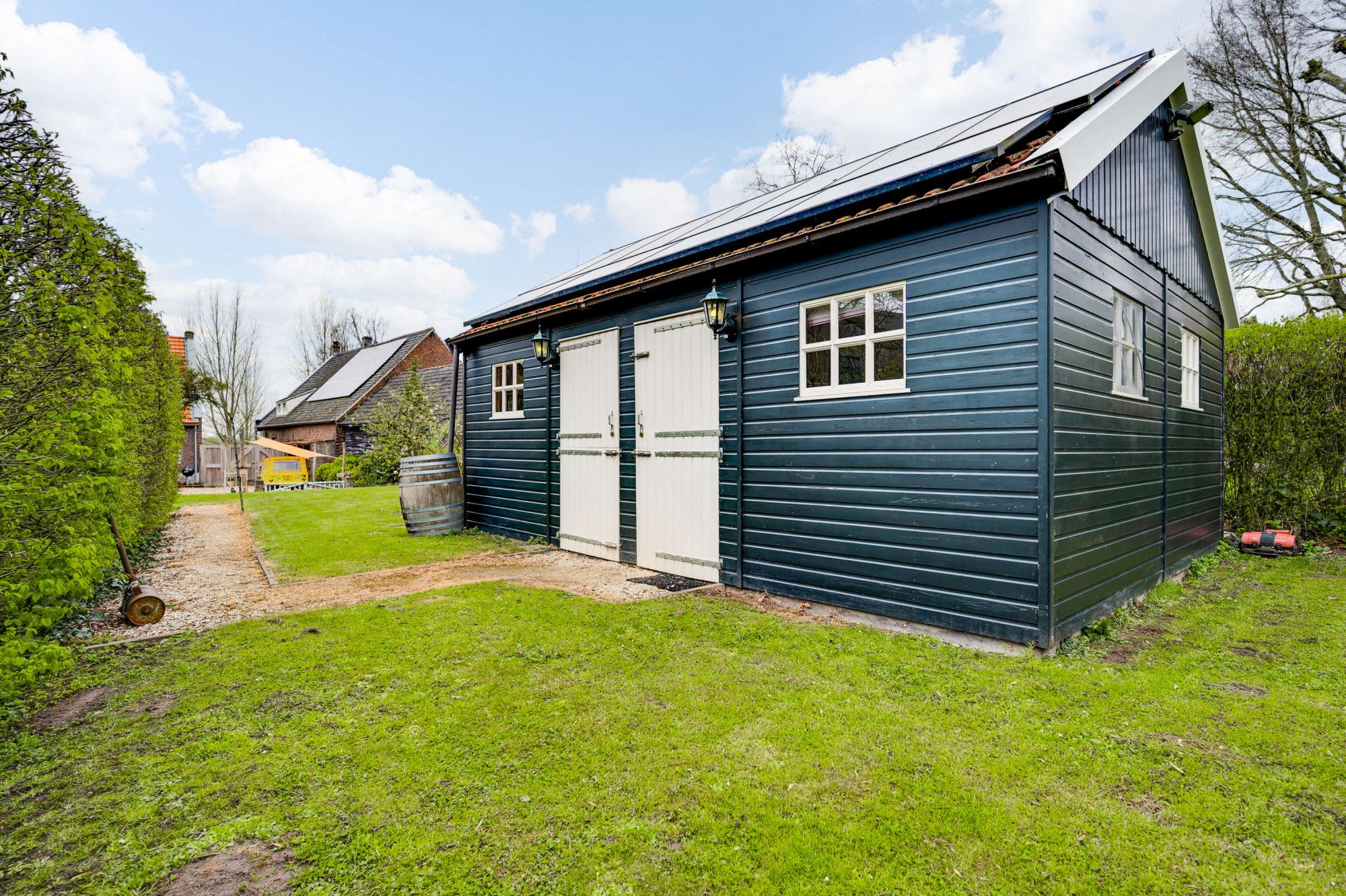 Er is een diepe en een grote tuin met o.a meerdere terrassen, een grote zandbak, veranda, gazon, bomen (diverse fruitbomen) en biedt heerlijk vrij zicht, volop zon en schaduw én volledige privacy. Een heerlijke veranda, direct gelegen achter de woning, vormt een ideale verlenging van het woongenot naar buiten. Het guesthouse met vliering in de tuin biedt extra praktische ruimte. Daarnaast bevinden zich aansluitend aan de veranda voormalige stallen voor extra buitenopslag. In deze stallen bevindt zich ook een deel van de voormalige keuken uit de carré boerderij. De brede oprit aan de linkerzijde van de woning biedt plaats aan meerdere voertuigen. Een dubbele houten poort biedt toegang tot de tuin achterom voor auto’s en fietsen. De combinatie van groen, ruimte en comfort maakt dit een tuin waar het hele gezin kan genieten.