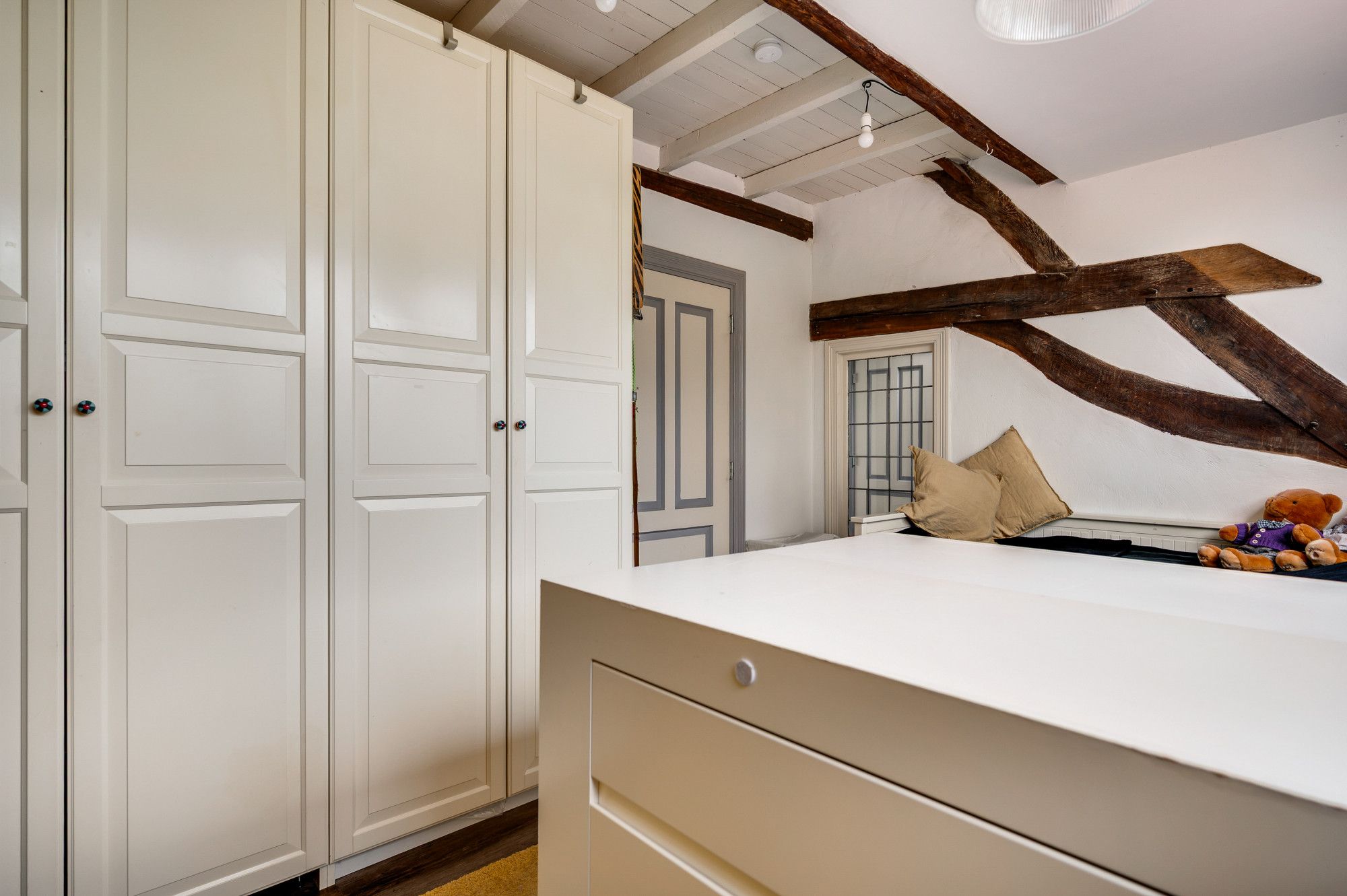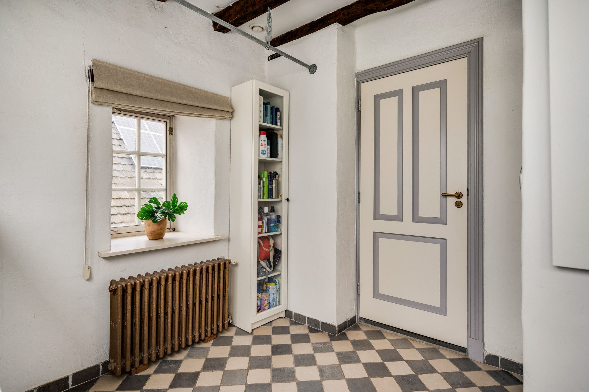Royale bergruimte met opstelling van zonneboiler en de CV-combiketel (Remeha Calenta HR, 2013, eigendom). Bereikbaar met een op maat gemaakte houten schuiftrap.
