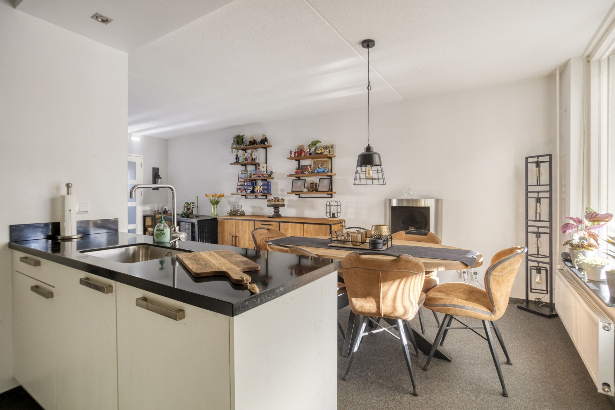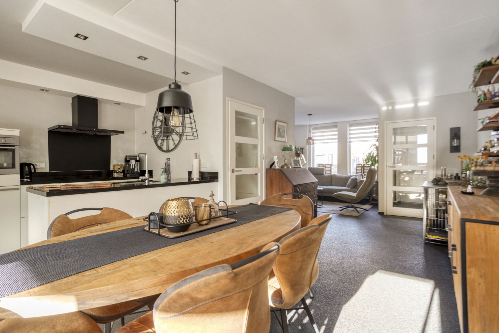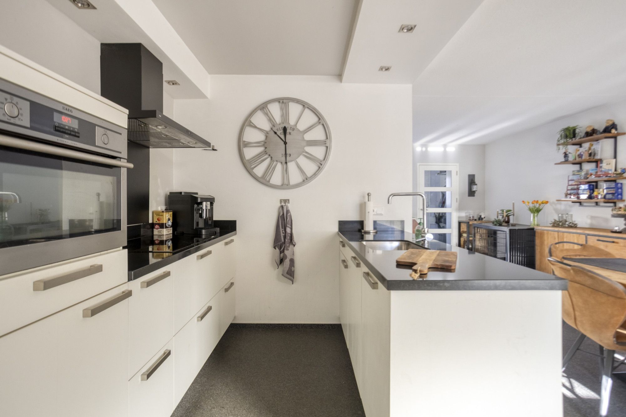 - U-vormige woonkamer met open keuken (totaal ca. 38 m²) met een moderne keukenopstelling met een kookeiland en diverse inbouwapparatuur.