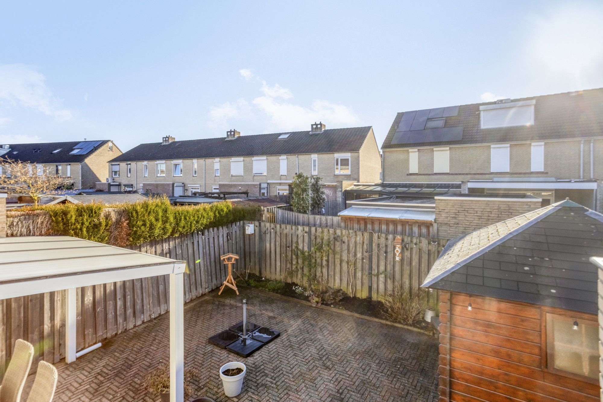 - Op het zuidoosten gelegen diepe achtertuin met terrasoverkapping, aangebouwde stenen berging van ca. 5 m² en een houten tuinberging.