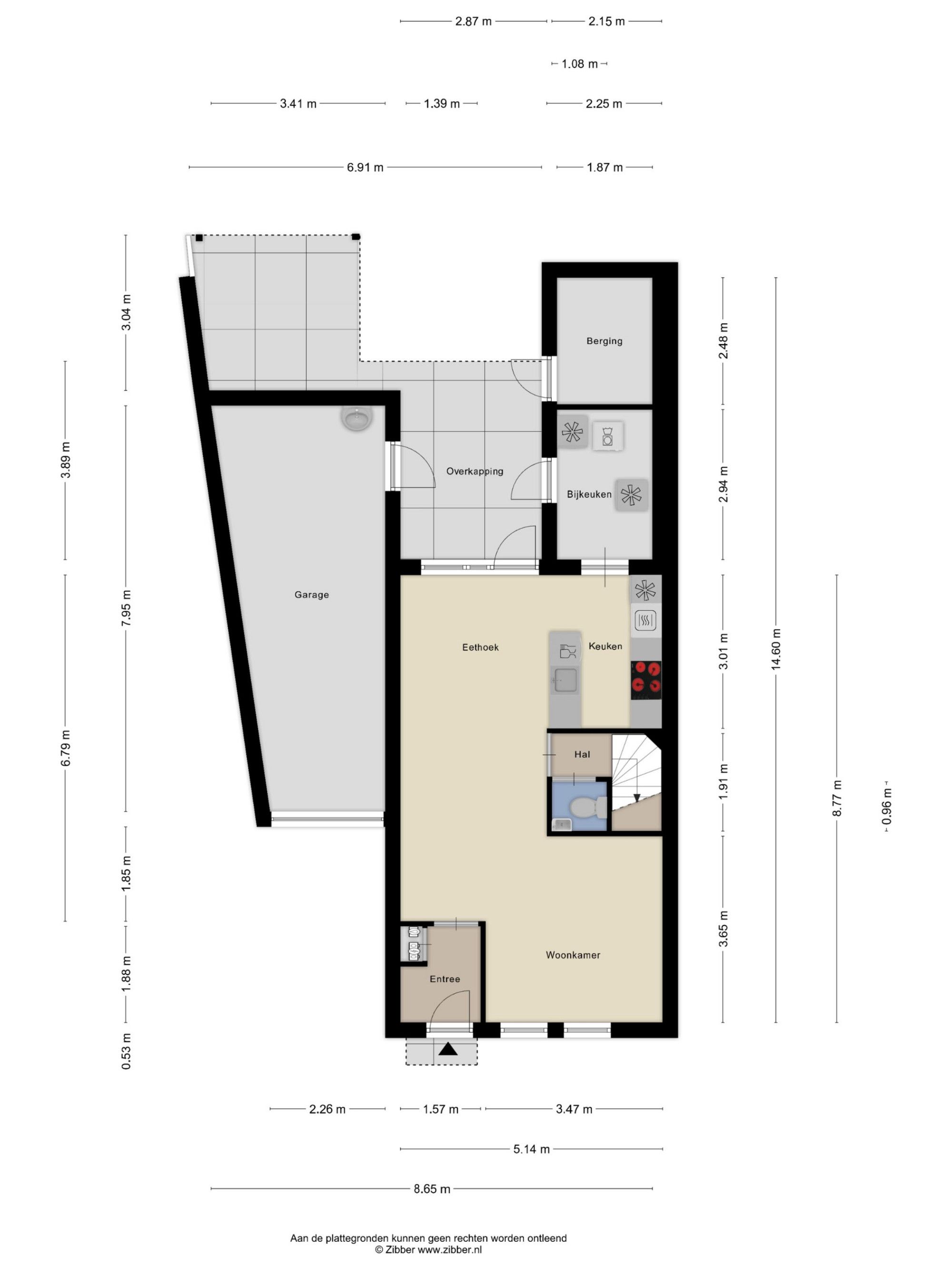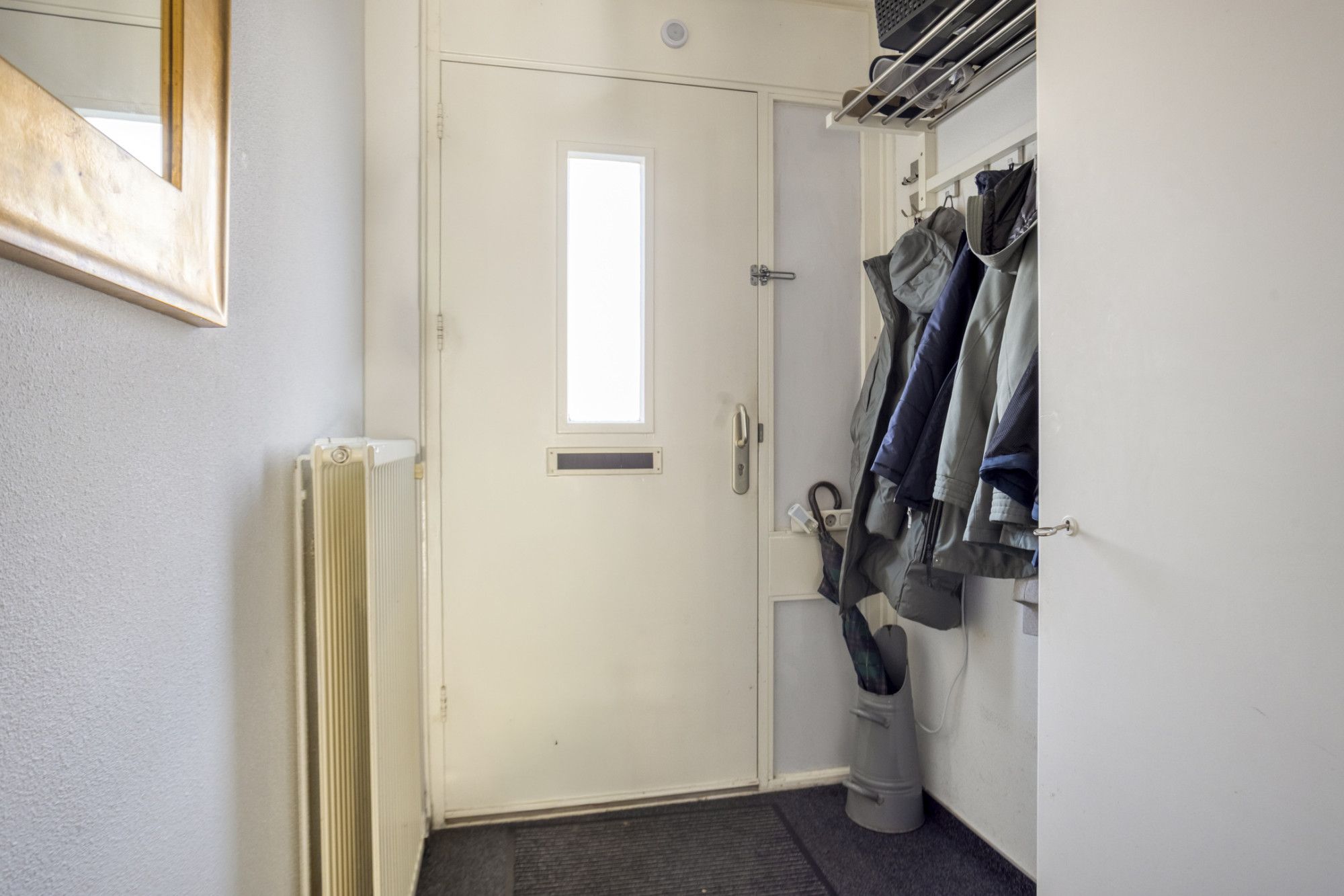 - Ontvangsthal met meterkast, trappenhuis en toegang tot de woonkamer.