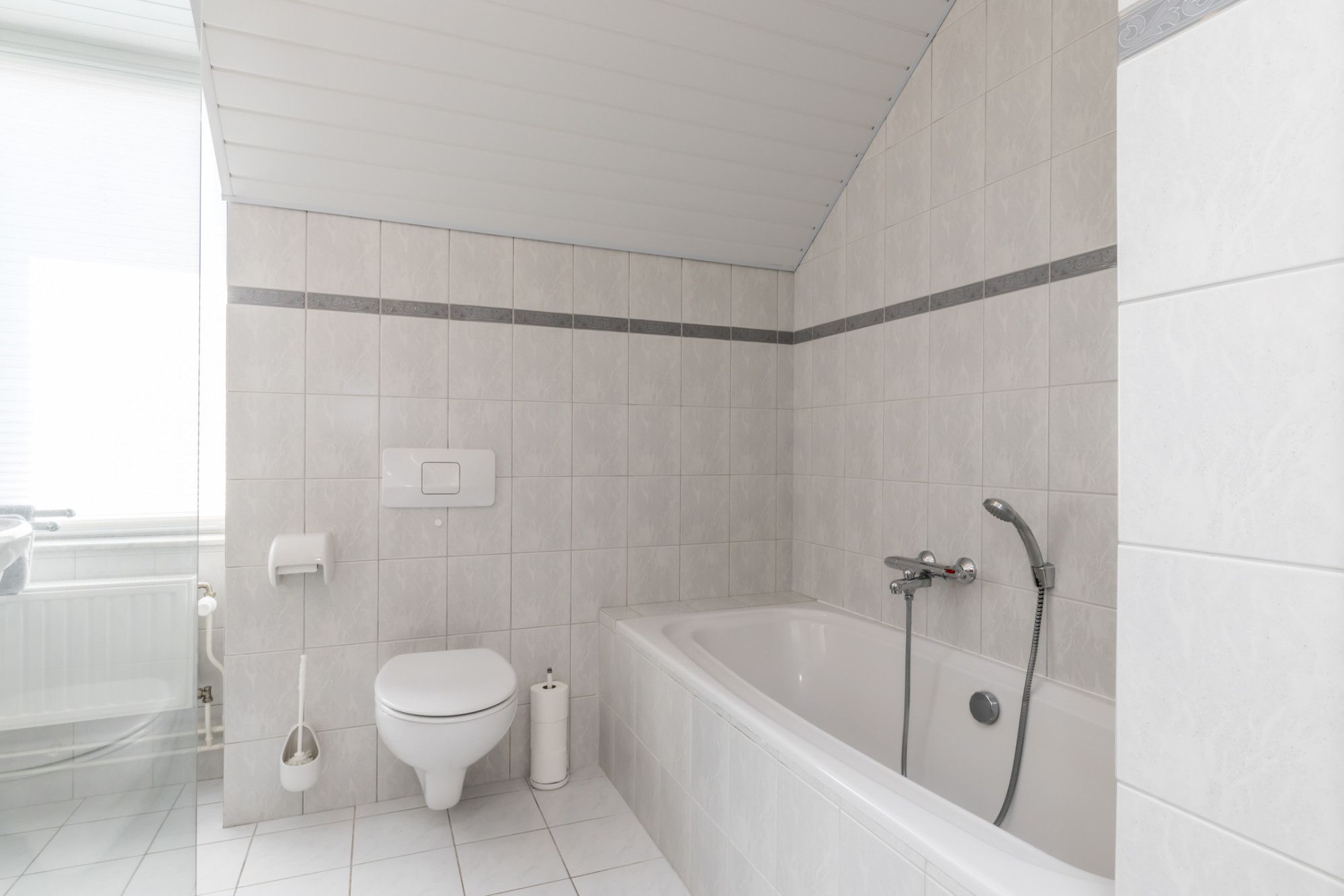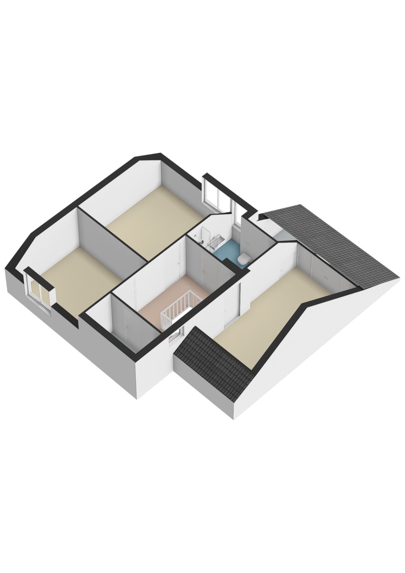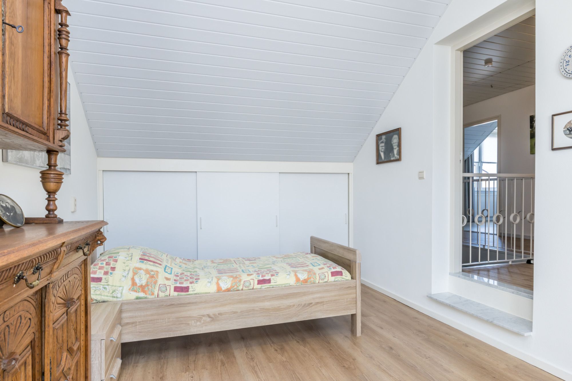 De ruime overloop biedt toegang tot drie slaapkamers, de badkamer en een bergruimte. Slaapkamer I, gelegen aan de voorzijde van de woning, is circa 13 m² groot en voorzien van een dakkapel en airconditioning. Slaapkamer II, gelegen aan de achterzijde van de woning, is circa 18 m² groot en eveneens voorzien van een dakkapel en airconditioning. Slaapkamer III is boven de garage gelegen en is circa 18 m² groot. Deze kamer beschikt over kastruimte in de dakschuinte en is tevens voorzien van een berging waar de cv ketel is geplaatst. Alle slaapkamers zijn afgewerkt met een laminaatvloer. De volledig betegelde badkamer (circa 6 m² groot) is voorzien van een ligbad, zwevend closet, wastafel en douche.