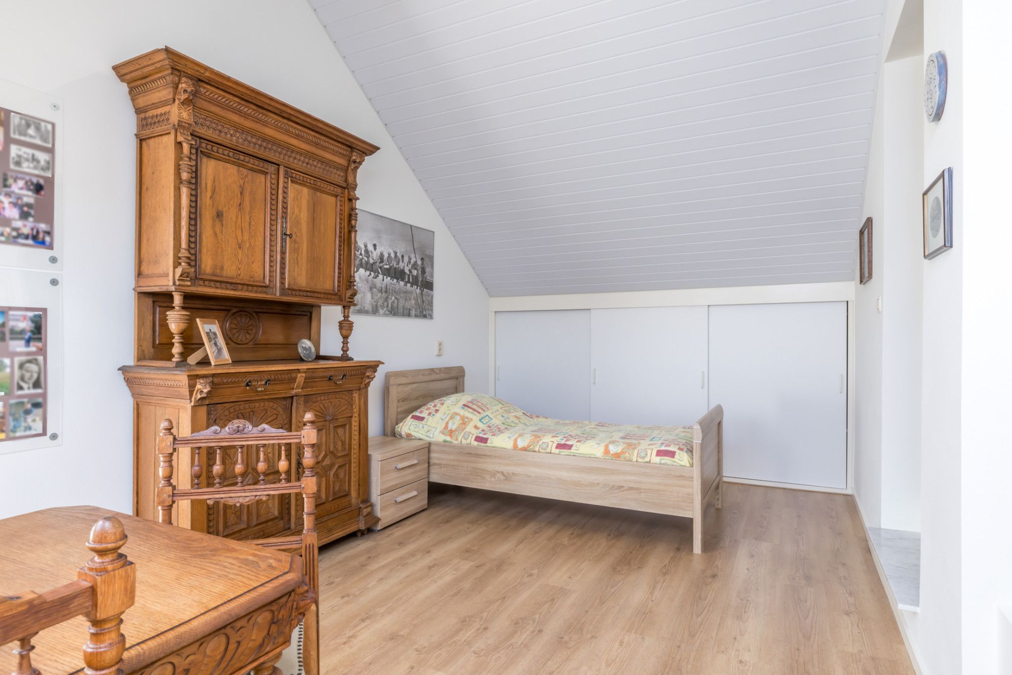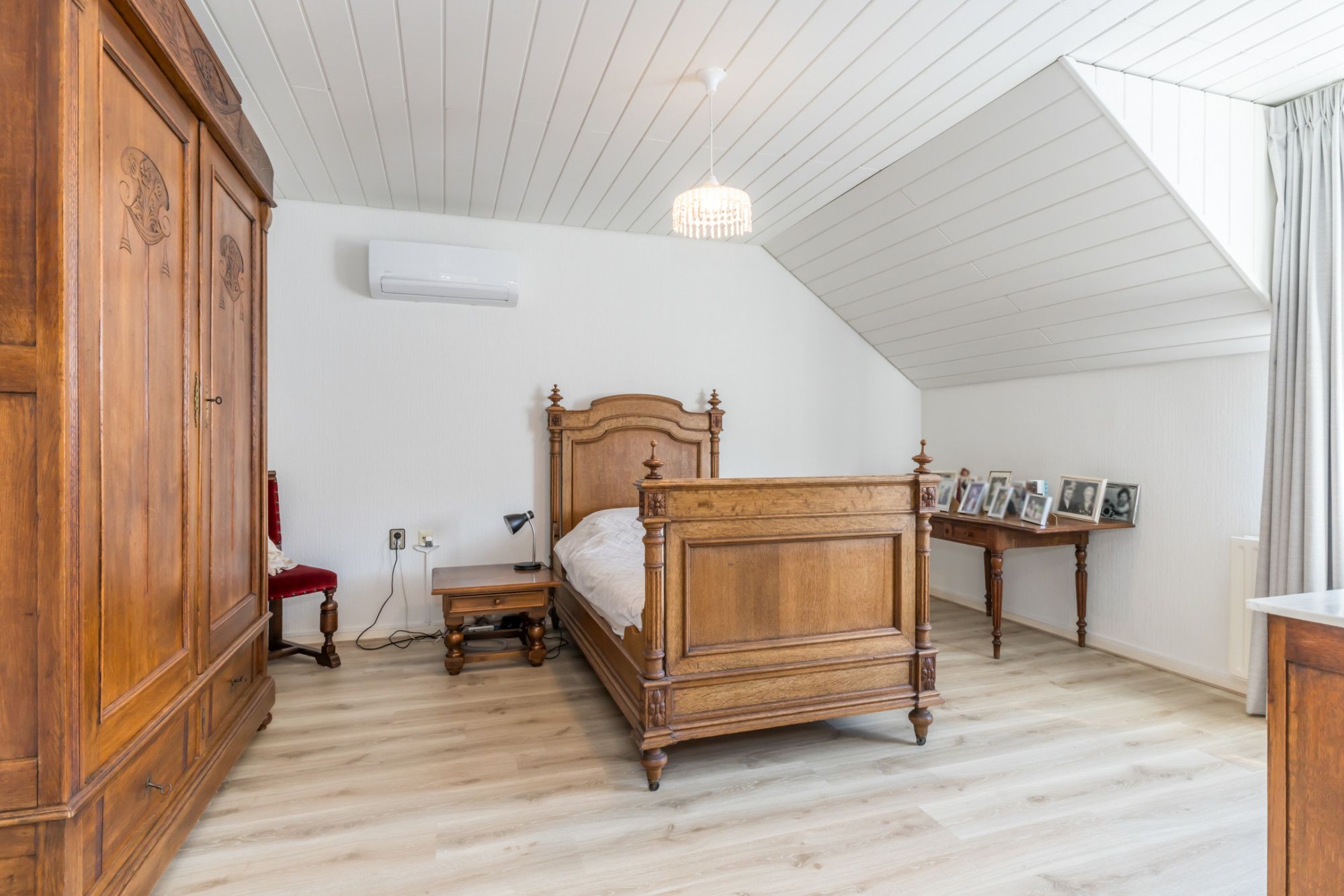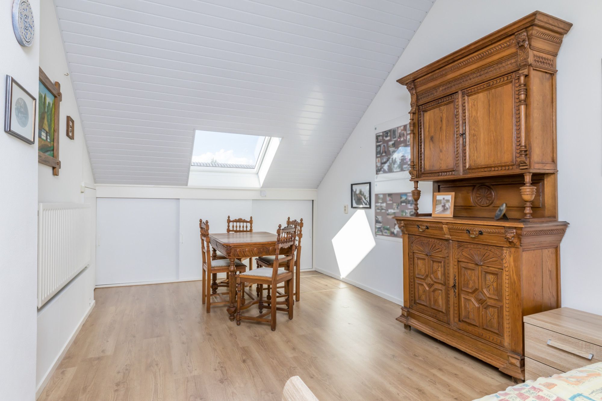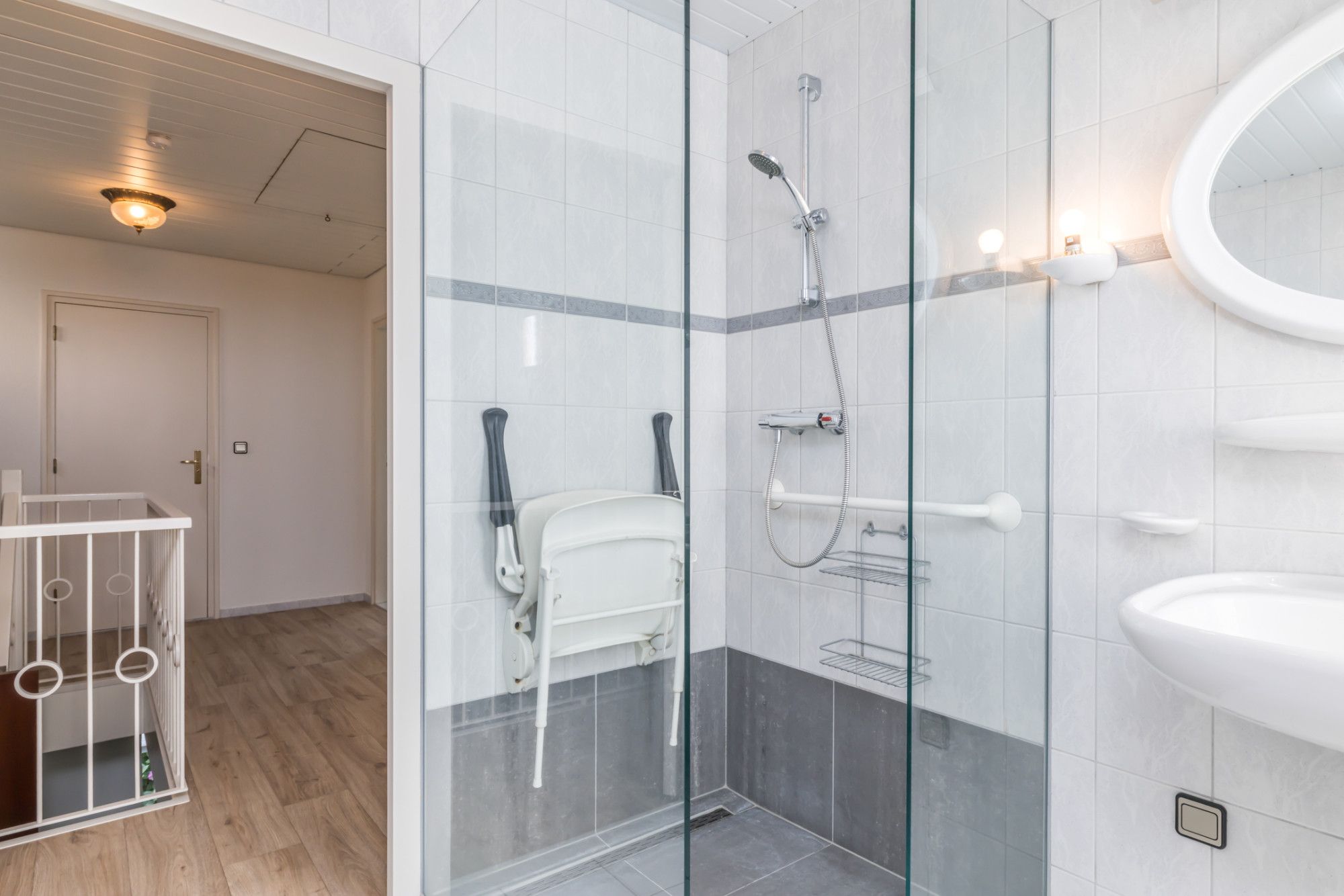De ruime overloop biedt toegang tot drie slaapkamers, de badkamer en een bergruimte. Slaapkamer I, gelegen aan de voorzijde van de woning, is circa 13 m² groot en voorzien van een dakkapel en airconditioning. Slaapkamer II, gelegen aan de achterzijde van de woning, is circa 18 m² groot en eveneens voorzien van een dakkapel en airconditioning. Slaapkamer III is boven de garage gelegen en is circa 18 m² groot. Deze kamer beschikt over kastruimte in de dakschuinte en is tevens voorzien van een berging waar de cv ketel is geplaatst. Alle slaapkamers zijn afgewerkt met een laminaatvloer. De volledig betegelde badkamer (circa 6 m² groot) is voorzien van een ligbad, zwevend closet, wastafel en douche.
