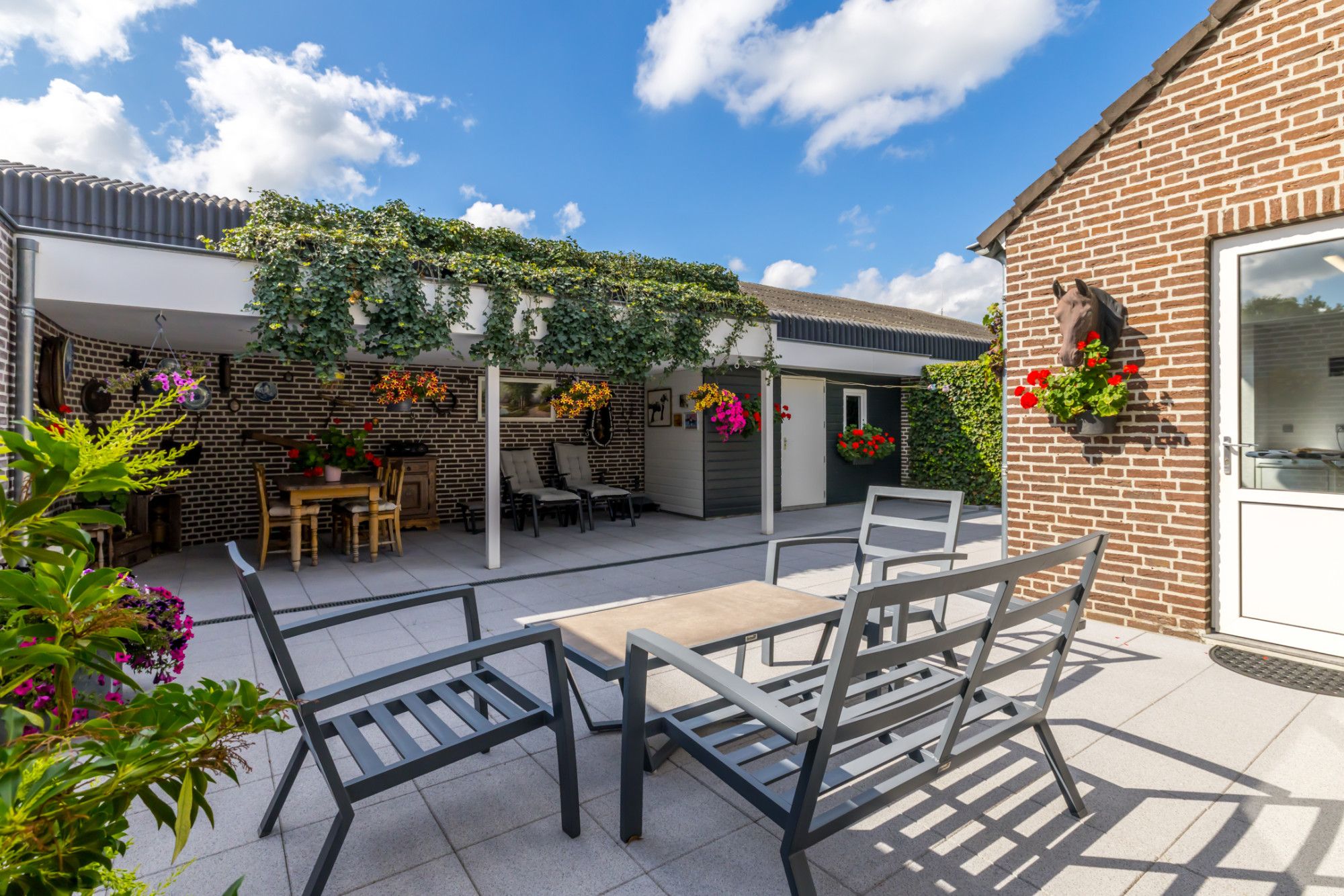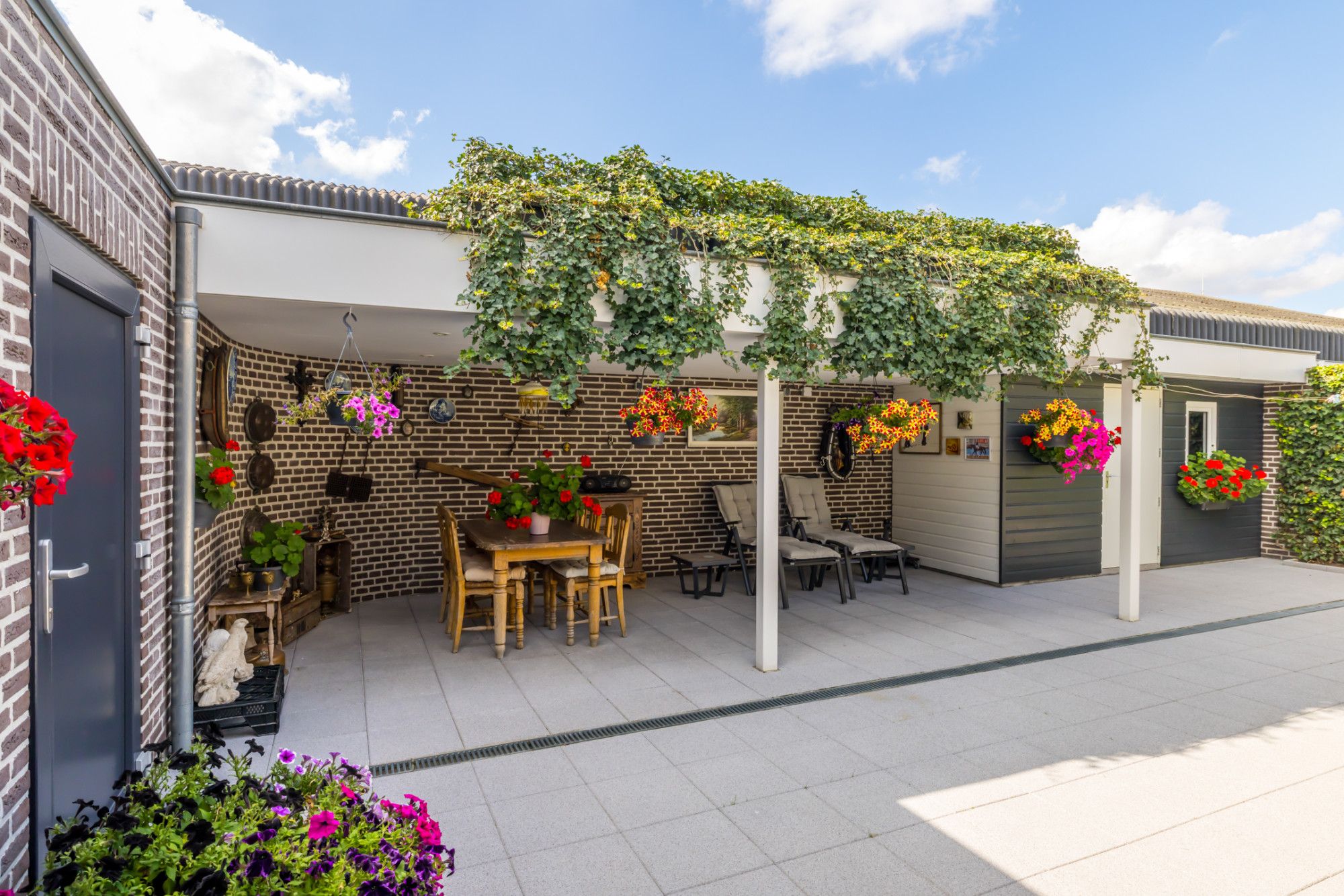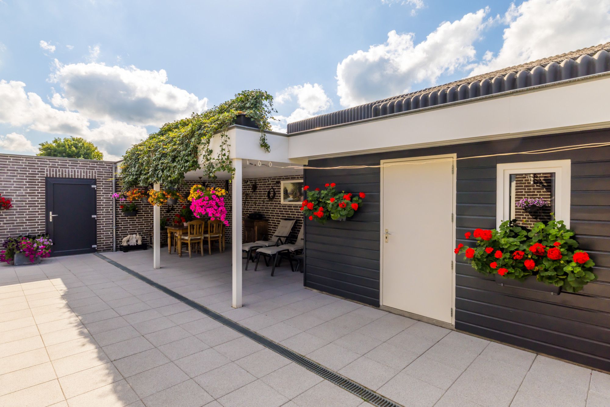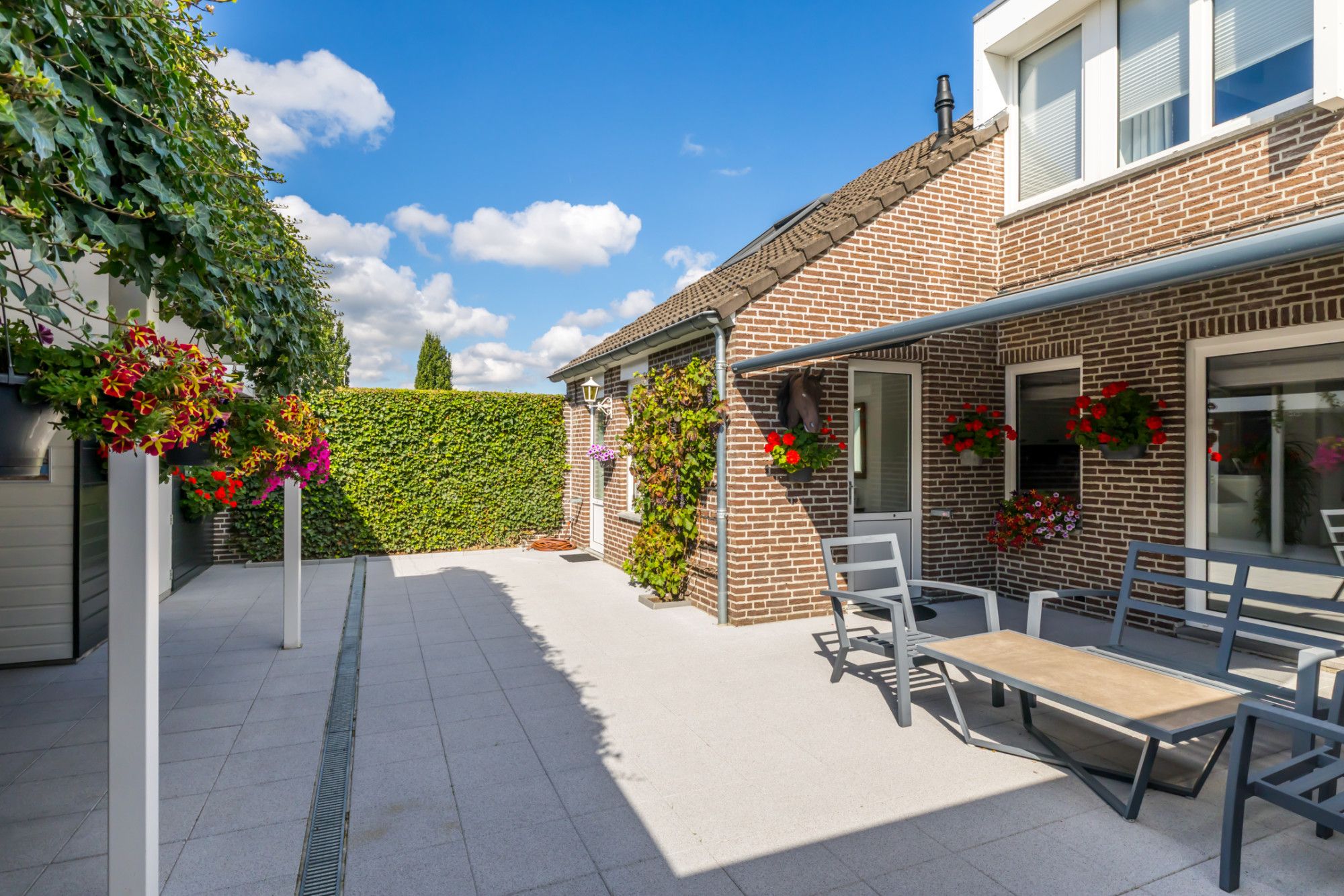 De omsloten achtertuin, gelegen op het zuiden, is onderhoudsvriendelijk aangelegd en voorzien van een ruime overkapping en een buitenberging. Daarnaast is er een elektrisch zonnescherm aanwezig en is de tuin ook toegankelijk via een achteringang. Of men nu van de zon of van de schaduw wil genieten, in deze intieme achtertuin kan men in alle privacy heerlijk ontspannen en dineren.