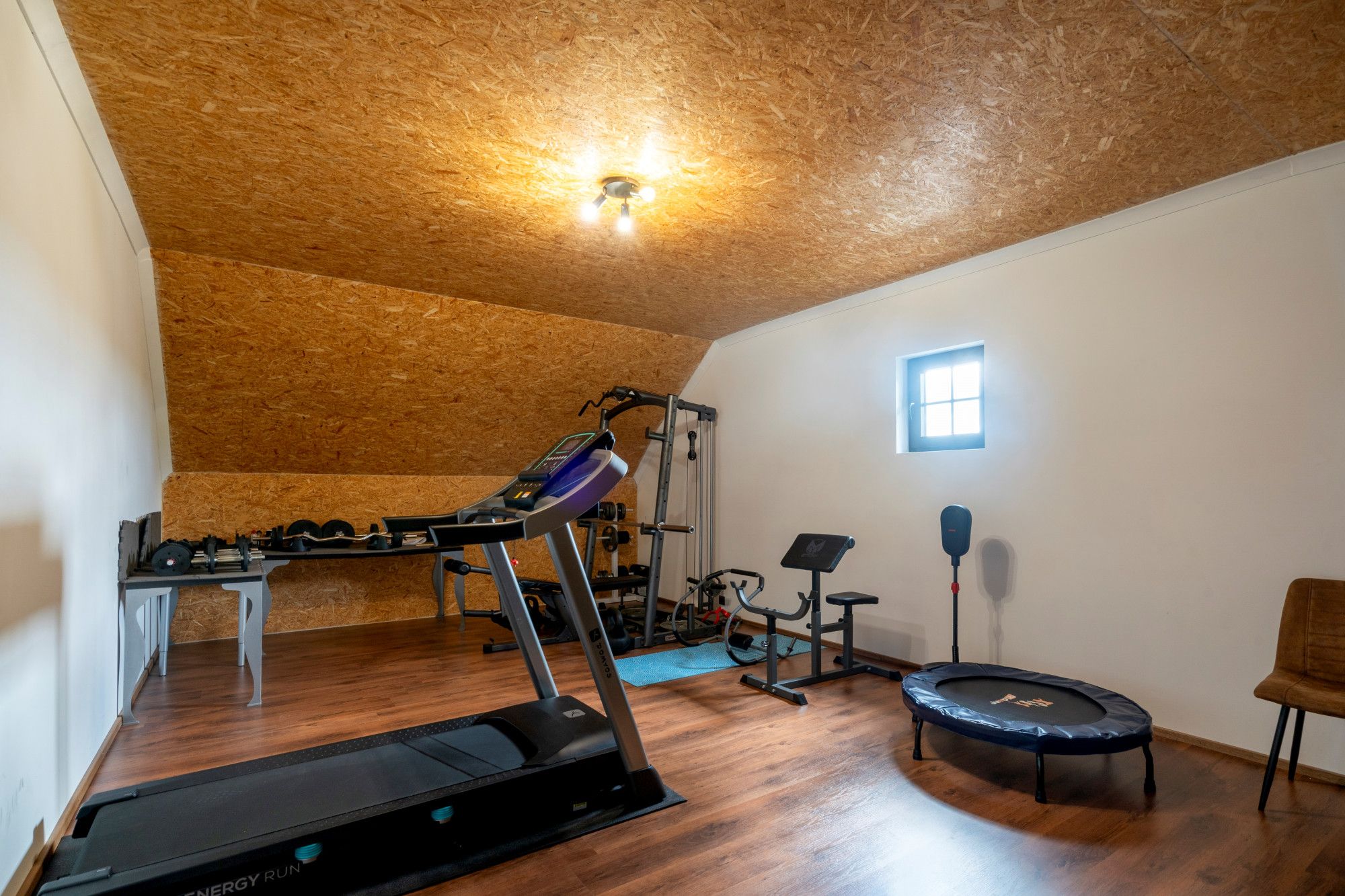 The house further features photovoltaic panels with a total surface area of 76 m² and 14,820 Watt peak, ventilation D system, air conditioning, home automation, alarm, smoke and fire detection, fixed built-in cupboards and bespoke furniture, videophone and façade lighting.