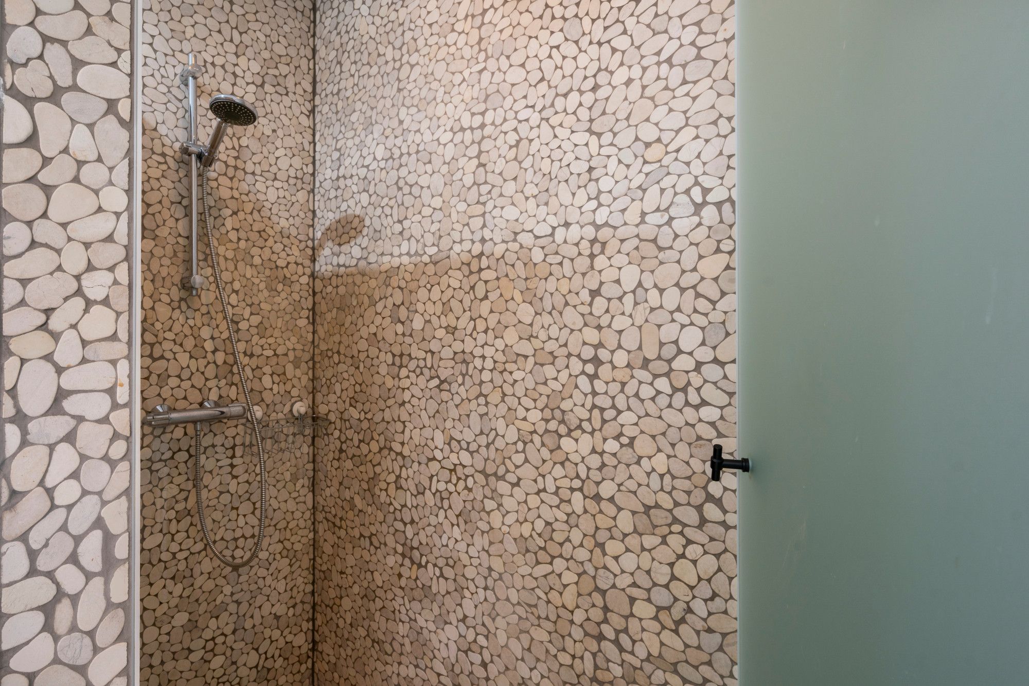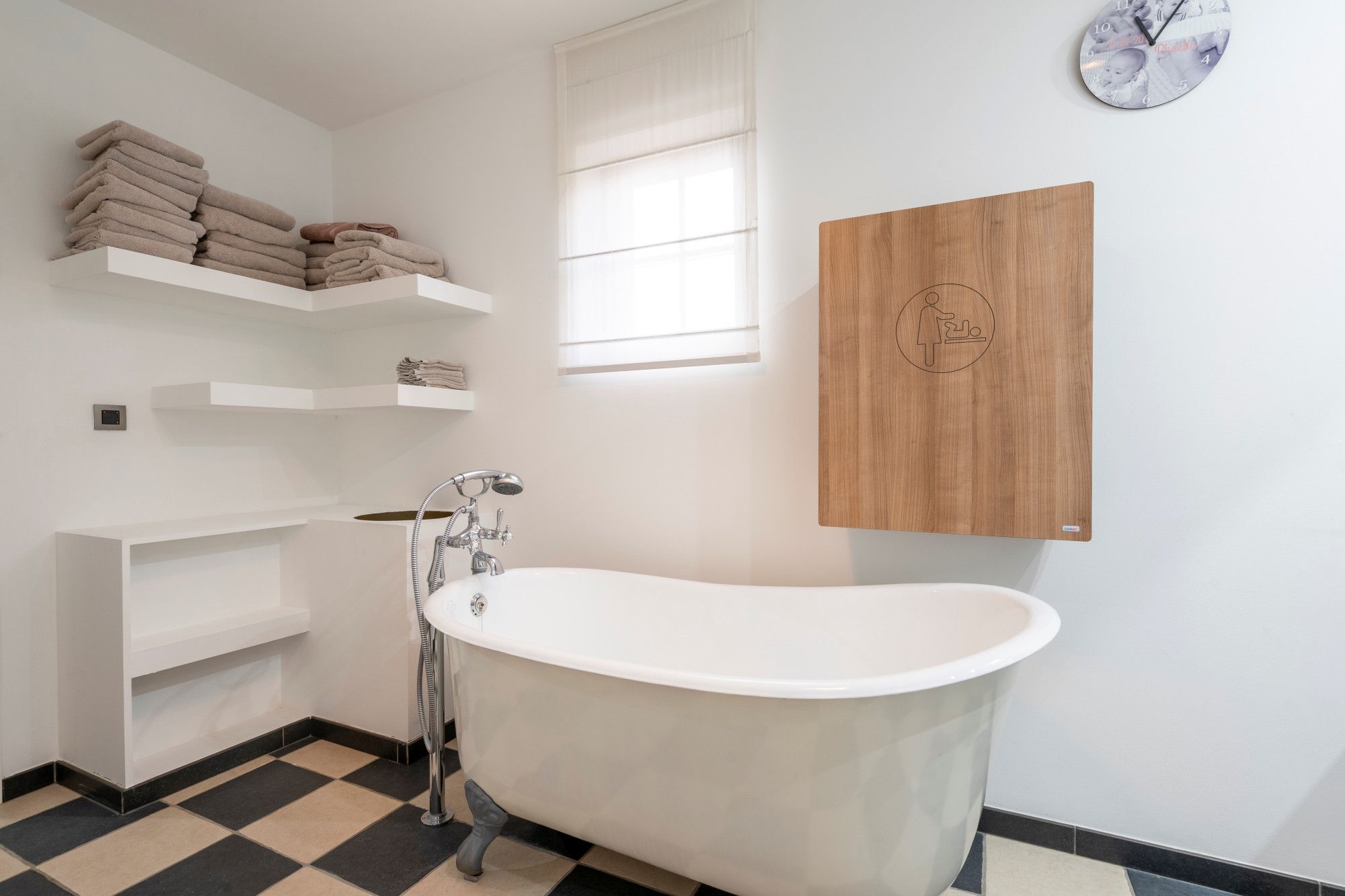 The first bathroom has a fixed washbasin and a walk-in shower. The 2nd bathroom is installed with a vanity unit, freestanding bathtub, walk-in shower and a 2nd toilet.