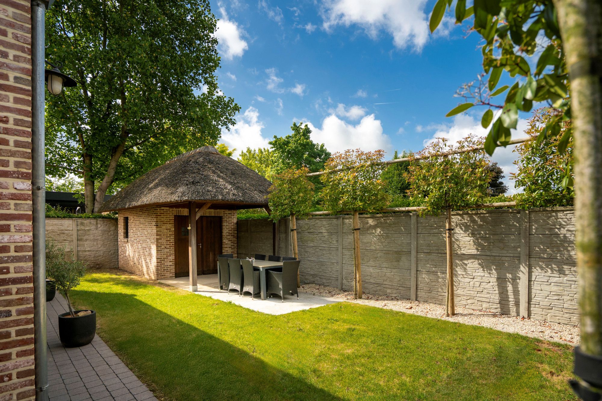 Through the central entrance hall with cloakroom there is access to the separate office and the through lounge including gas fireplace, semi-open living kitchen, intermediate hall with guest toilet and exterior door, linen room/bathroom 1. The fully enclosed and landscaped outdoor area has a remote controlled wicket door and sliding gate, several open car parks, carport, pastoral-style outbuilding with covered lounge and workshop, paving and a lawn.