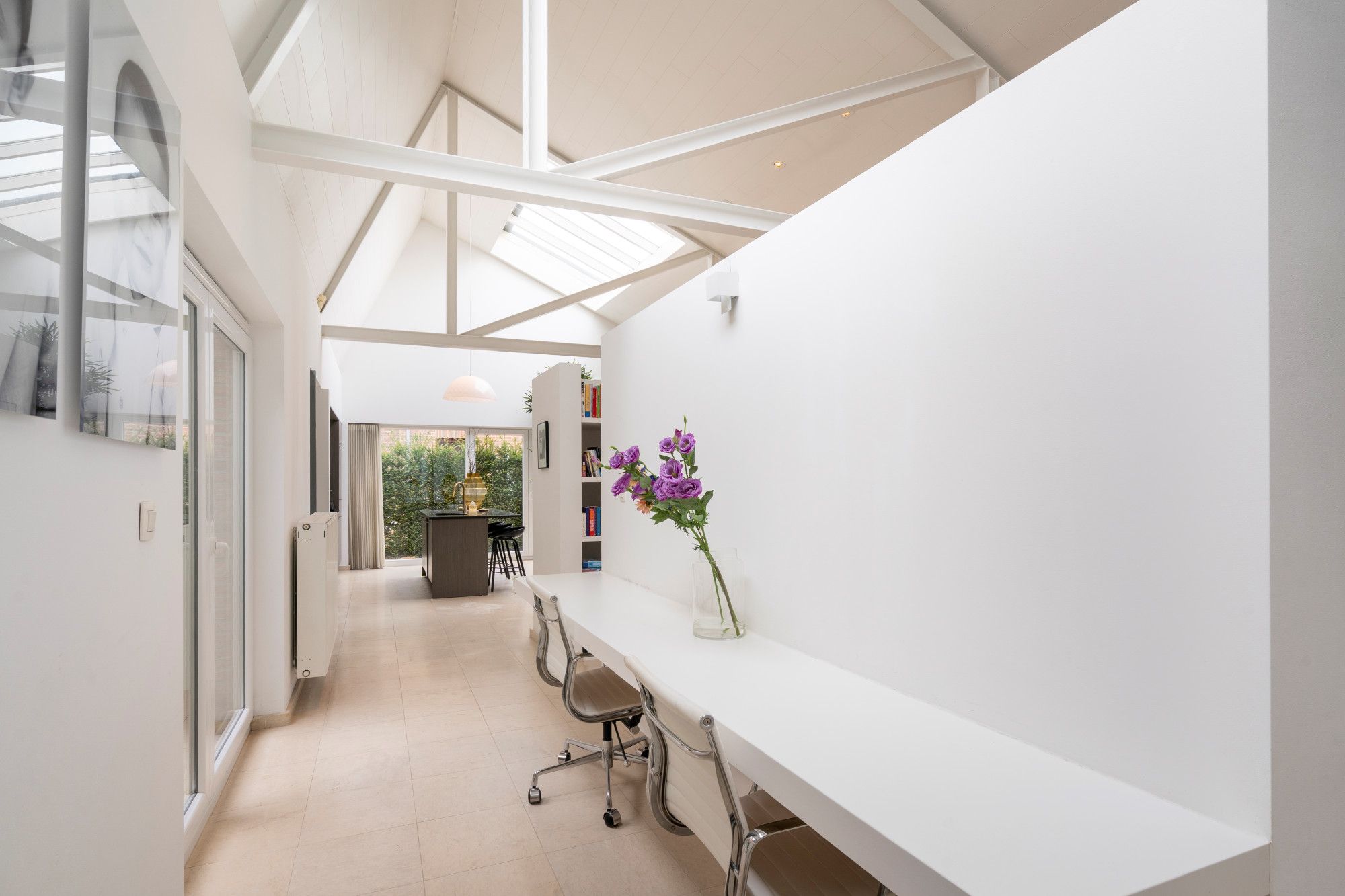 This practically laid out home offers all living spaces on one level, providing optimal living comfort. The high ceilings combined with the many windows give an open and spacious feeling. Surrounding the house is a well-kept garden that not only provides extra tranquility, but also the necessary privacy. The beautifully landscaped garden is west facing, allowing you to enjoy the evening sun. In addition, the house has a private driveway and ample parking at the front, which makes parking particularly convenient.