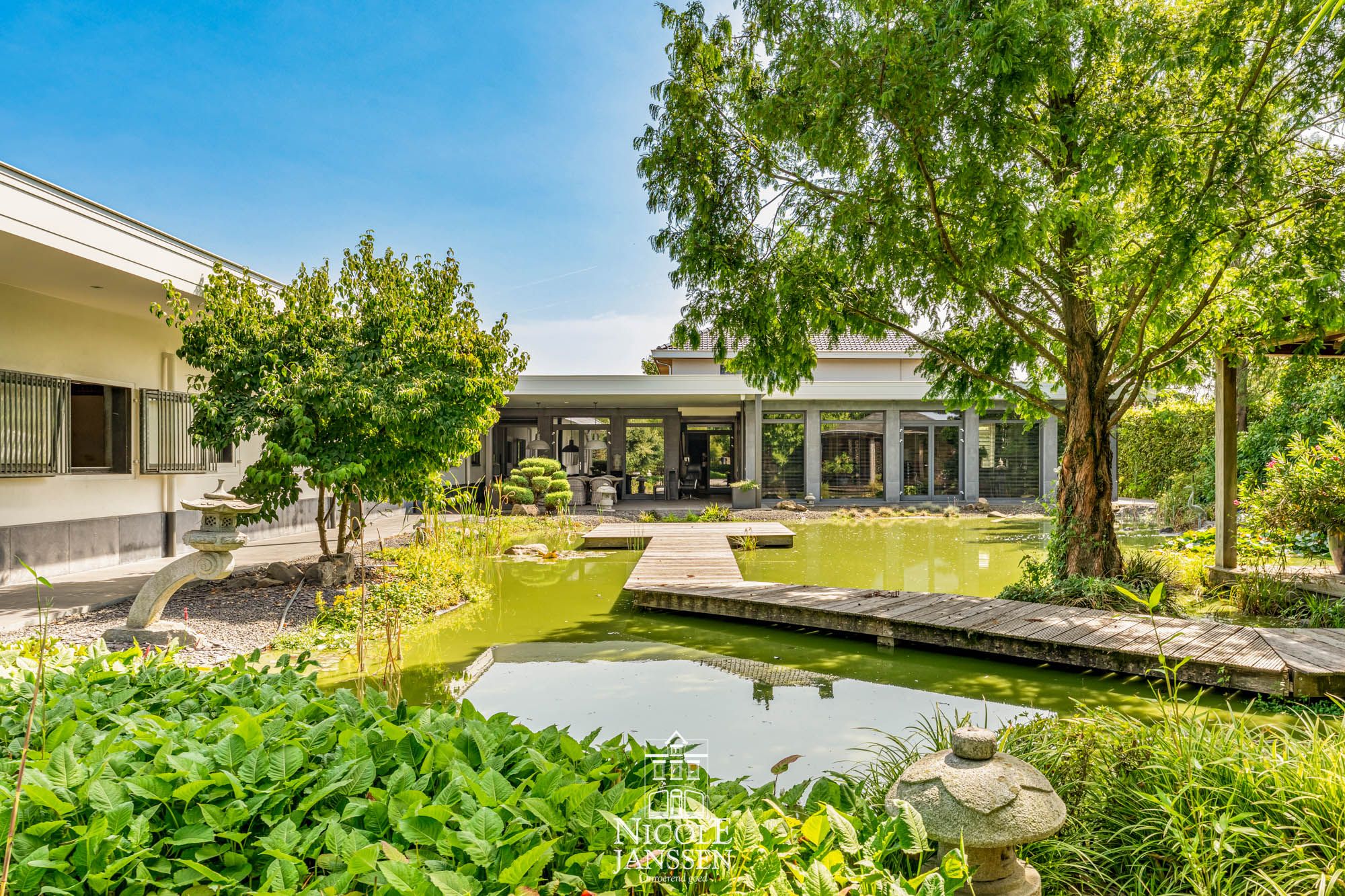 - Tuinhuis met twee toiletten, twee doucheruimtes, fitnessruimte en overdekt terras