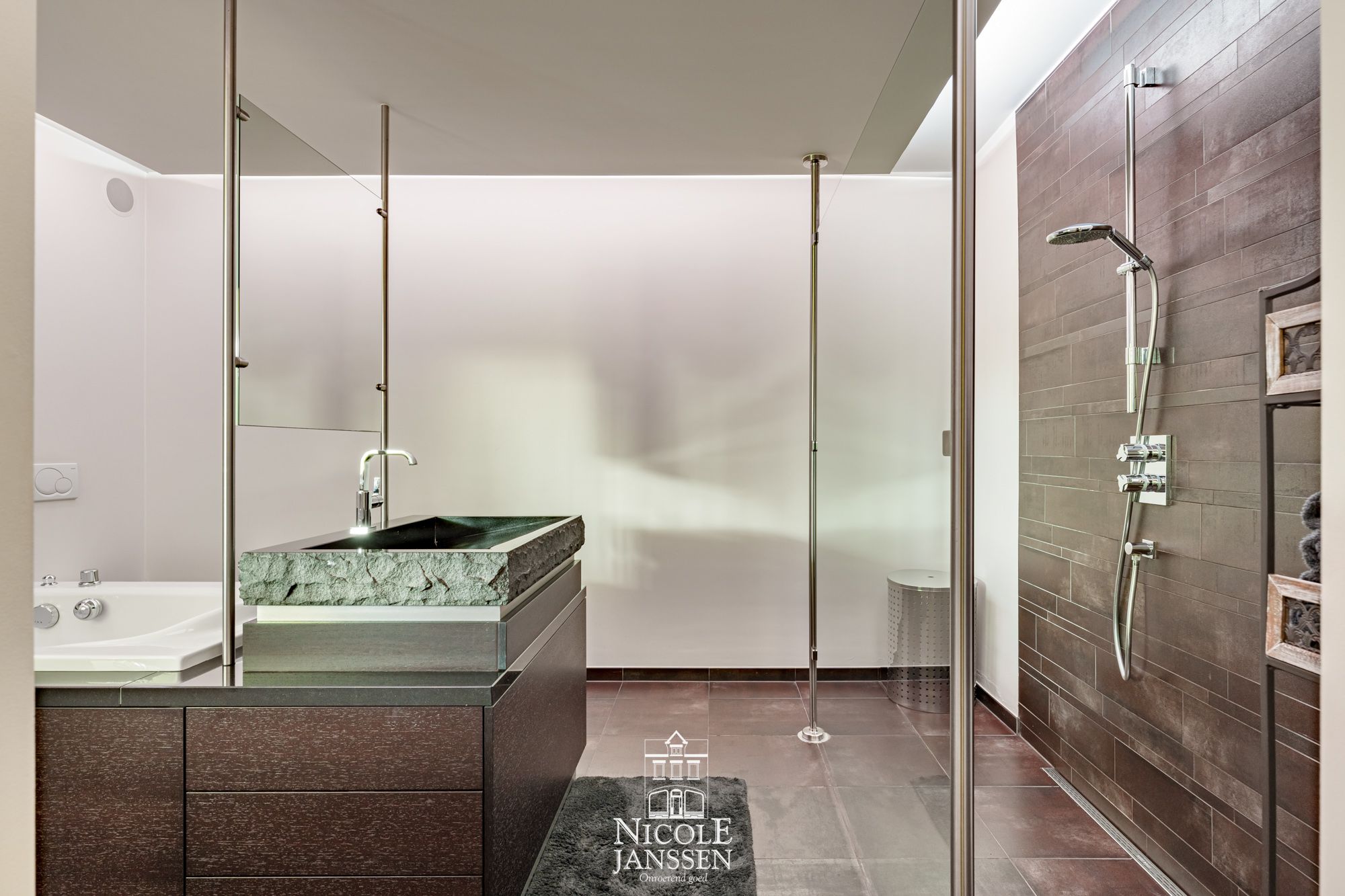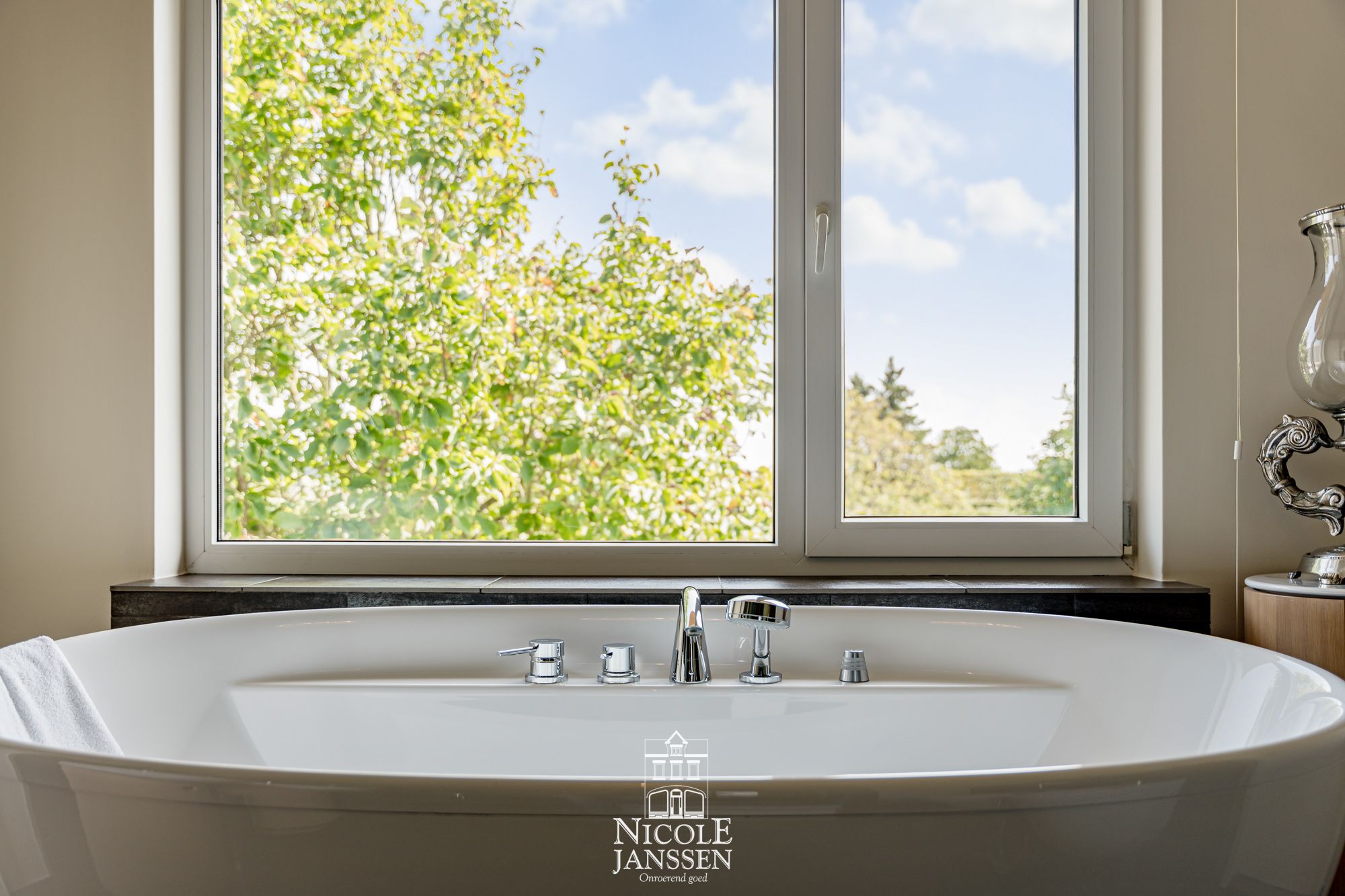 - Badkamer met ligbad met jetstreams, inloopdouche en wastafel