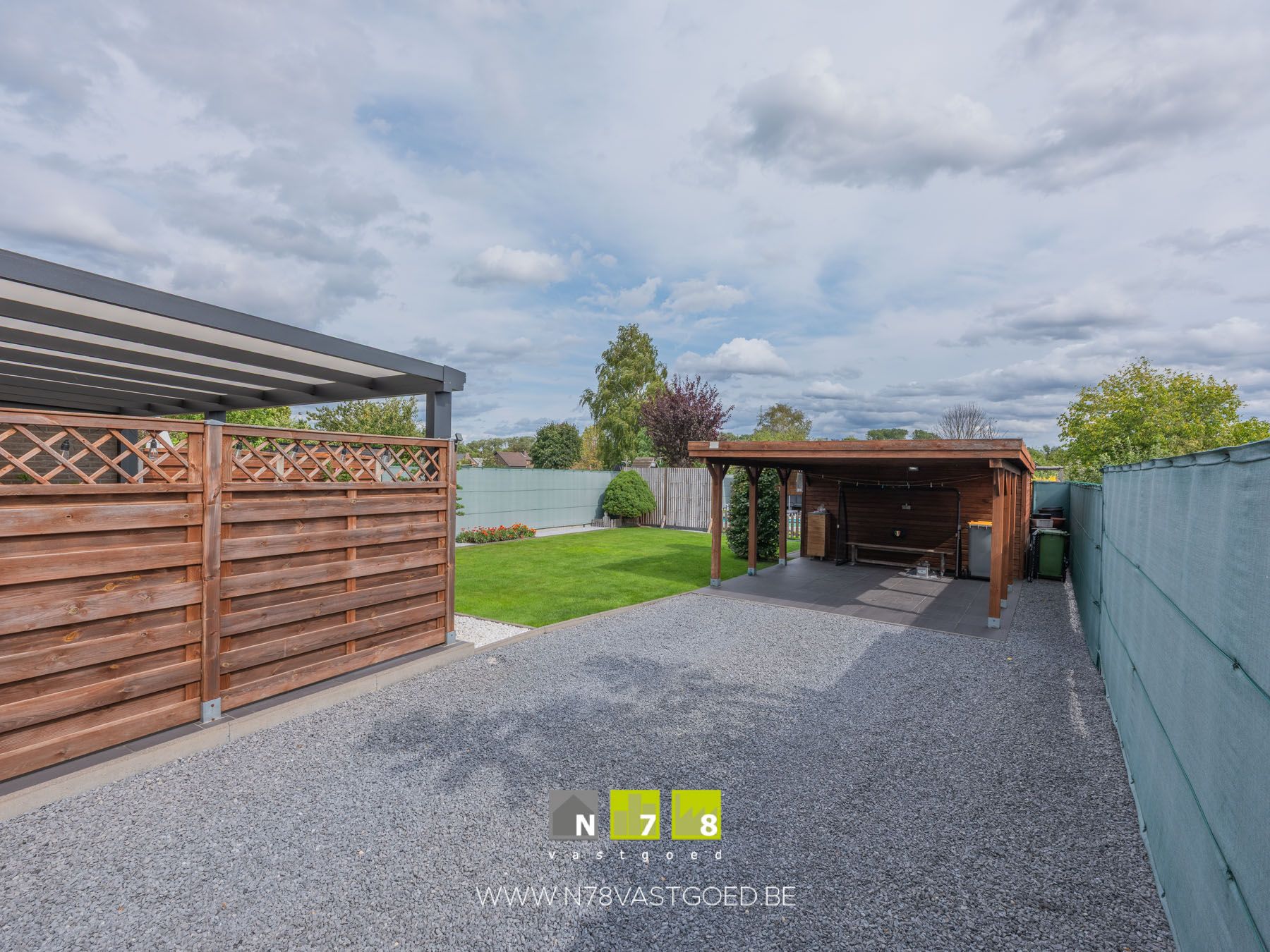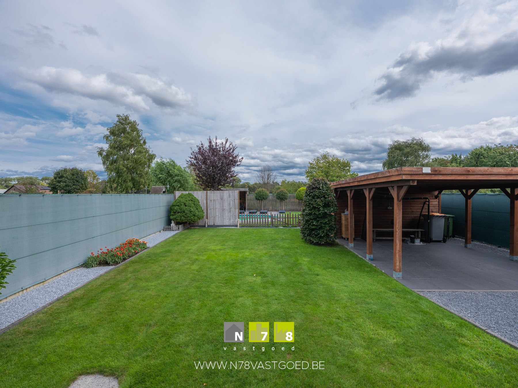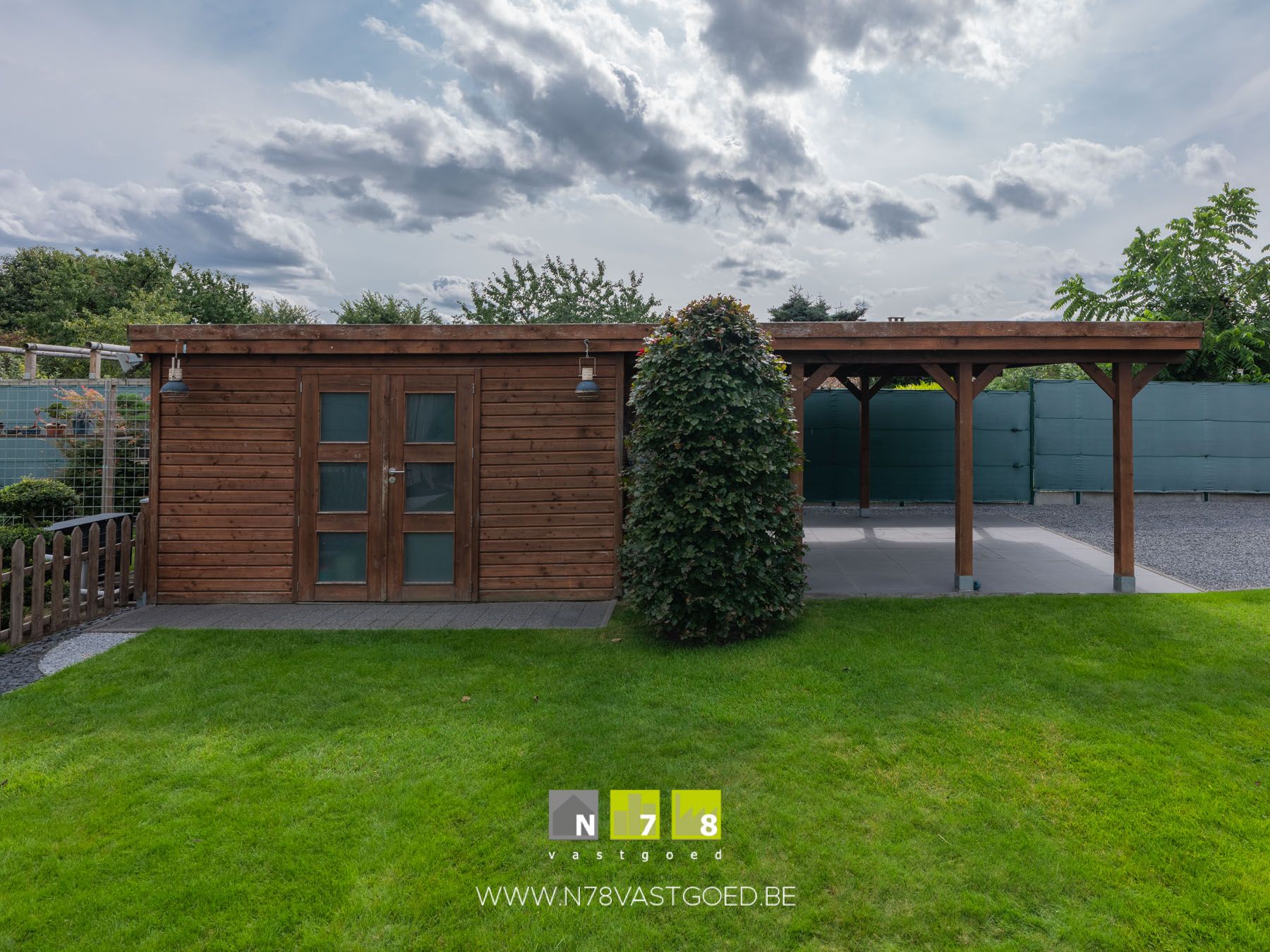 - Veilig en praktisch: automatische toegangspoort, carport, tuinberging met zwembadinstallatie en oprit in kiezelstenen.