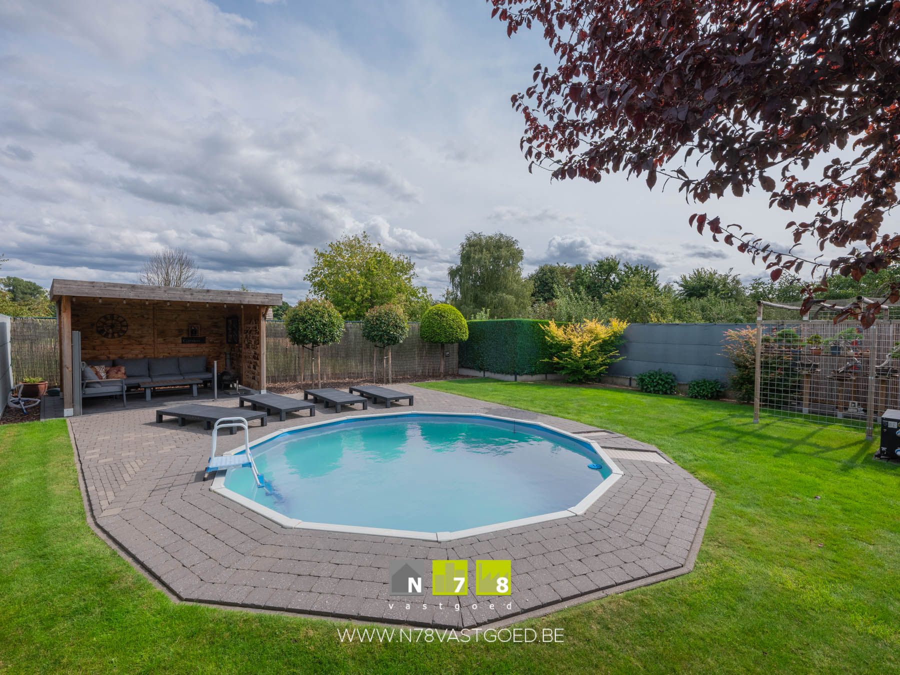HALFVRIJSTAANDE WONING MET EEN VERWARMD ZWEMBAD OP EEN PERCEEL VAN 6A28CA TE DILSEN.