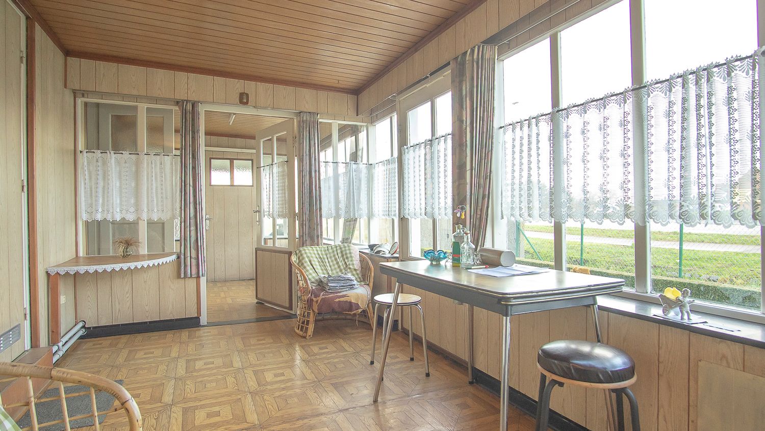 - Veranda: (2,50 m x 7,68 m = 19,20 m²) – hier is verwarming aanwezig – de veranda heeft ramen met enkel glas (de rest van de woning heeft dubbele beglazing).