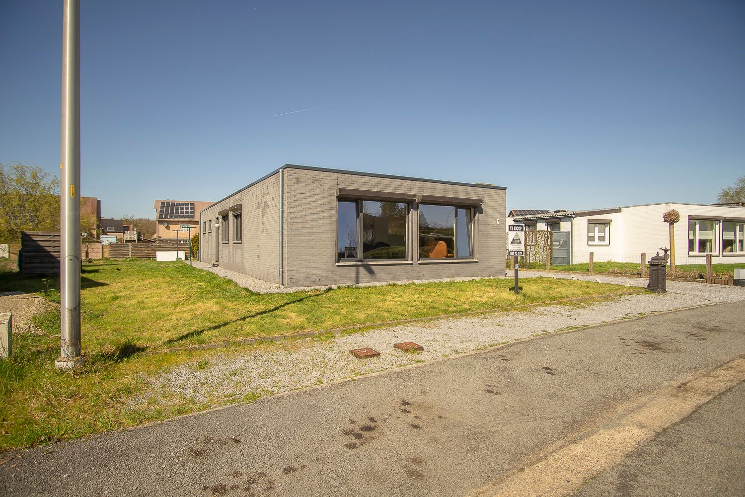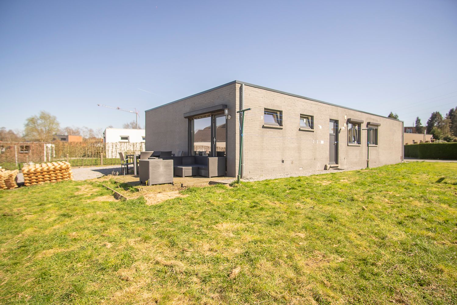 - Voortuin: aangelegd in gazon – strook aarde voorzien voor beplanting.