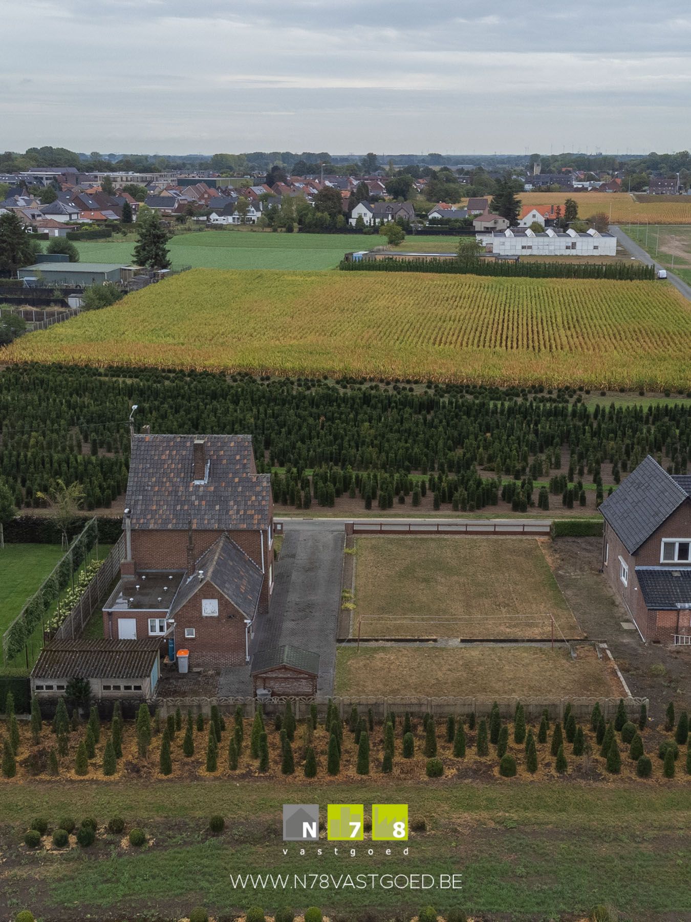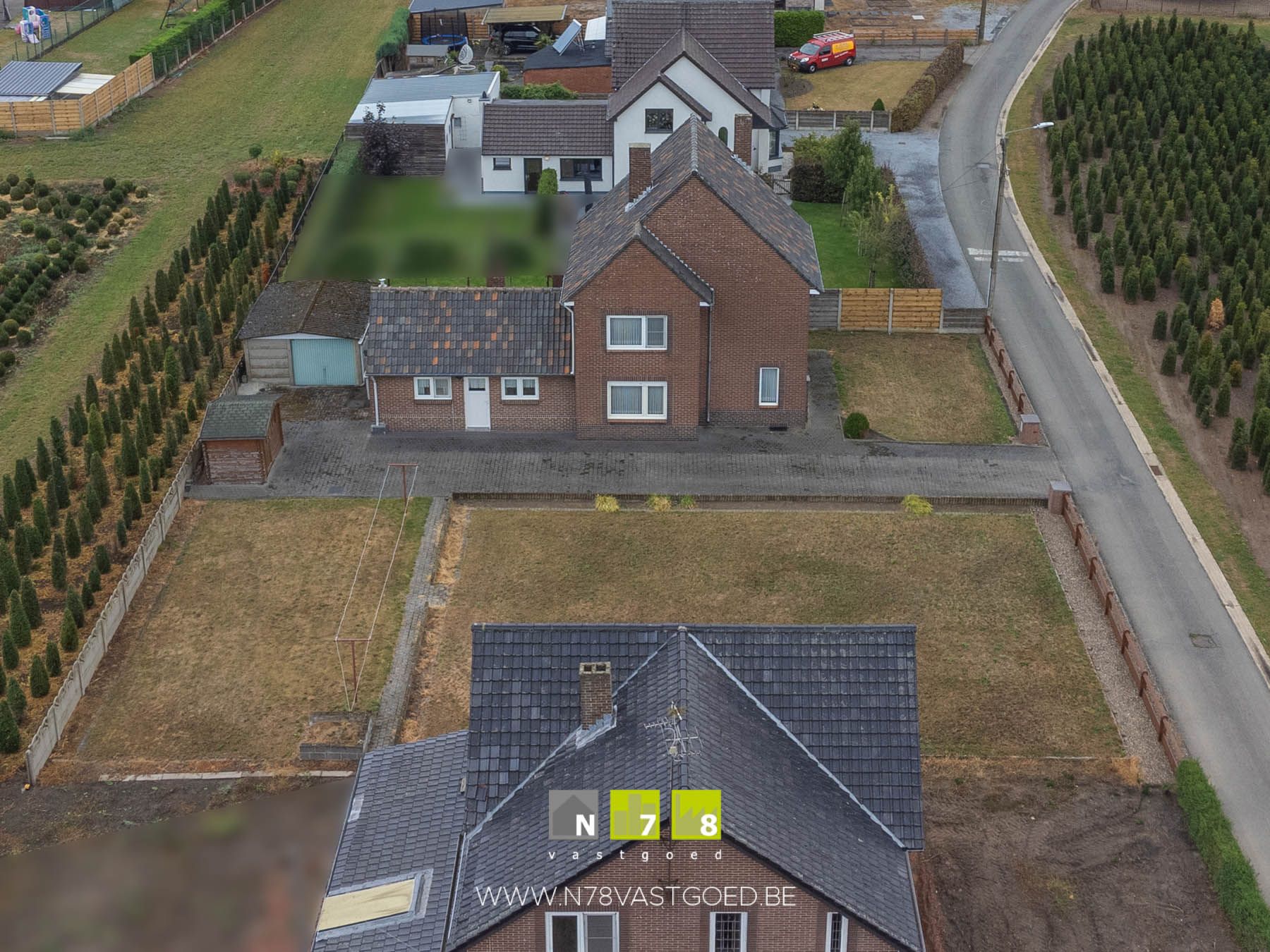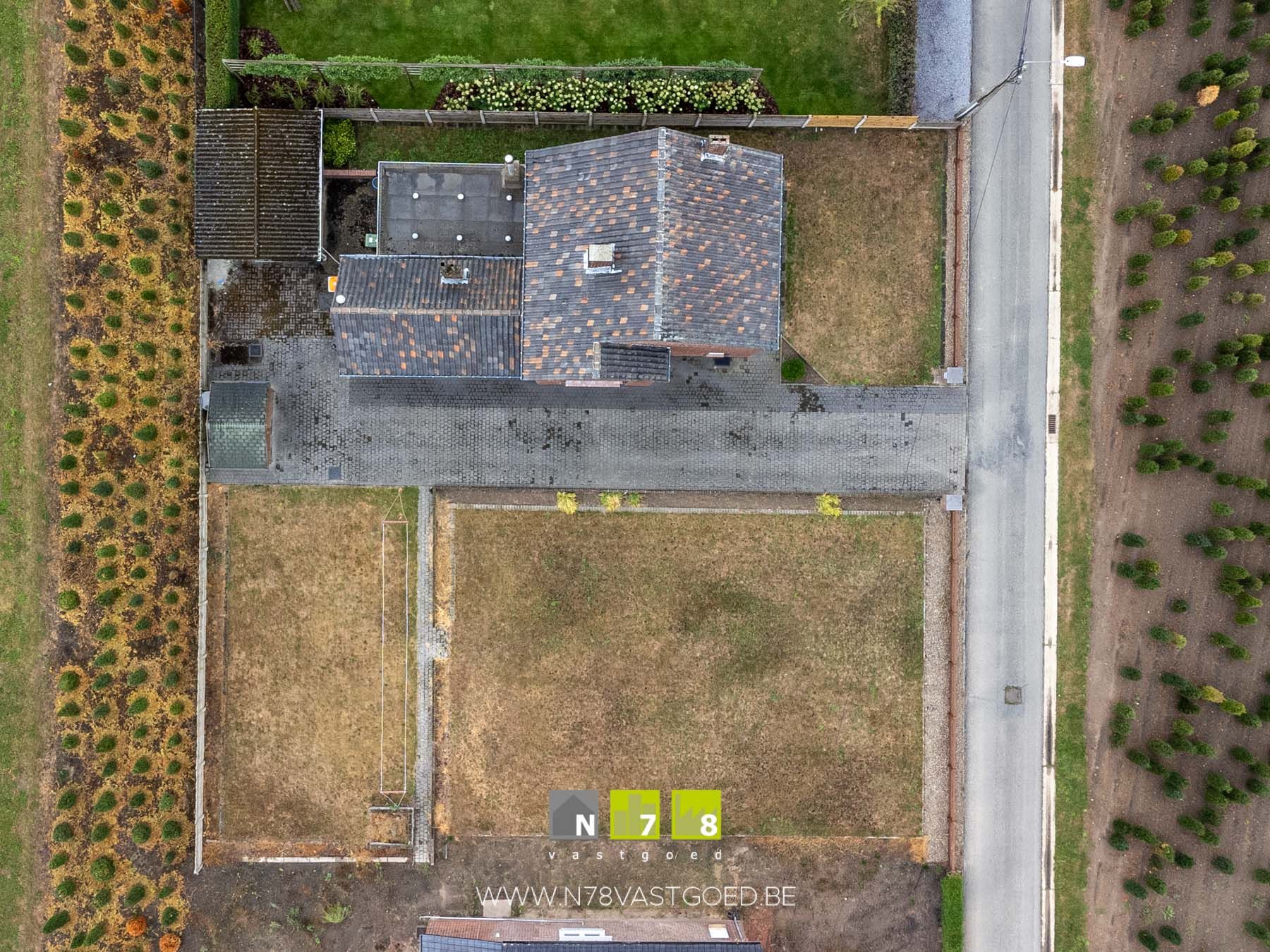 - De grond links van de woning komt in aanmerking als bouwgrond (mits bekomen verkavelingsvergunning)