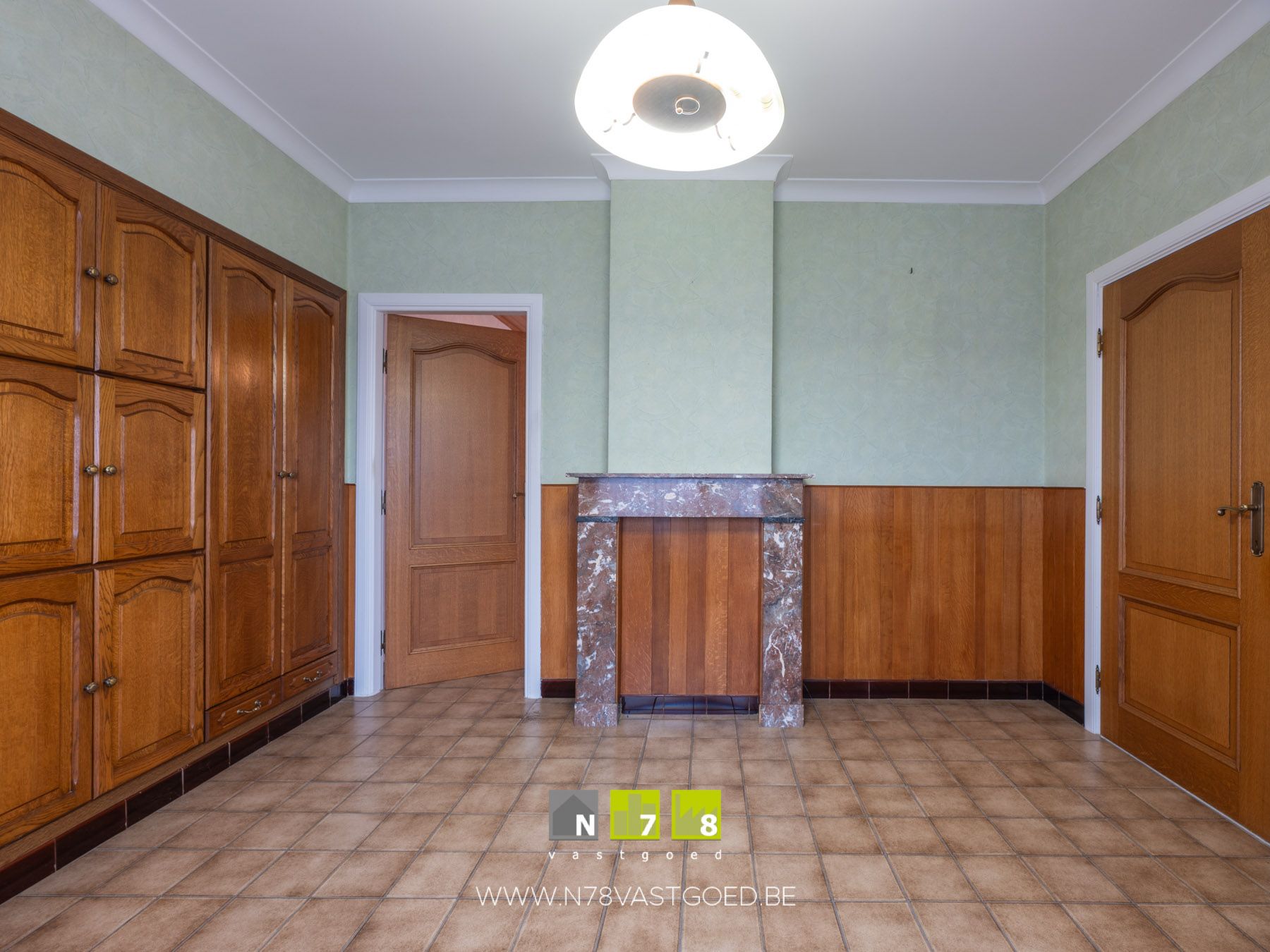 - Eetplaats (3,70m x 3,70m = 13,69m²): eventueel in te richten als extra slaapkamer/bureel, inbouwkasten, tegelvloer.