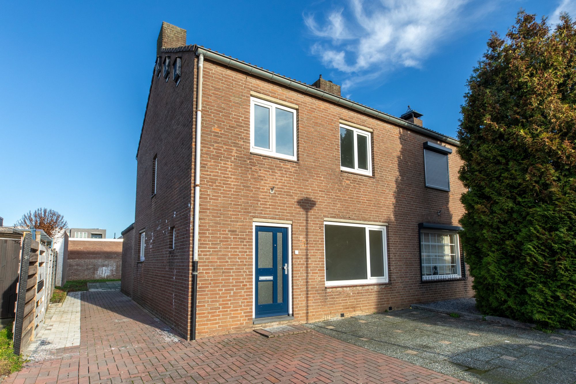 - Voortuin met voetpad naar de entree en naastgelegen oprit.
