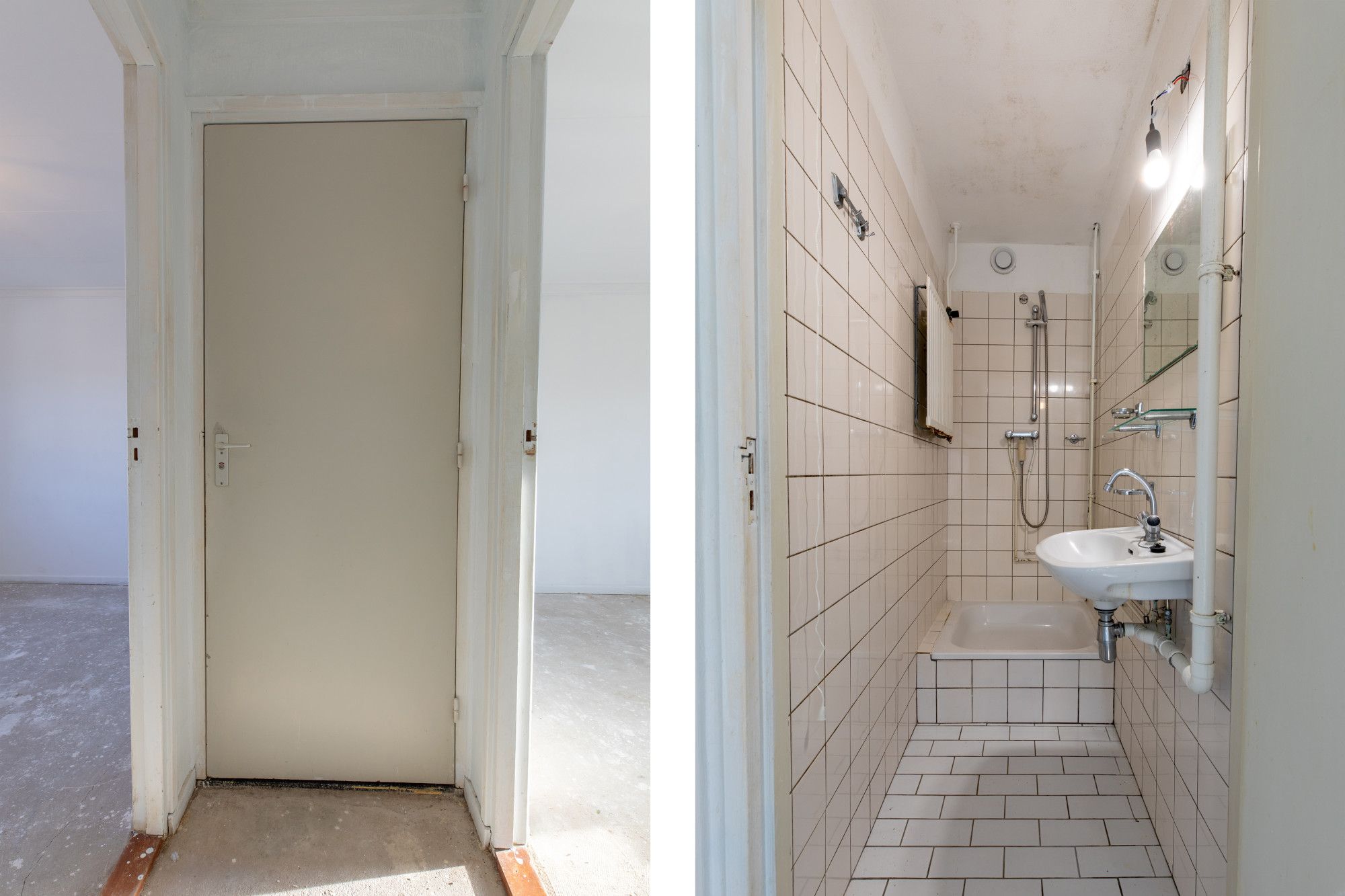 - Badkamer van ca. 2 m² met douche en wastafel.