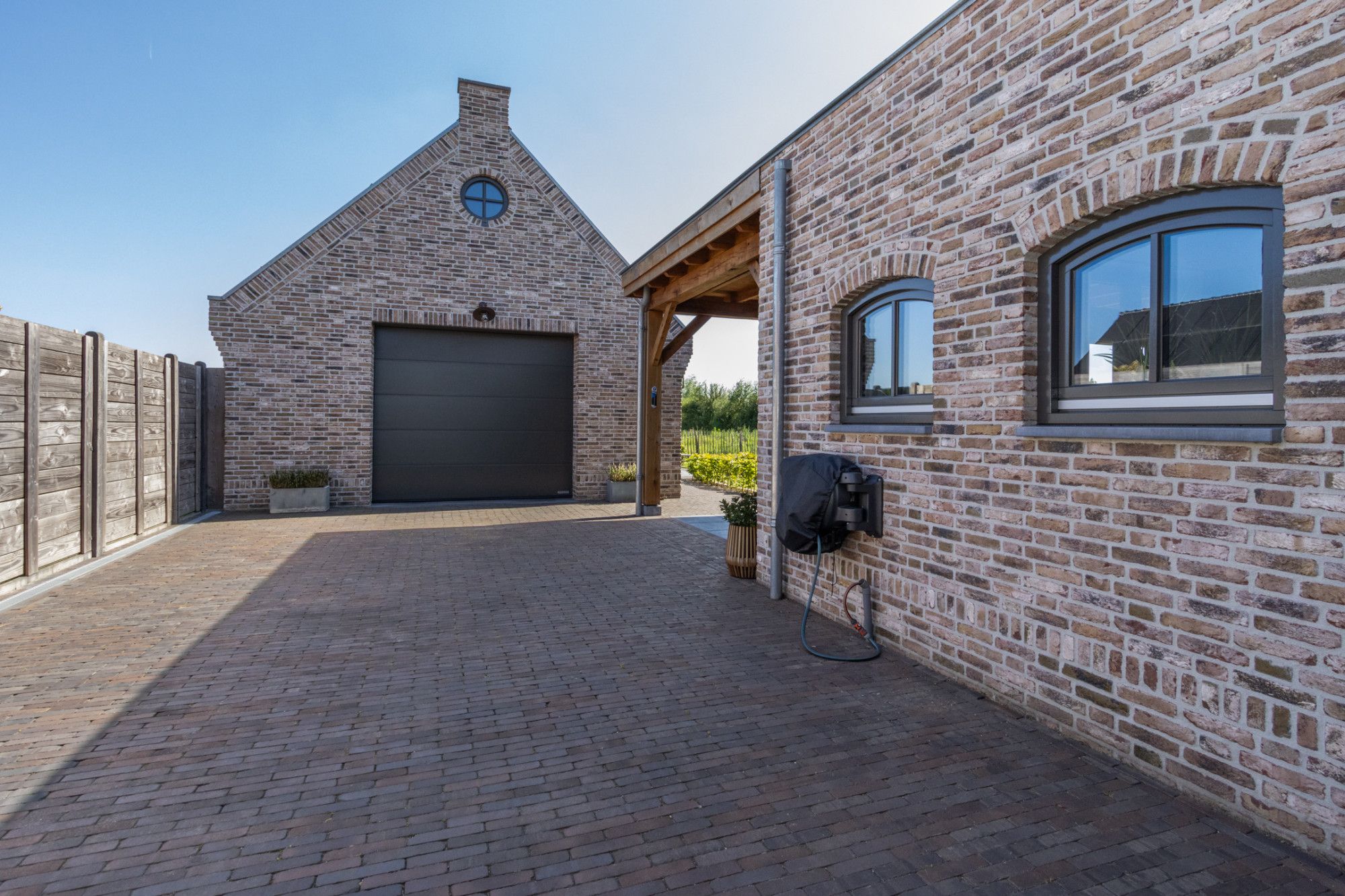 - Vrijstaande garage met vliering (incl. vaste stalen trap), douche, toilet, elektrische poort en vloerverwarming