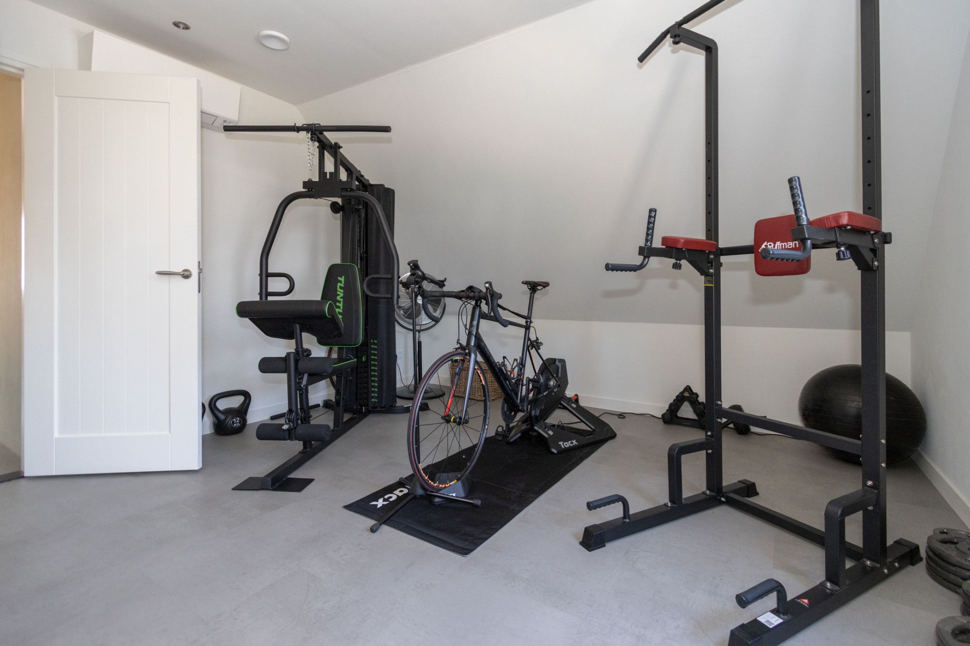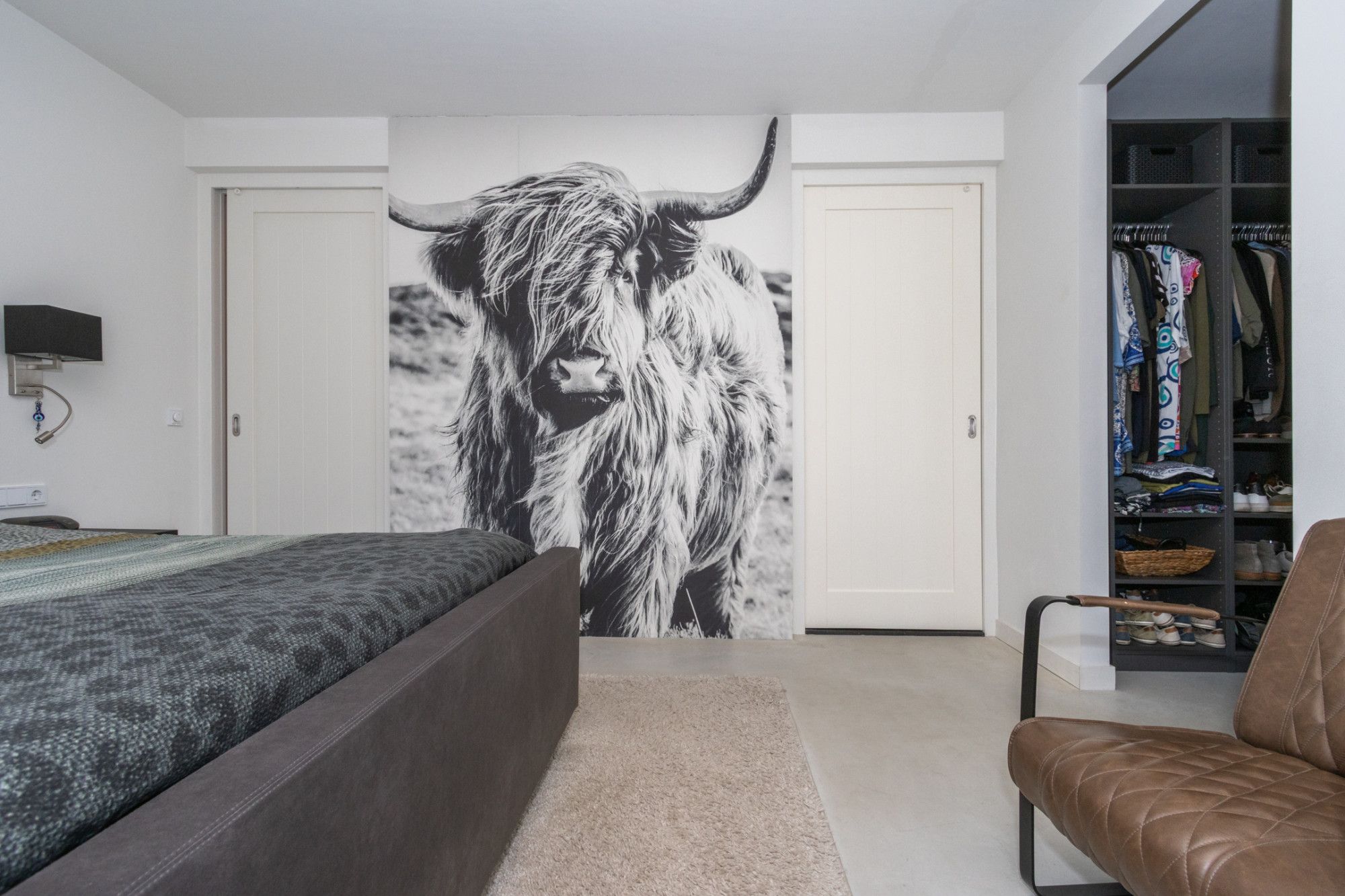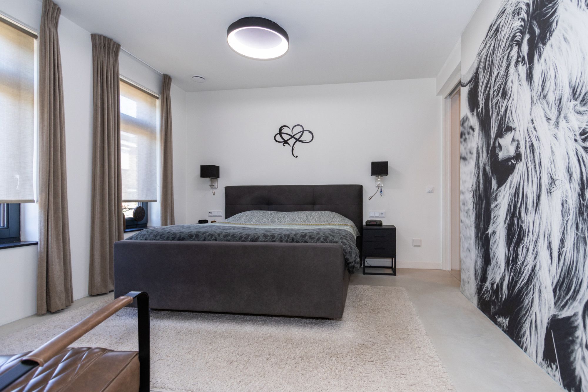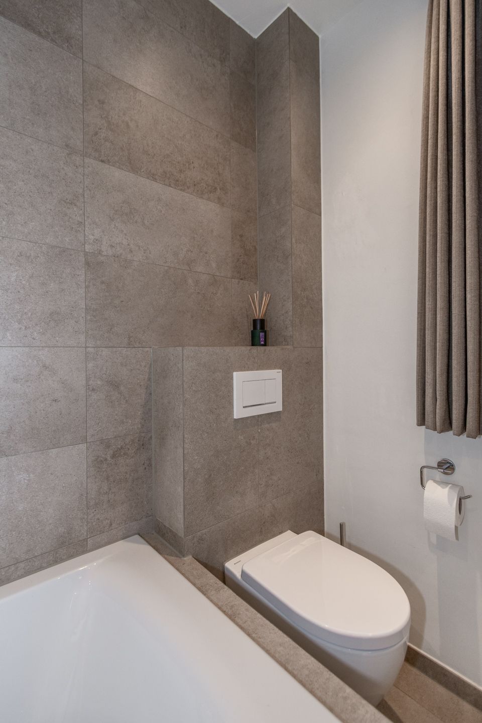 Via een stijlvolle open trap van staal met eikenhouten treden bereik je de eerste verdieping met een mooie vide. Hier bevinden zich drie ruime slaapkamers en een tweede badkamer. De slaapkamers zijn afgewerkt met een houtlook pvc-vloer en voorzien van screens voor extra comfort. De tweede badkamer is uitgevoerd in dezelfde luxe stijl als op de begane grond, en beschikt over een inloopdouche, een wastafelmeubel en een condensvrije spiegel. Via een degelijke vlizotrap in de grootste slaapkamer, momenteel in gebruik als gym, is de ruime bergzolder te bereiken. Een ideale plek voor extra opbergruimte.