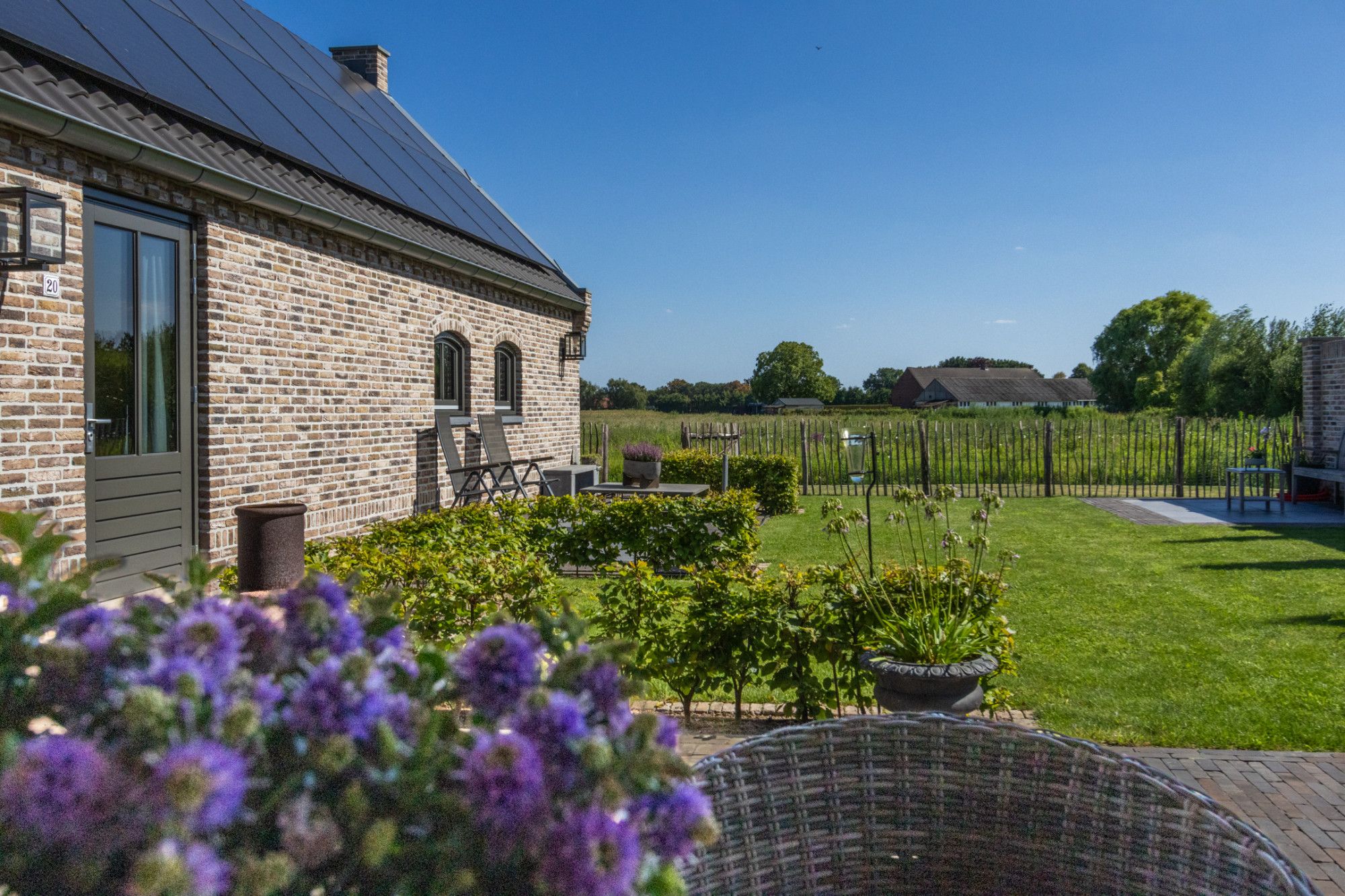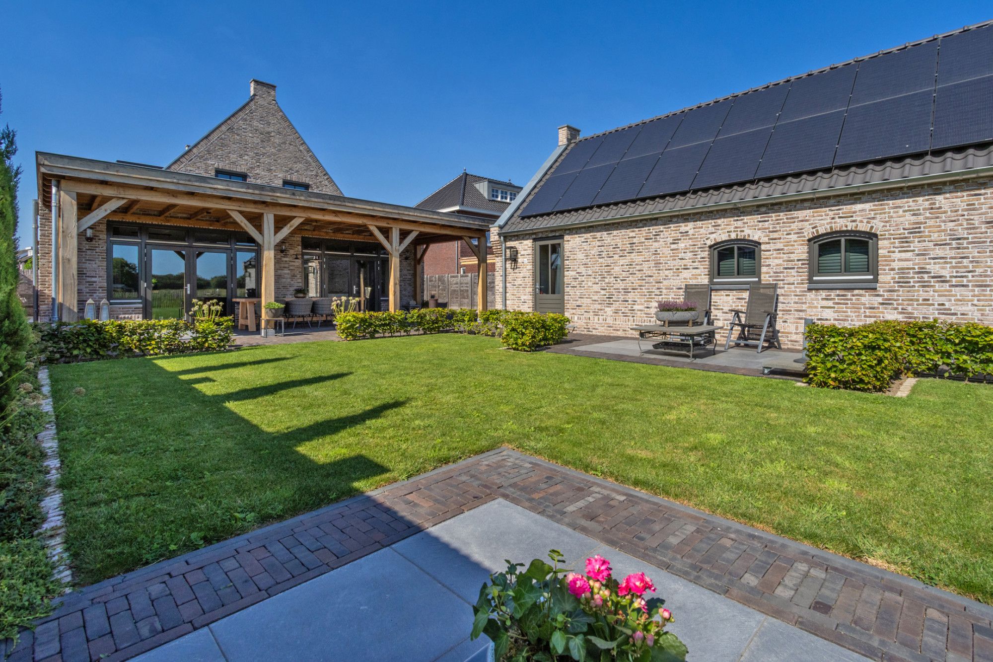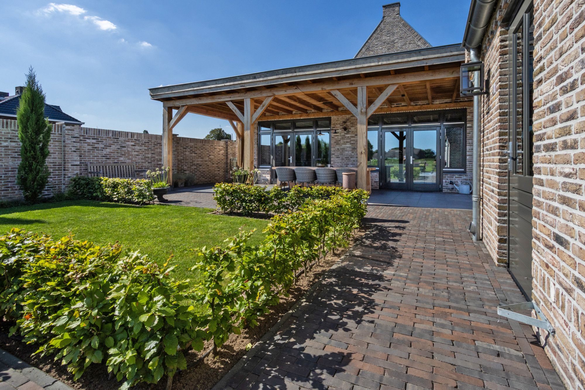 De fraai aangelegde tuin rondom de woning biedt volop privacy. Of je nu ontspant op het gazon, bij de borders, onder de rustieke houten overkapping of op een van de terrassen, overal is het prettig verblijven. Aan de achterzijde geniet je van een uniek uitzicht over uitgestrekte landerijen. Voor extra gemak in de zomermaanden is er een automatisch bewateringssysteem aangelegd aan zowel de voor- als achterzijde. Bij hevige regenval zorgt een drain voor een efficiënte afvoer van het water op de oprit. Tevens is deze oprit voorzien van een elektrisch bedienbare poort.