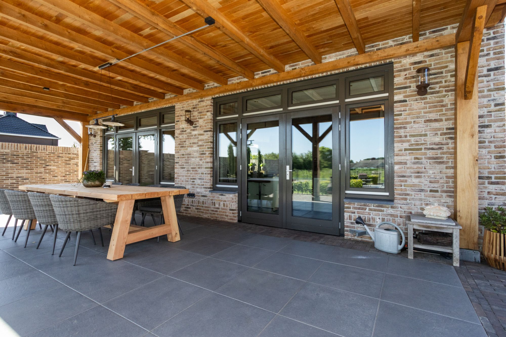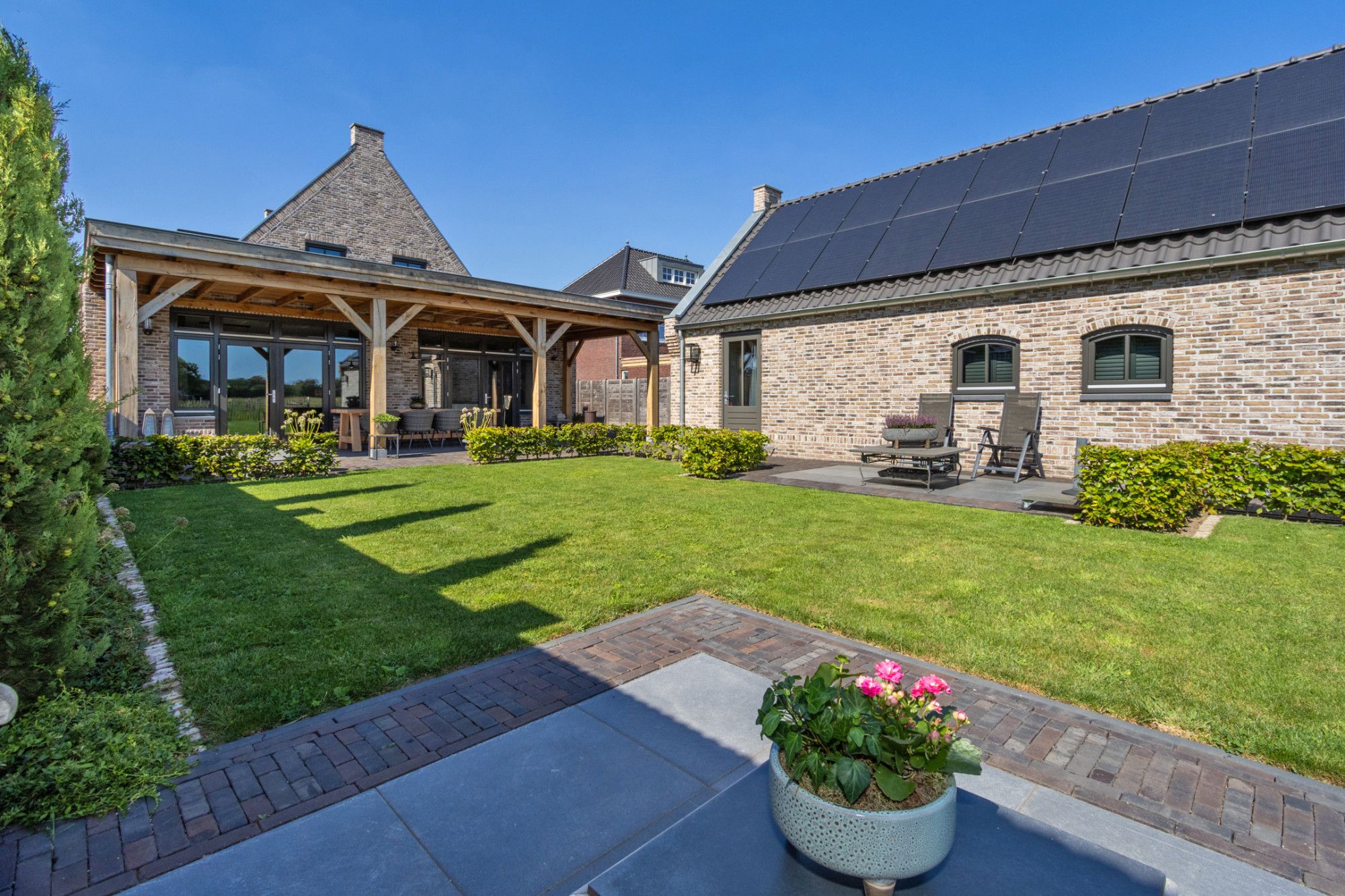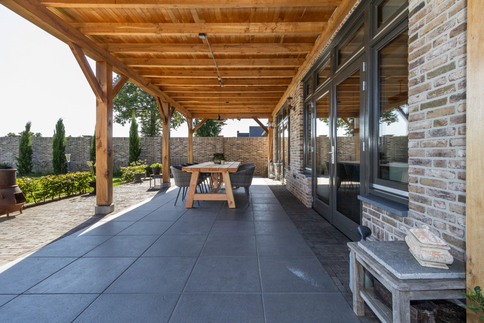 De fraai aangelegde tuin rondom de woning biedt volop privacy. Of je nu ontspant op het gazon, bij de borders, onder de rustieke houten overkapping of op een van de terrassen, overal is het prettig verblijven. Aan de achterzijde geniet je van een uniek uitzicht over uitgestrekte landerijen. Voor extra gemak in de zomermaanden is er een automatisch bewateringssysteem aangelegd aan zowel de voor- als achterzijde. Bij hevige regenval zorgt een drain voor een efficiënte afvoer van het water op de oprit. Tevens is deze oprit voorzien van een elektrisch bedienbare poort.