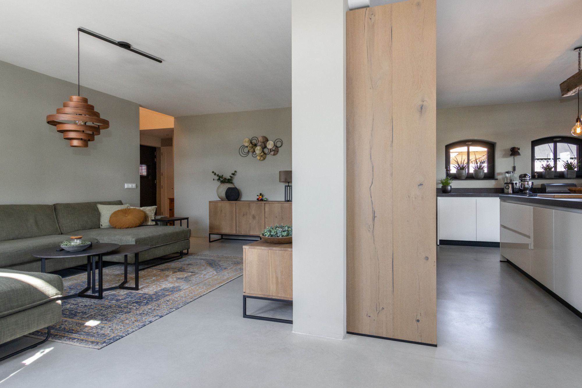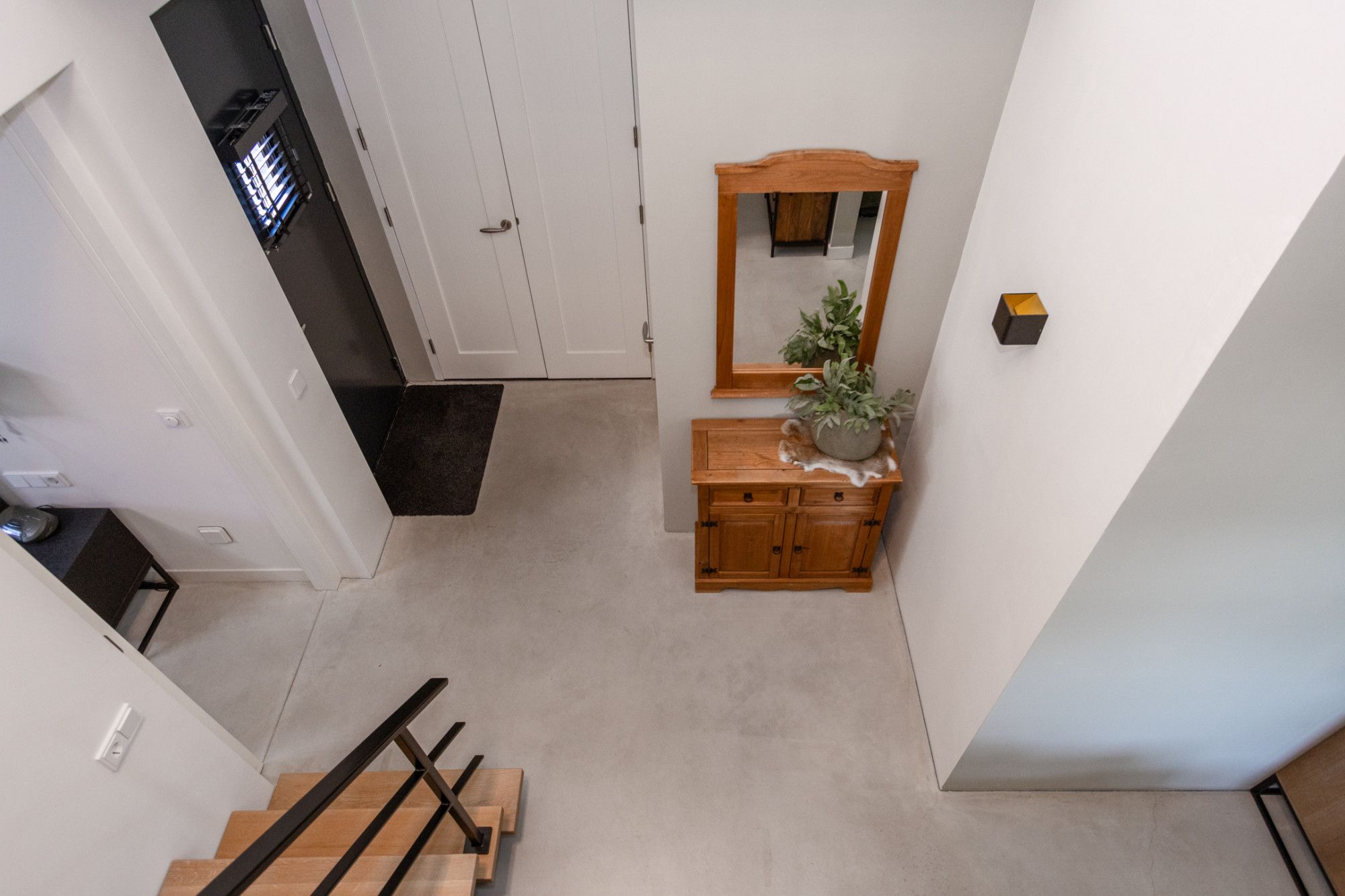 Bij binnenkomst valt direct de strakke, gevlinderde betonvloer op die naadloos doorloopt over de gehele begane grond. Deze vloer is voorzien van comfortabele vloerverwarming. In de hal bevinden zich het toilet en de uitgebreide meterkast.