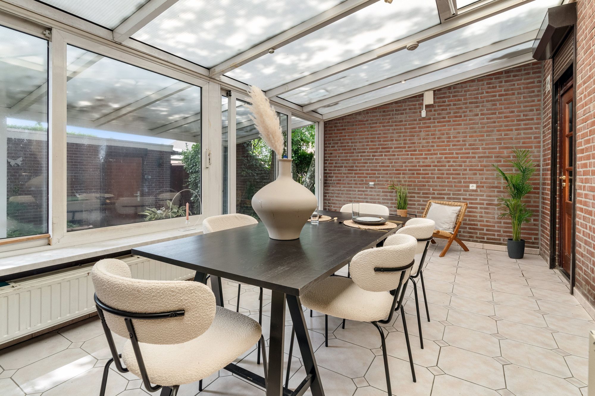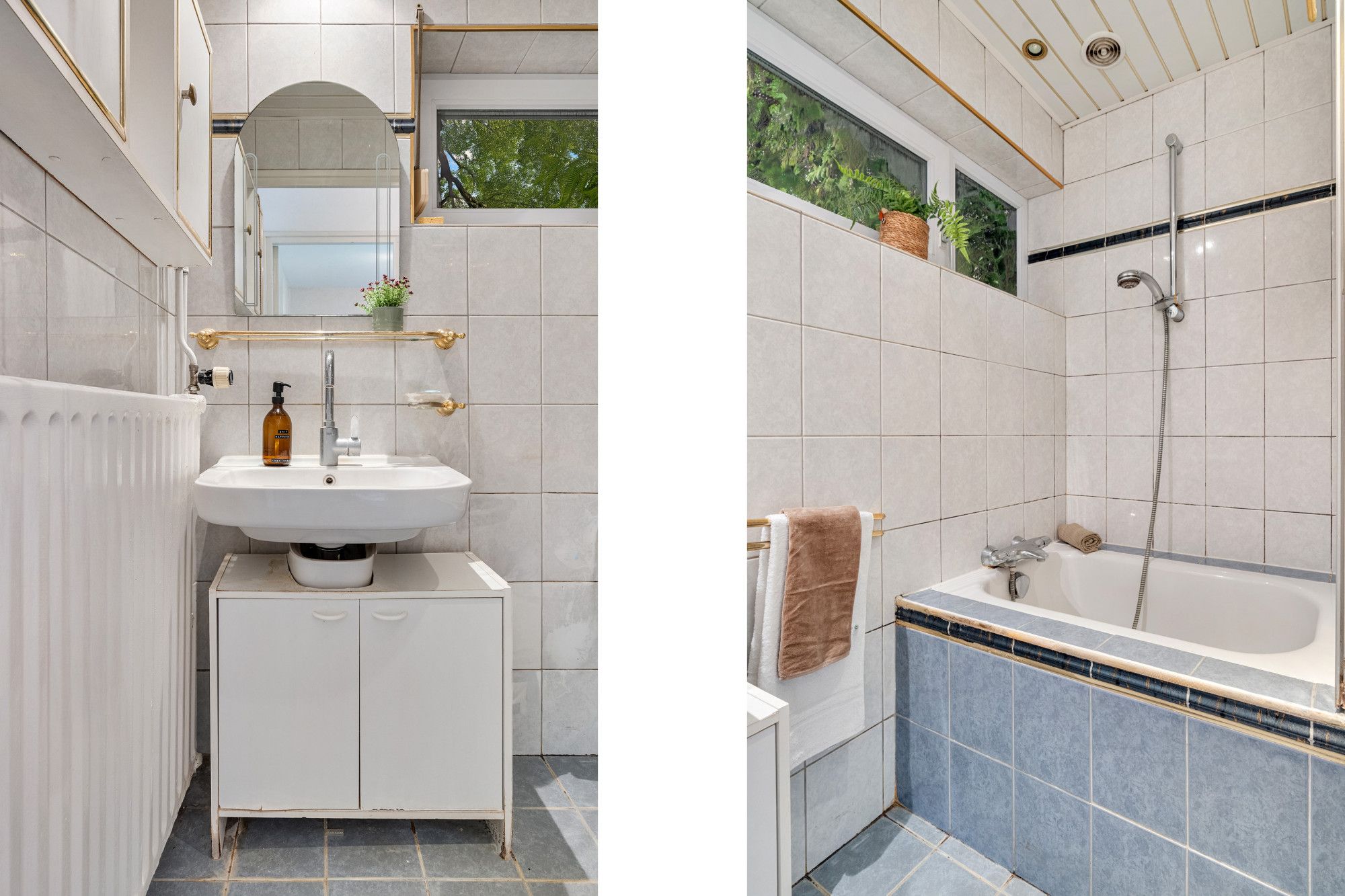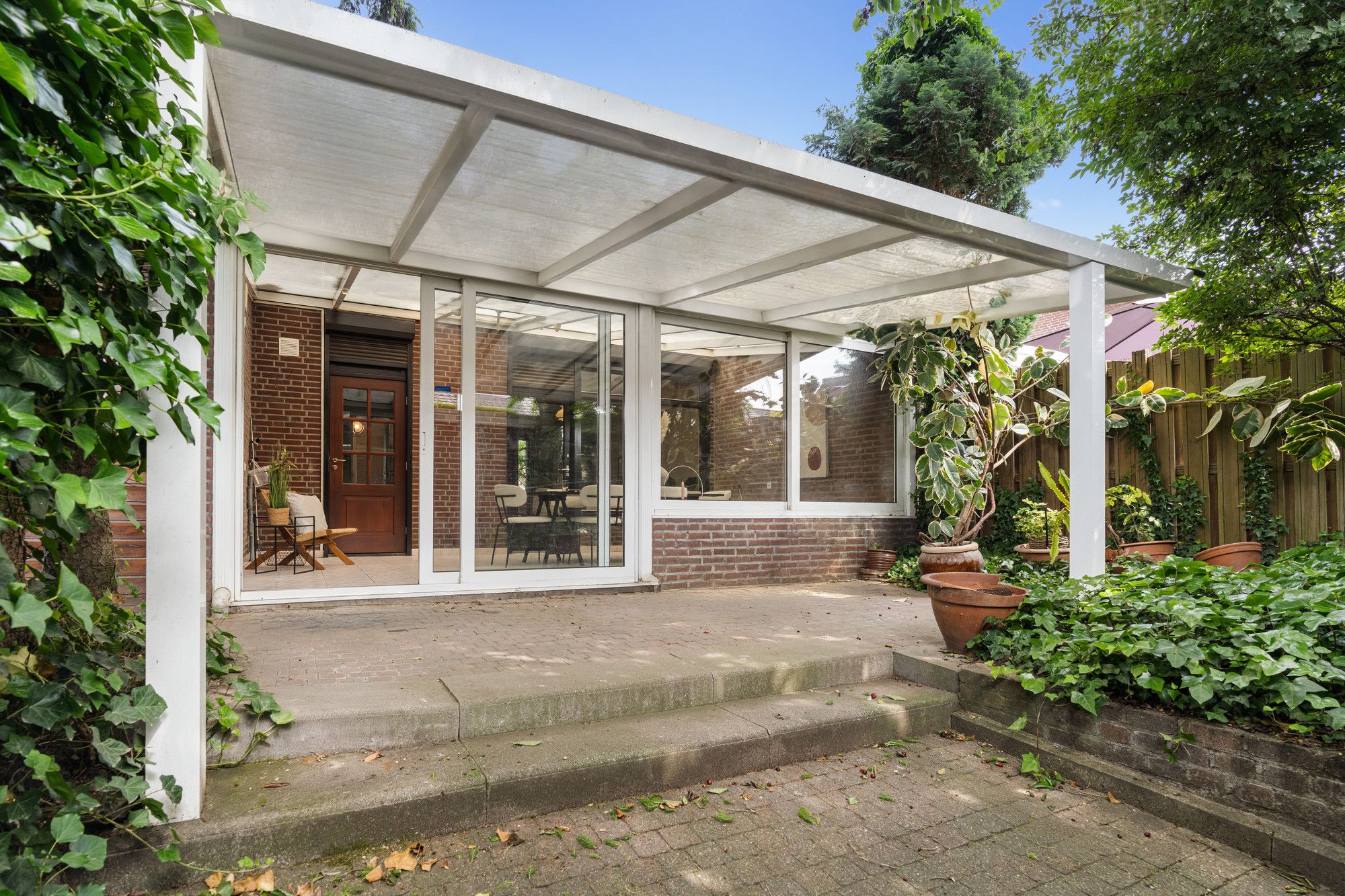 De grotendeels betegelde achtertuin is voorzien van een fijne overkapping waar je beschut kunt zitten. De tuin is bereikbaar via de serre én via een handige achterom. Achterin de tuin bevindt zich een vrijstaande garage met ruimte voor één auto, en een aparte berging voor fietsen of tuingereedschap. Dankzij de eigen oprit aan de voorzijde rijd je zo de garage binnen.