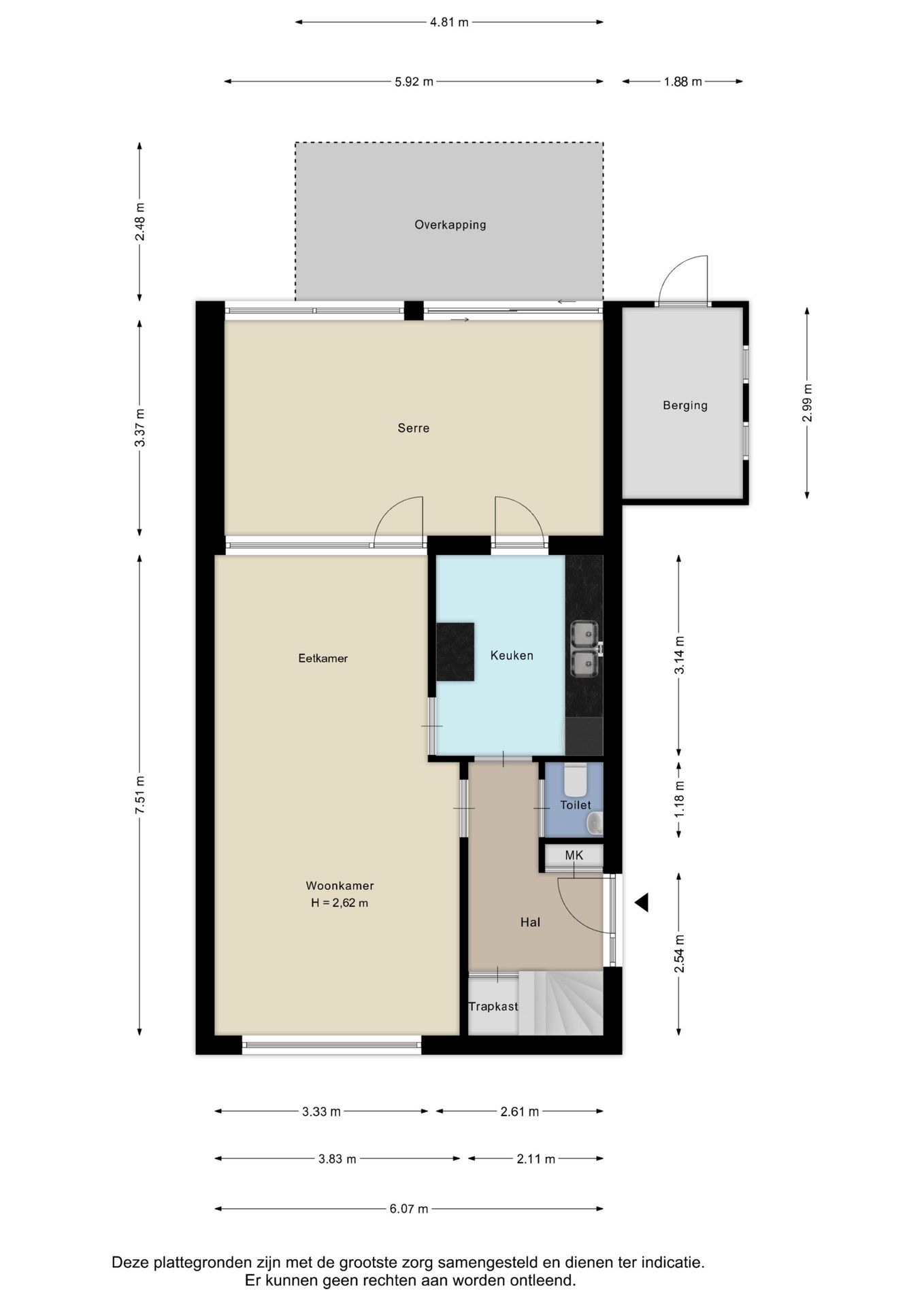 Alle door ons kantoor verstrekte informatie omtrent onroerende zaken, moet beschouwd worden als een uitnodiging om in onderhandeling te treden, en is geheel vrijblijvend! Alle vermelde maten en afmetingen zijn slechts bij benadering. Aan deze beperkte info kunnen geen rechten worden ontleend. Indien in enige documentatie of op enige website informatie staat die niet overeen komt met de werkelijkheid, dan geldt de feitelijke situatie waarin de woning zich bevindt, zoals koper deze tijdens de bezichtiging heeft kunnen waarnemen, en wordt de woning in deze feitelijke situatie/staat verkocht. Een (eventueel) bijgevoegde plattegrond dient uitsluitend als globale indicatie/visualisatie. Hieraan kunnen uitdrukkelijk geen rechten worden ontleend.