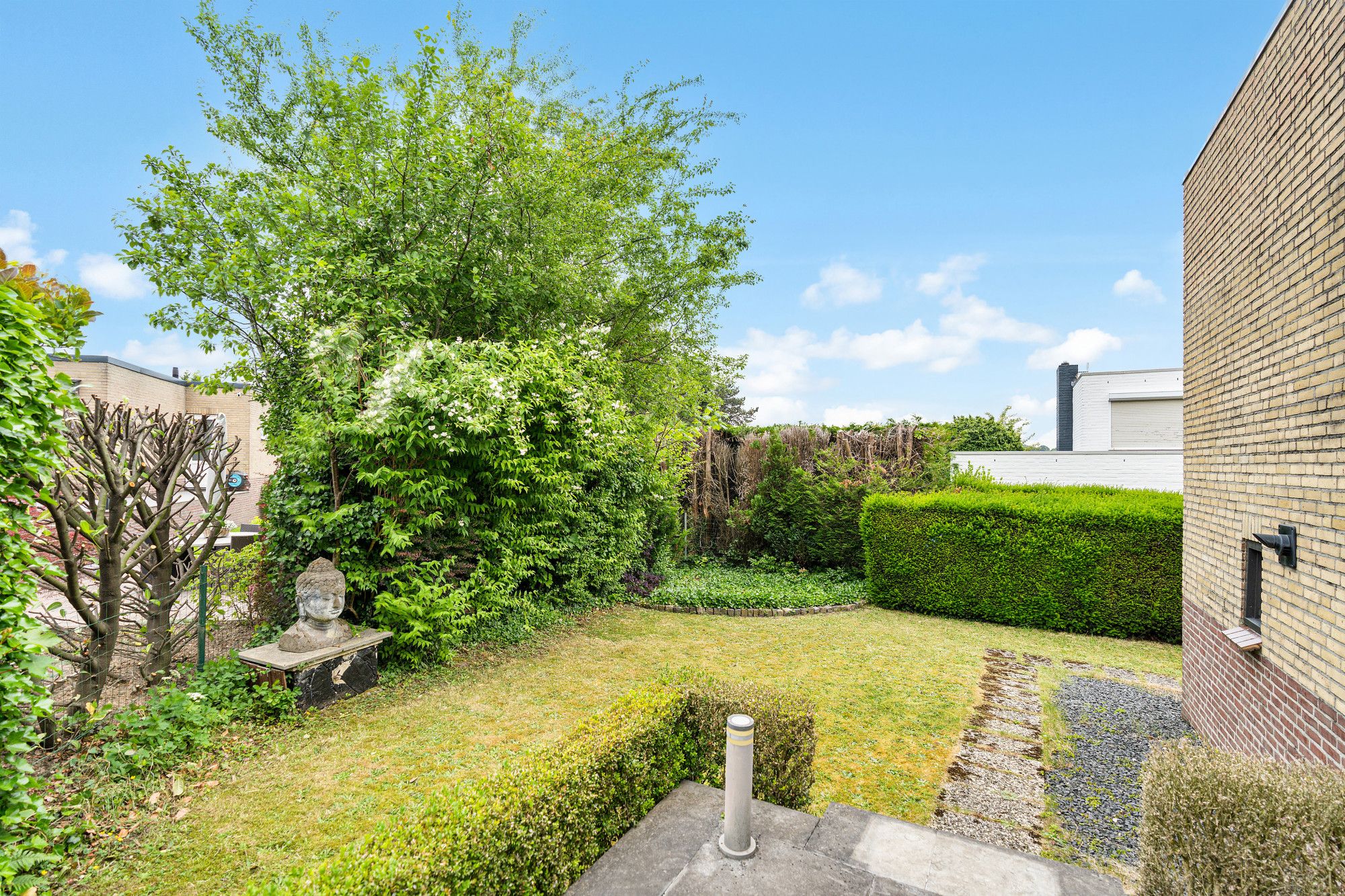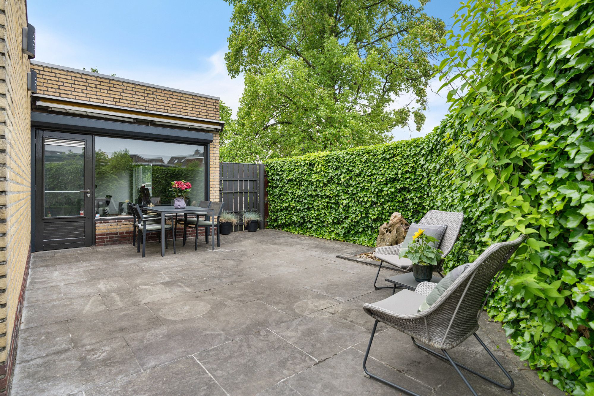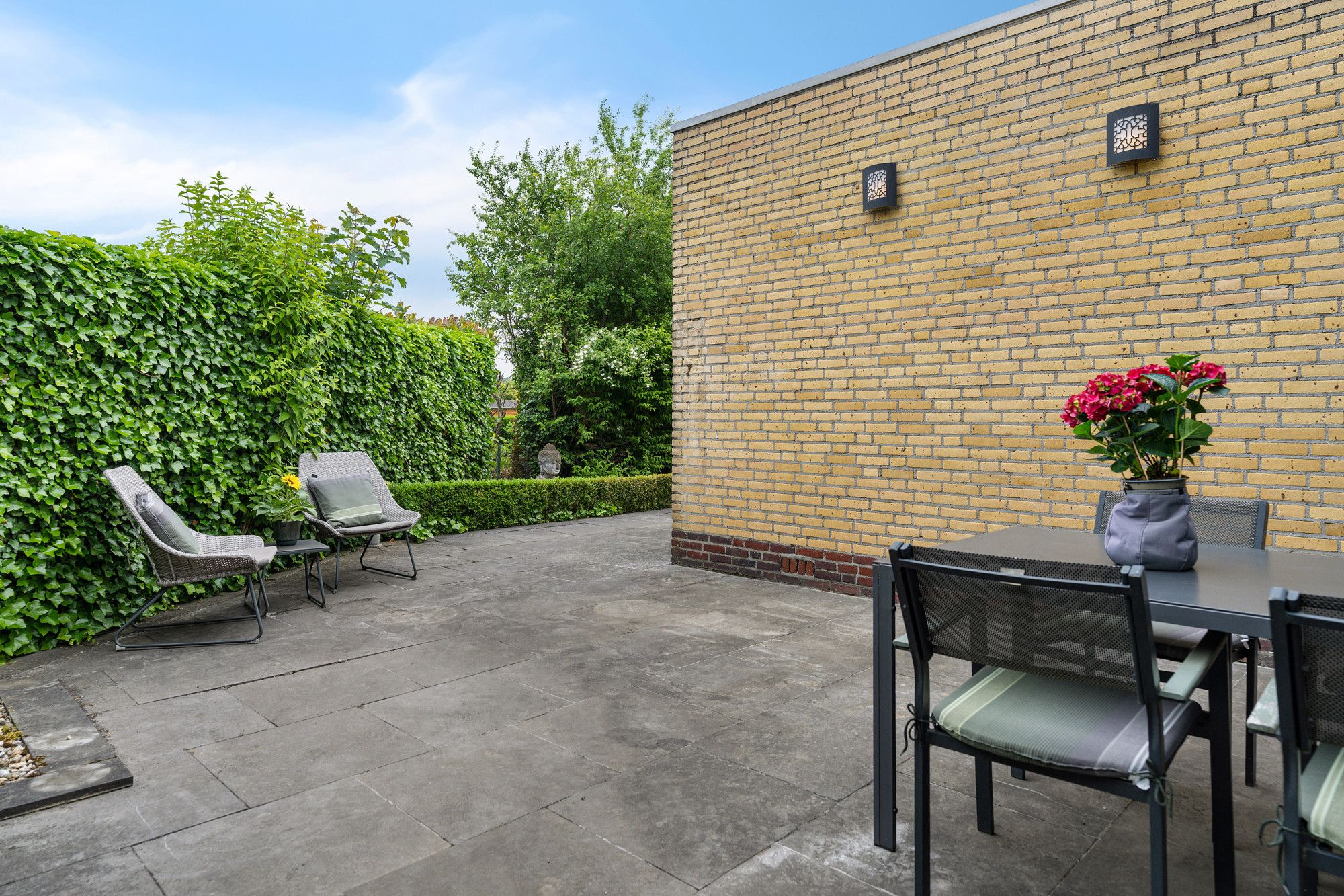 De fraai aangelegde tuin is bereikbaar vanuit zowel de woonkamer, de keuken als via beide kanten van de woning met een poort. De tuin bestaat uit een betegeld terras, een gazon en groenborders – een ideale plek voor buitenleven, zonnen of tuinieren. De ligging biedt volop privacy, terwijl je toch verbonden bent met de buurt.